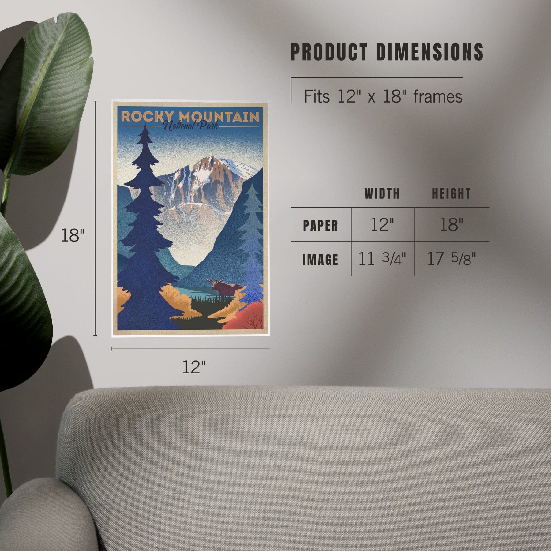 Rocky Mountain National Park, Colorado, Moose and Lake, Lithograph, Art & Giclee Prints Art Lantern Press