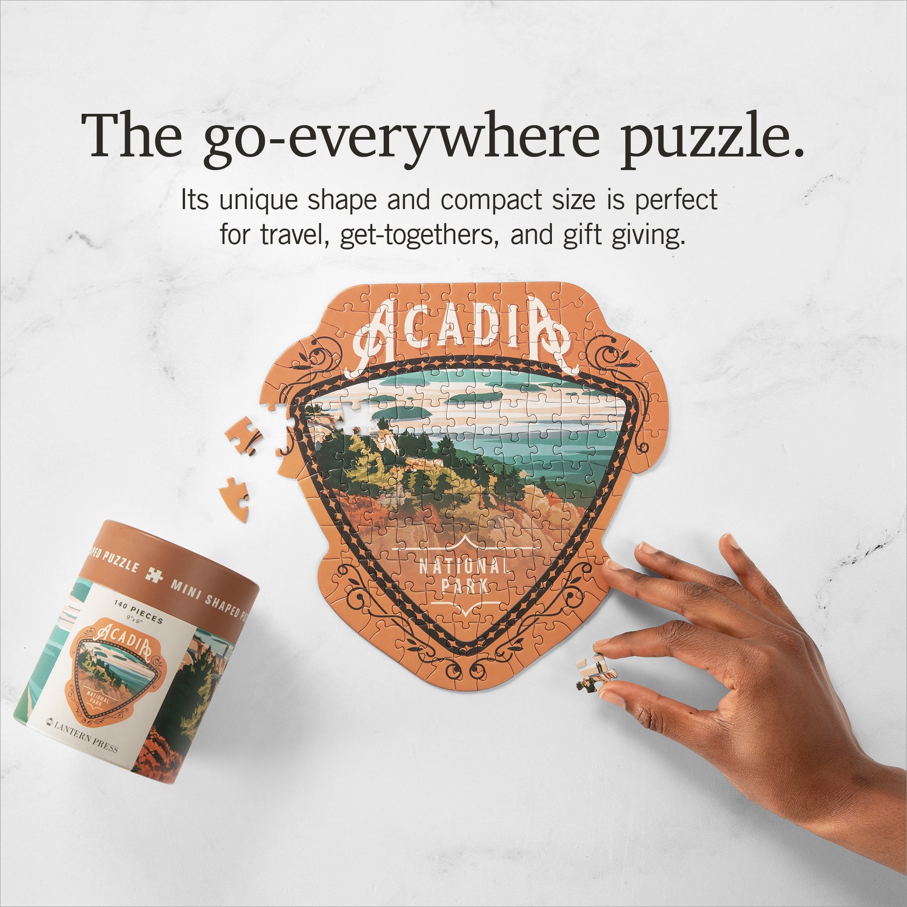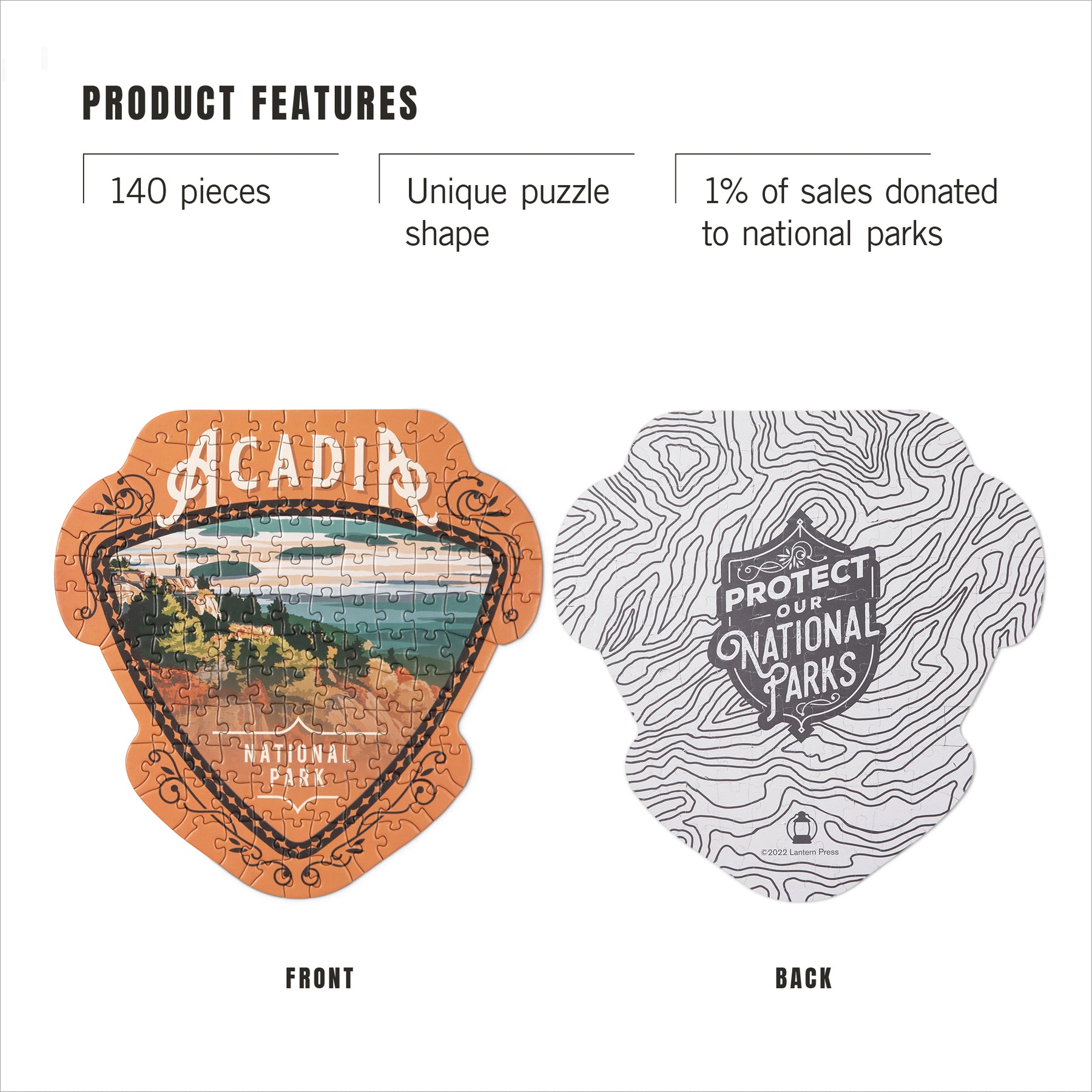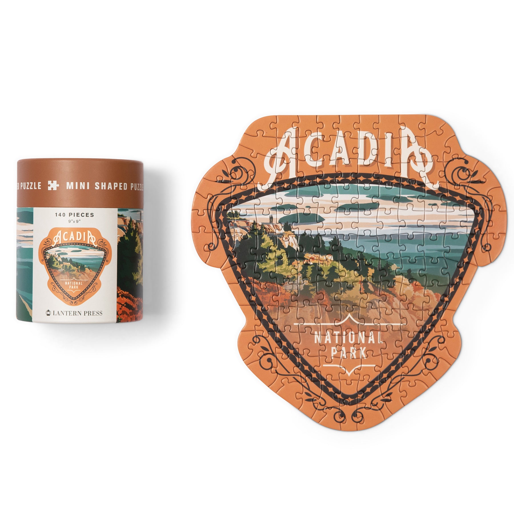 Enjoy Acadia National Park wherever you are! This Protect Our National Parks Mini Shaped Puzzle is the perfect size for gifts, road trips, and fun with friends. Plus, your purchase generates a donation to national parks, certified through 1% for the Planet! The illustration is created by our artists and the puzzle is die cut to form an interesting shape (and add just the right amount of challenge). Puzzle measures approximately 9" x 9" and varies by shape. The strong paperboard canister is 4.25" high, 3.4" in diameter, and has a 1.25" high lid.