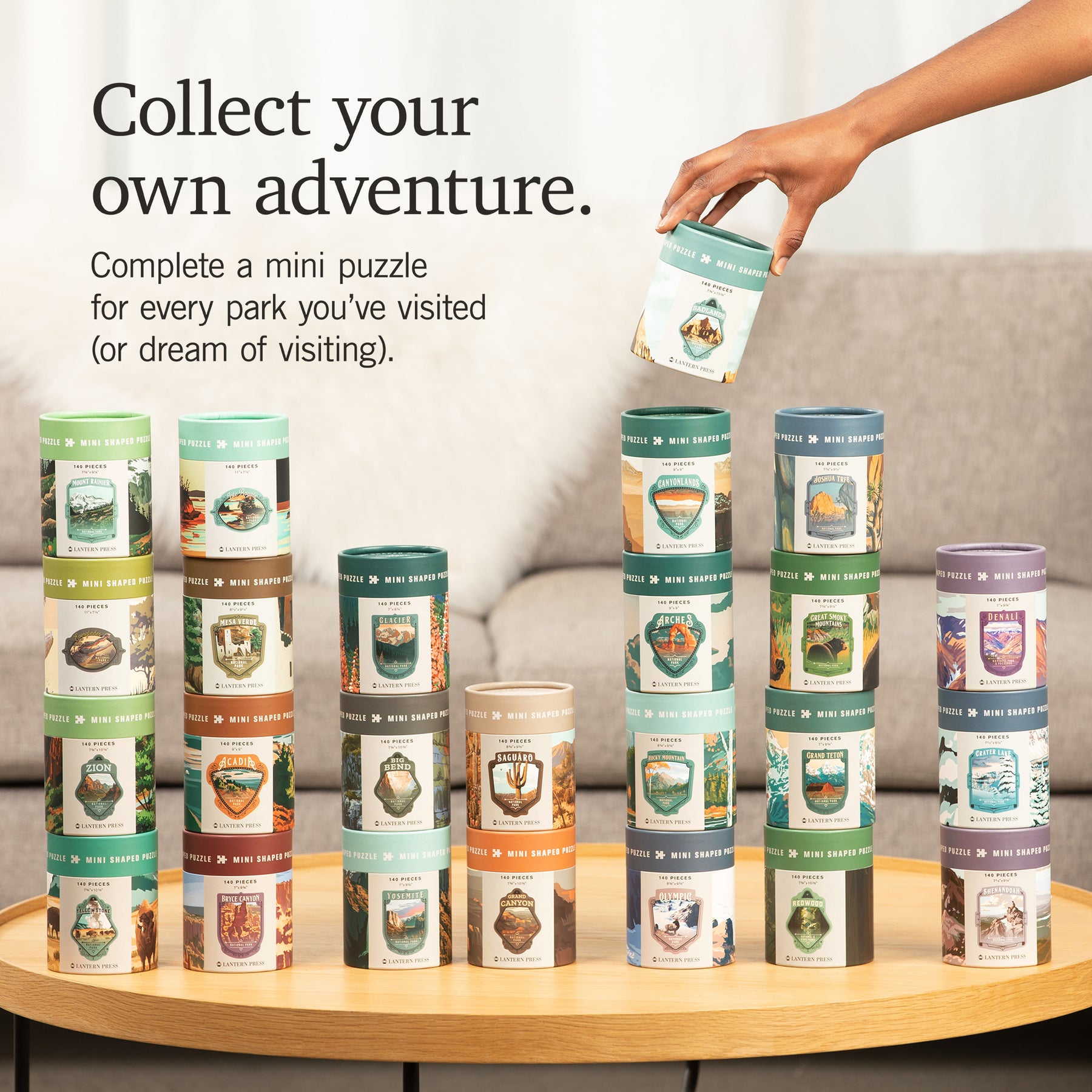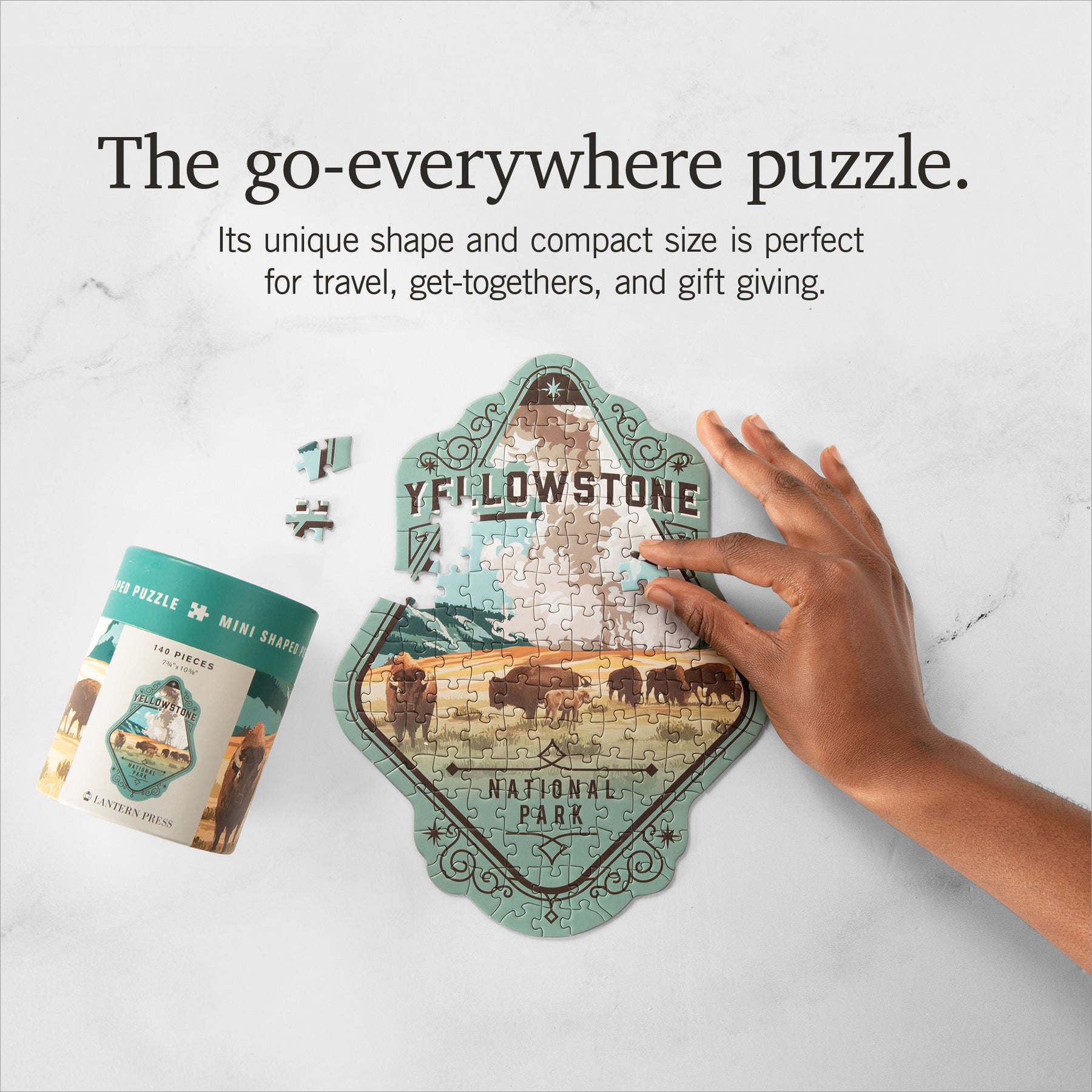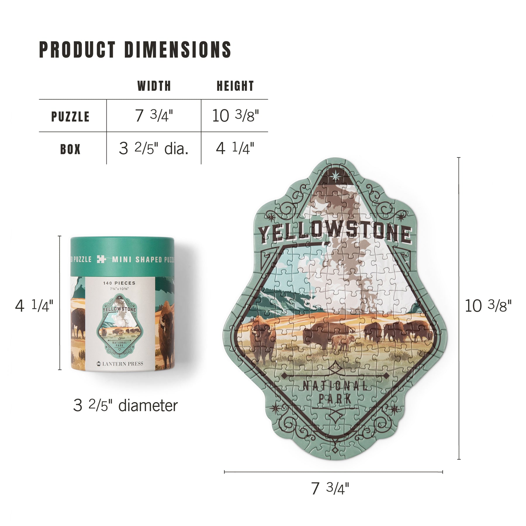 Enjoy Yellowstone National Park wherever you are! This Protect Our National Parks Mini Shaped Puzzle is the perfect size for gifts, road trips, and fun with friends. Plus, your purchase generates a donation to national parks, certified through 1% for the Planet! The illustration is created by our artists and the puzzle is die cut to form an interesting shape (and add just the right amount of challenge). Puzzle measures approximately 9" x 9" and varies by shape. The strong paperboard canister is 4.25" high, 3.4" in diameter, and has a 1.25" high lid.