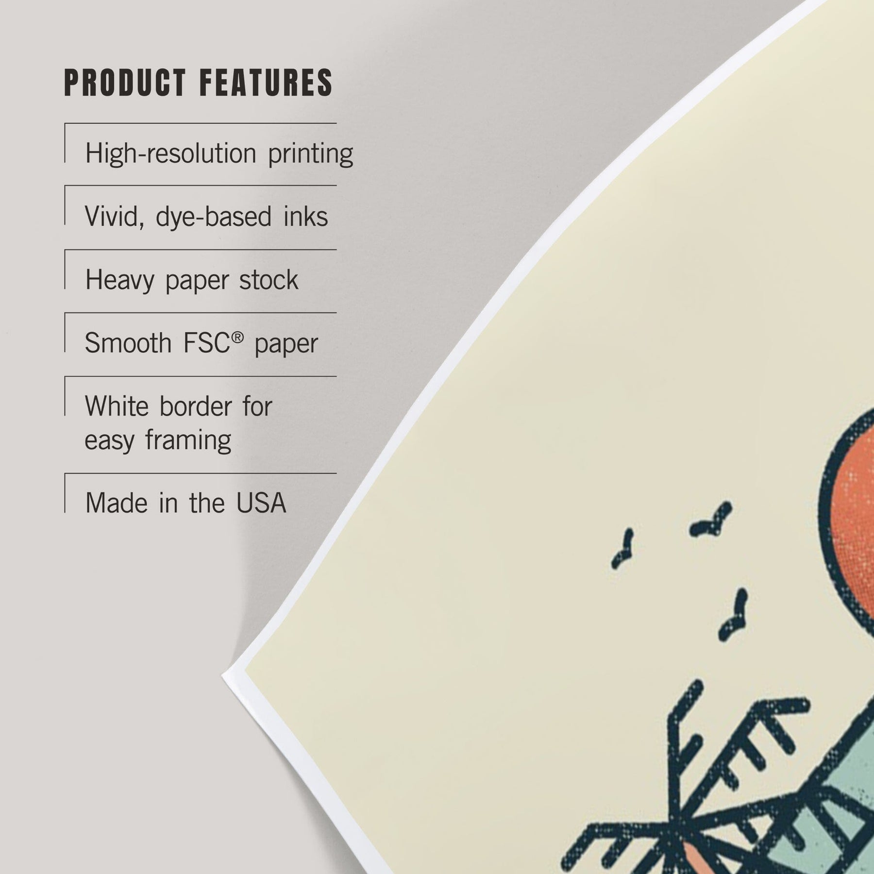 • Art prints include white borders along all edges of at least 1/4 inch