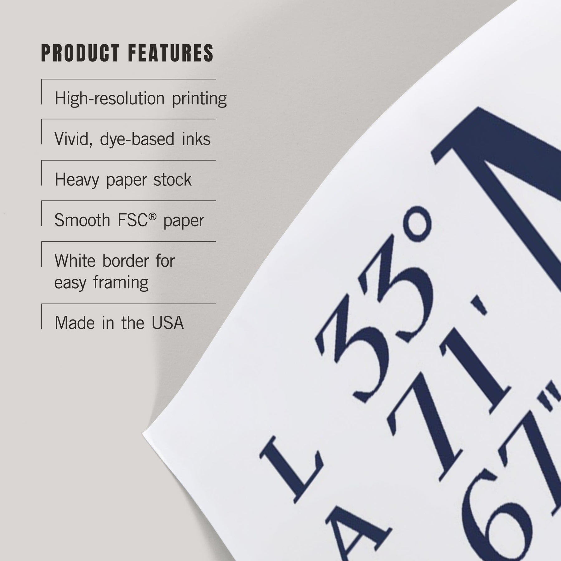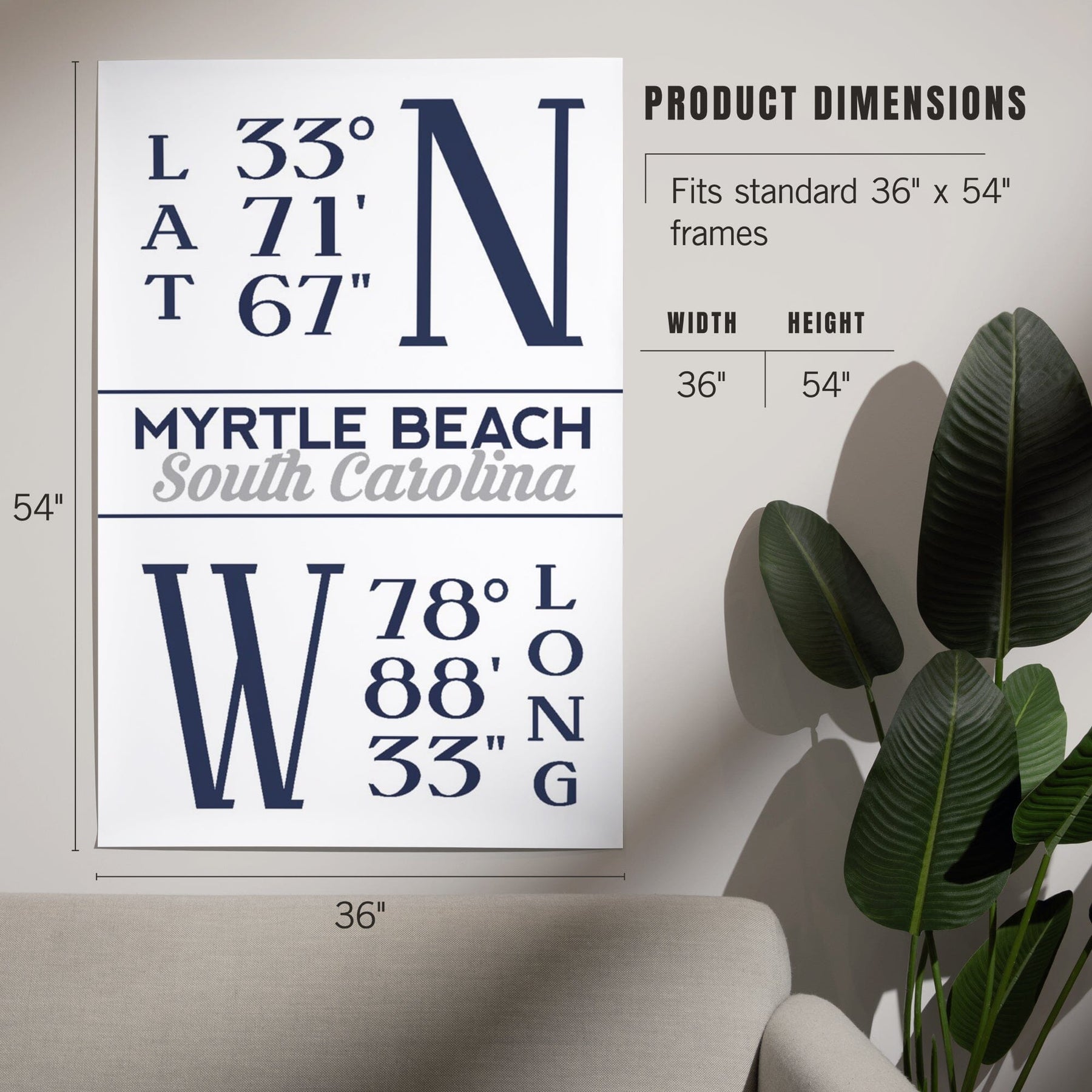 Myrtle Beach, South Carolina, Latitude and Longitude (Blue), Art & Giclee Prints Art Lantern Press