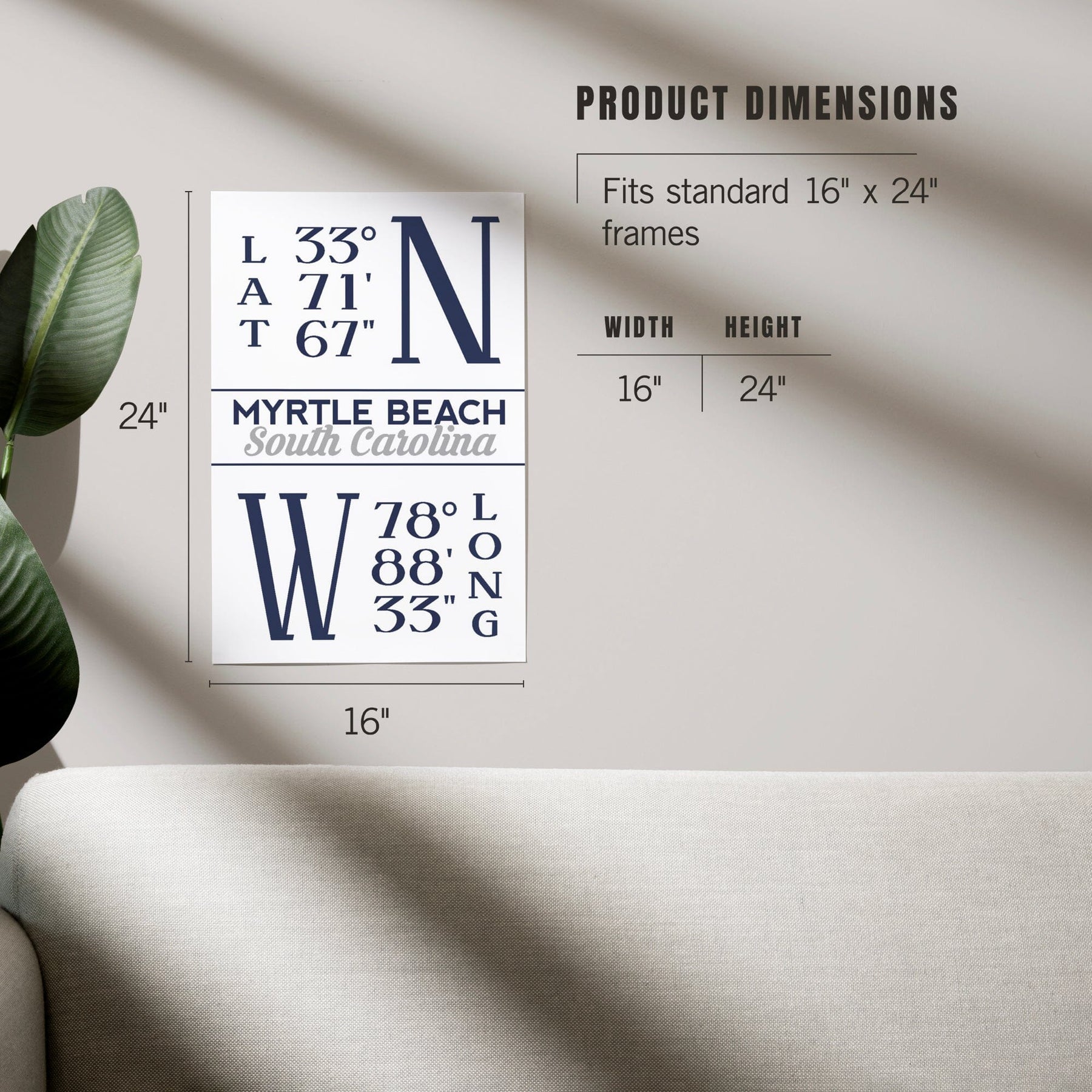 Myrtle Beach, South Carolina, Latitude and Longitude (Blue), Art & Giclee Prints
