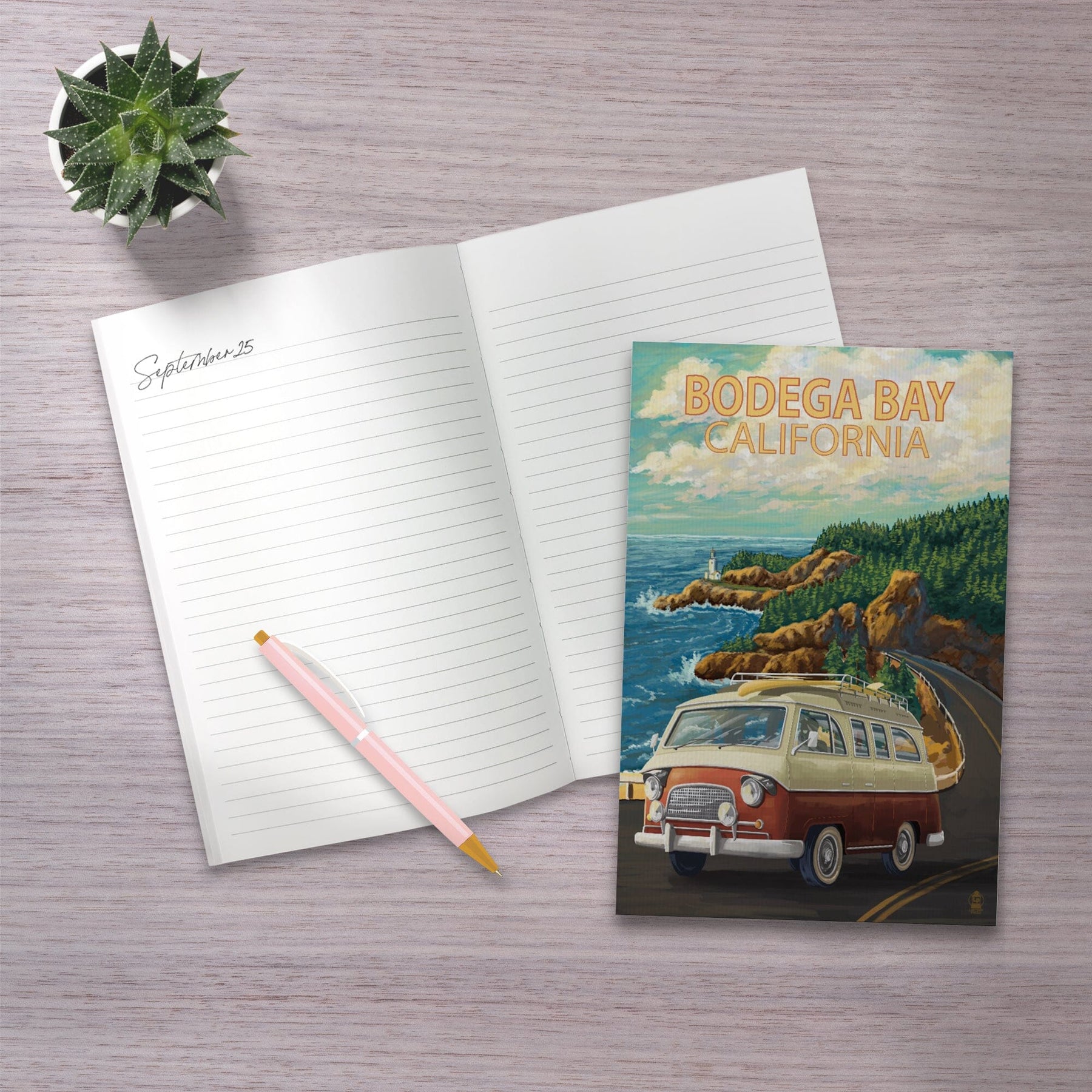 Our Hardcover Journals are printed in the USA, and feature vibrant full color artwork of Bodega Bay, California, Camper Van on quality, planet-friendly materials. We use eco-friendly ink and packaging, FSC-certified paper, and recycled materials sourced responsibly.