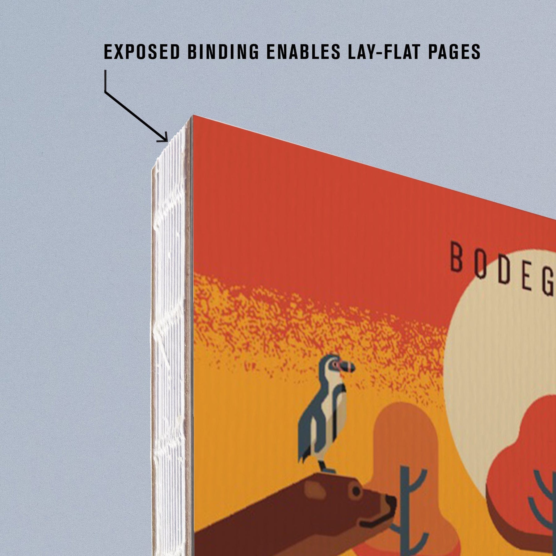 Our Hardcover Journals are printed in the USA, and feature vibrant full color artwork of Bodega Bay, California, Marine Animals with Bear, Geometric on quality, planet-friendly materials. We use eco-friendly ink and packaging, FSC-certified paper, and recycled materials sourced responsibly.