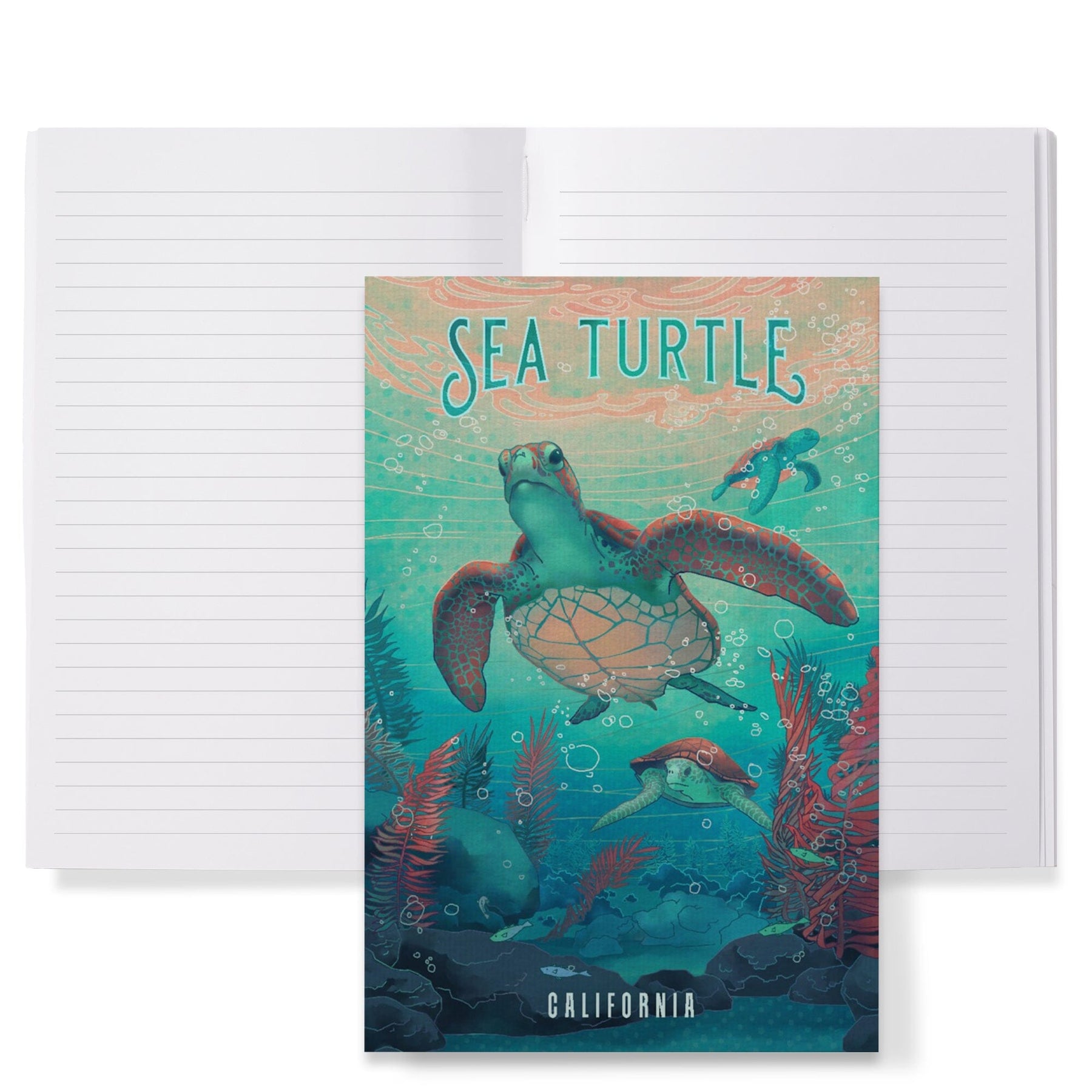 Our Hardcover Journals are printed in the USA, and feature vibrant full color artwork of California, Fluid Linework, Sea Turtle on quality, planet-friendly materials. We use eco-friendly ink and packaging, FSC-certified paper, and recycled materials sourced responsibly.