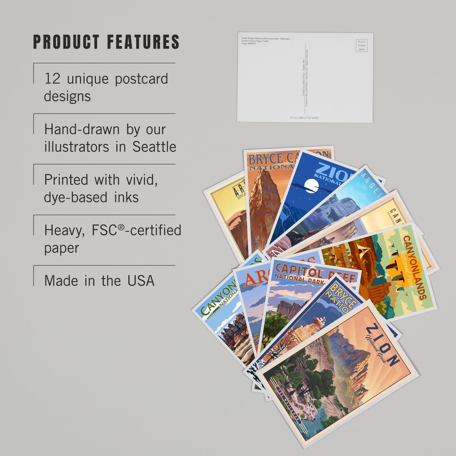 • Set of 12 different postcards of Utah National Parks (Zion, Capitol Reef, Bryce Canyon, Canyonlands and Arches included)