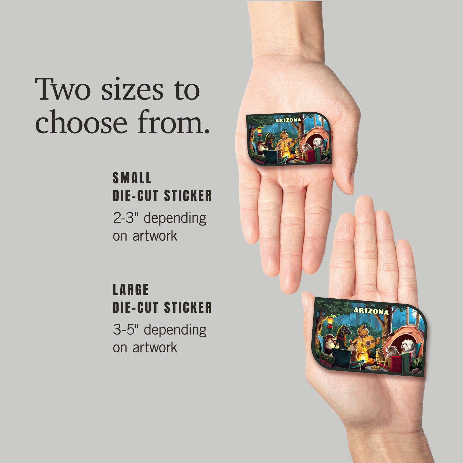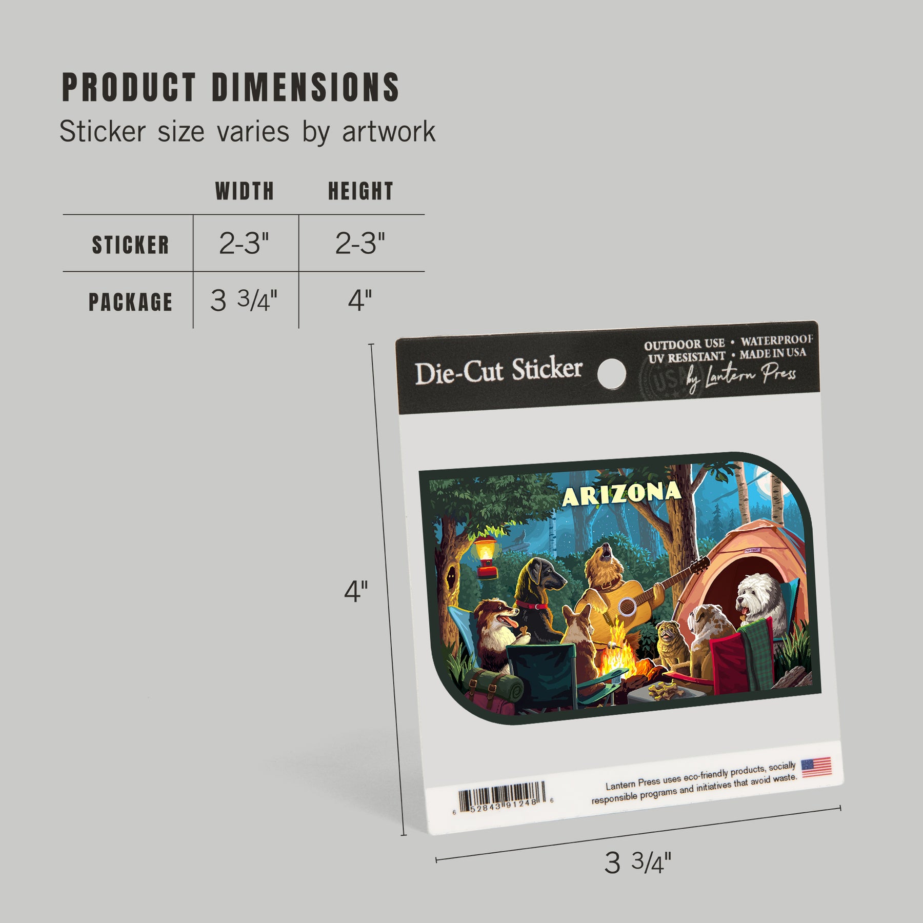 Arizona, Painterly, Pack Life, Dogs Around Campfire, Vinyl Sticker Sticker Lantern Press