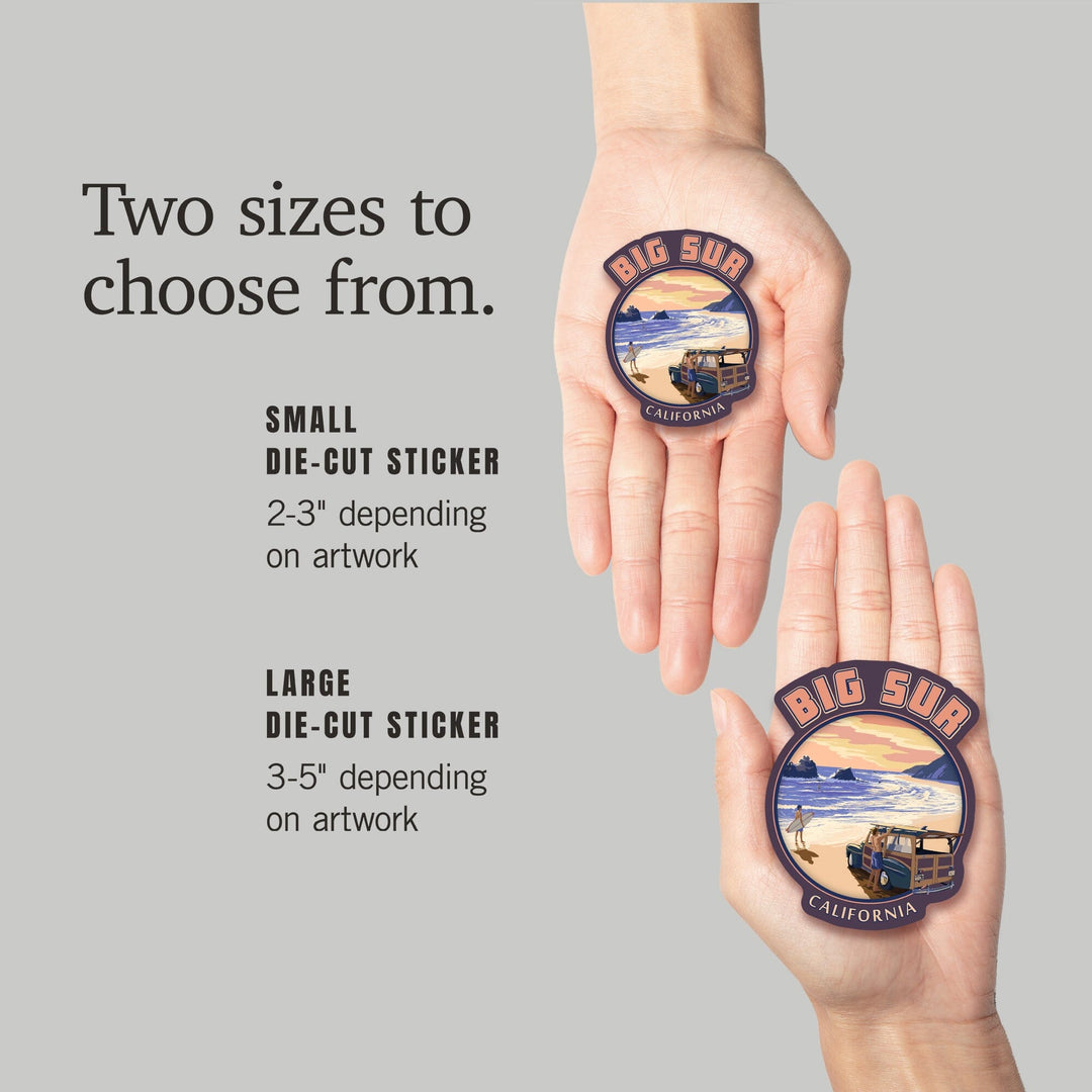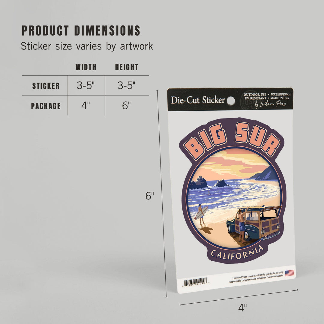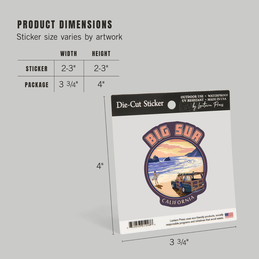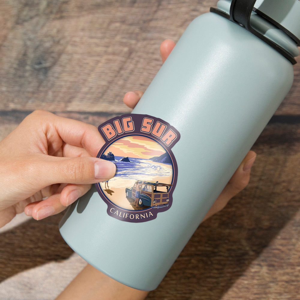 Big Sur, California, Woody on Beach, Contour, Vinyl Sticker