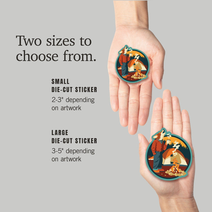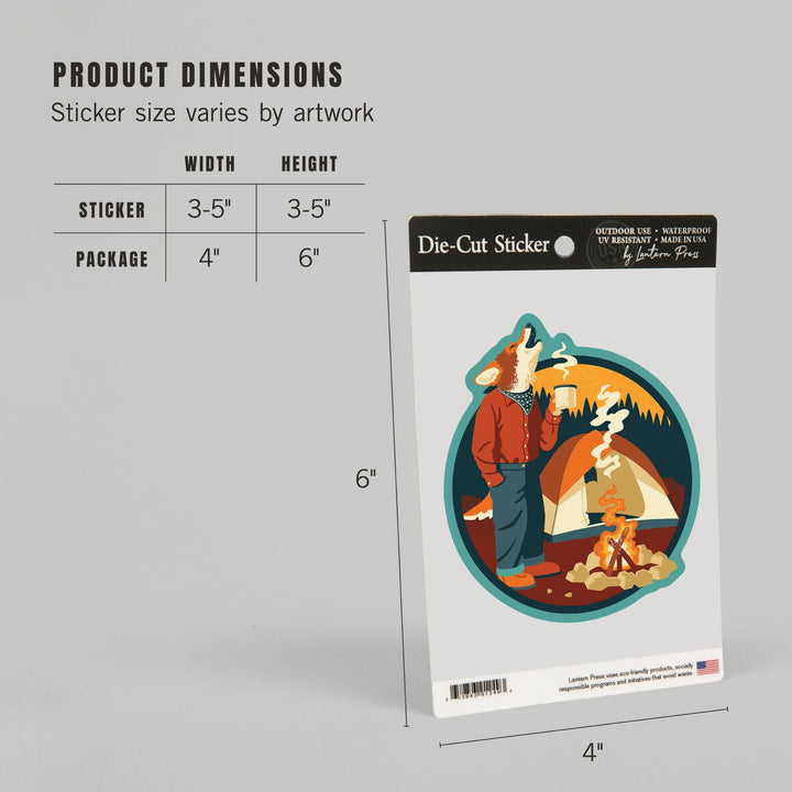 Camping Coyote, Contour, Lantern Press Artwork, Vinyl Sticker