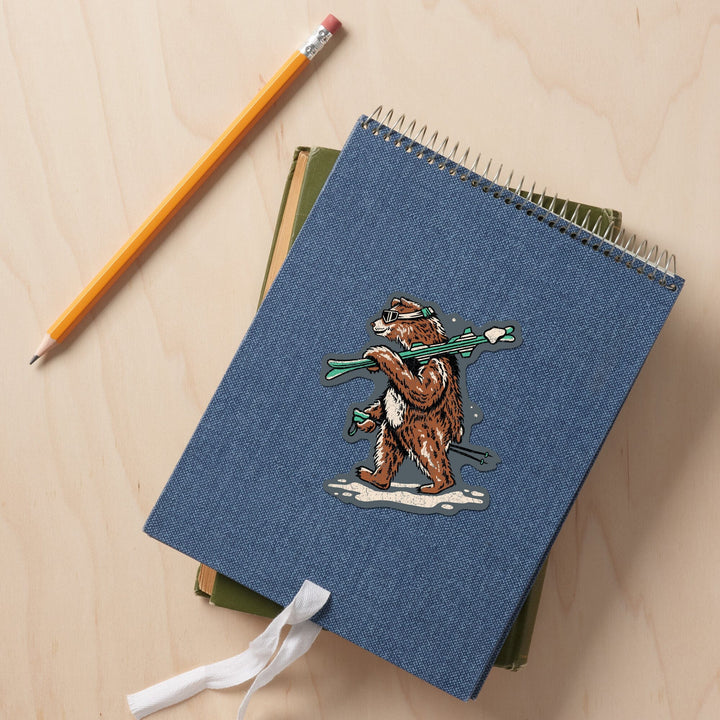Ski Bear, Distressed Vector, Lantern Press Artwork, Vinyl Sticker
