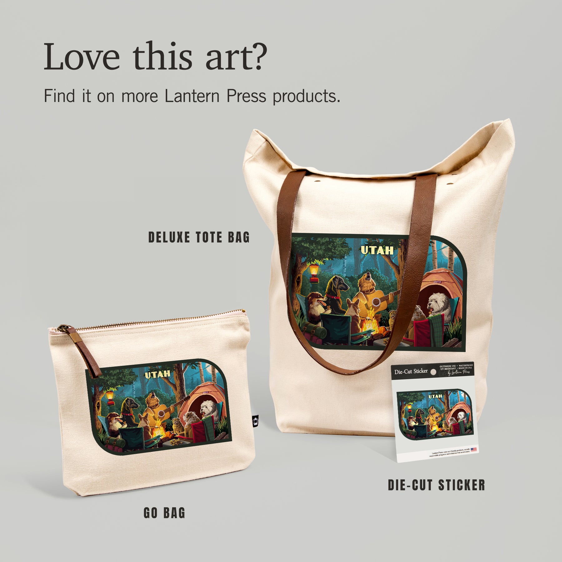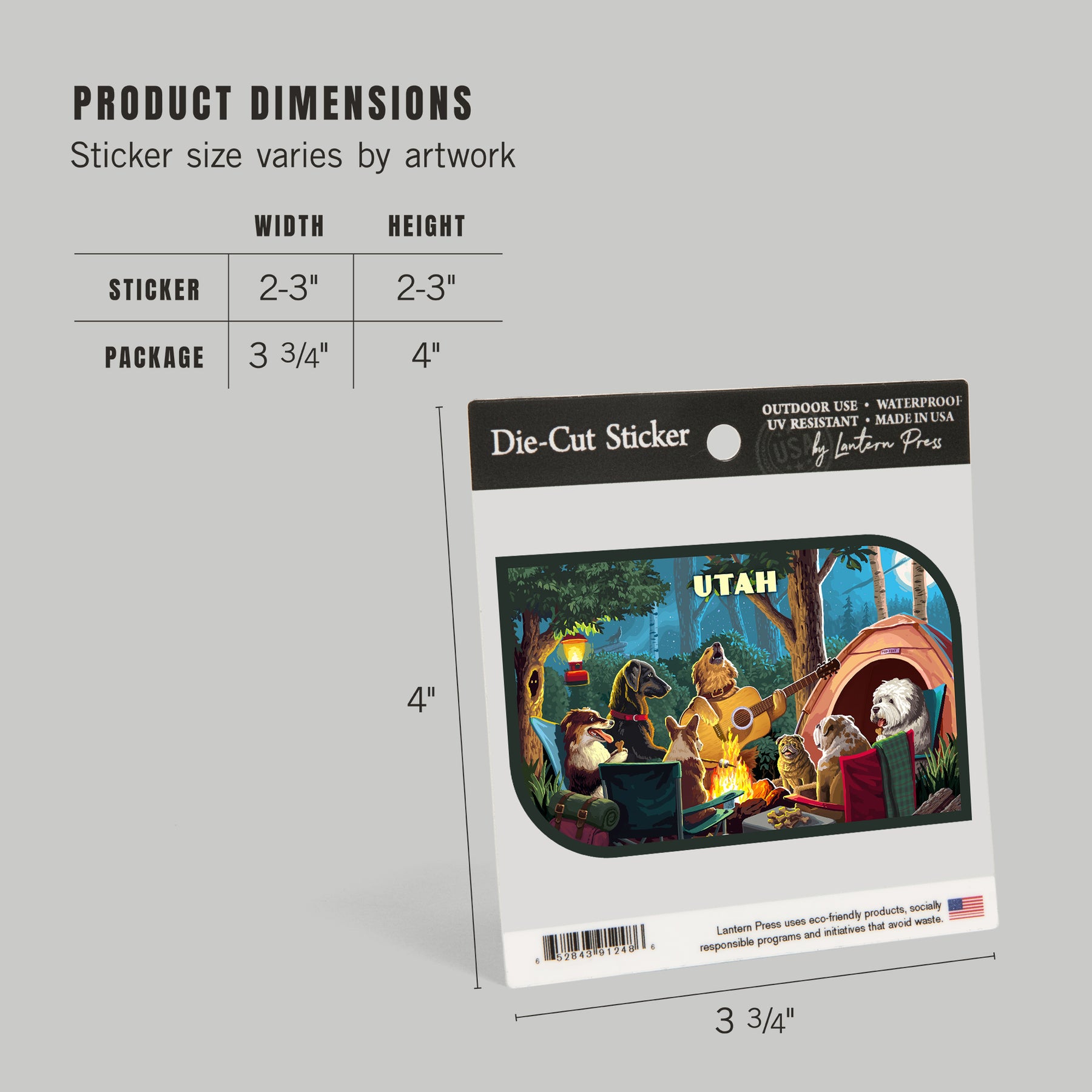 Utah, Painterly, Pack Life, Dogs Around Campfire, Vinyl Sticker Sticker Lantern Press