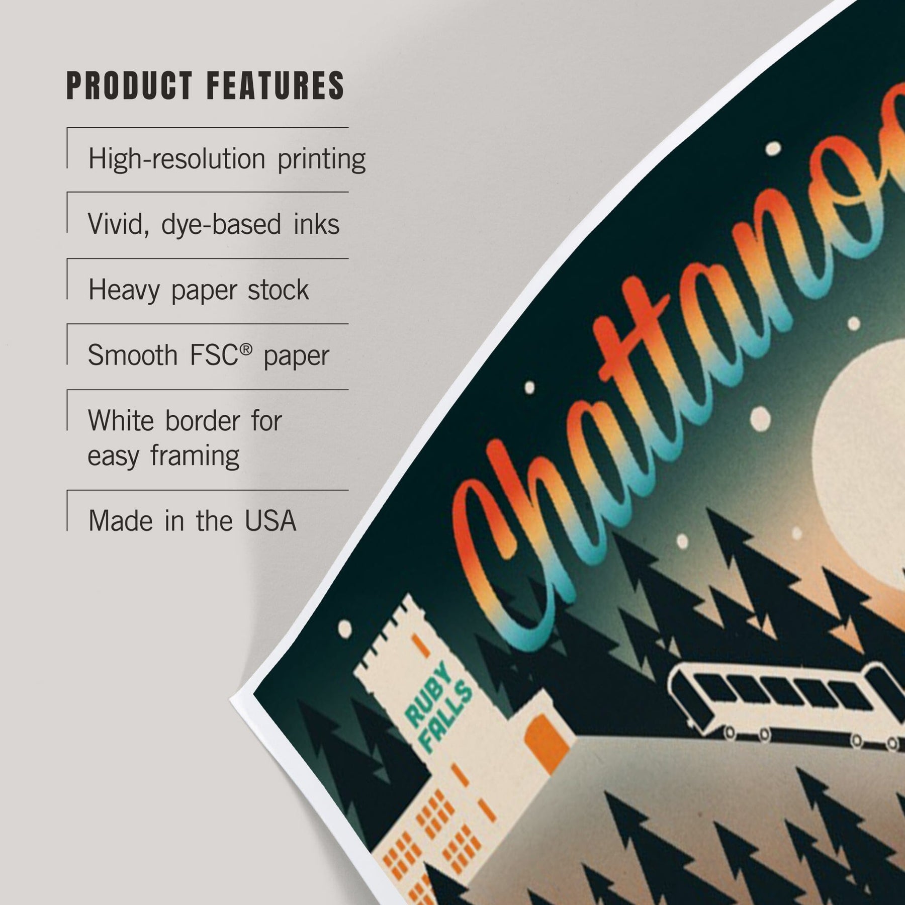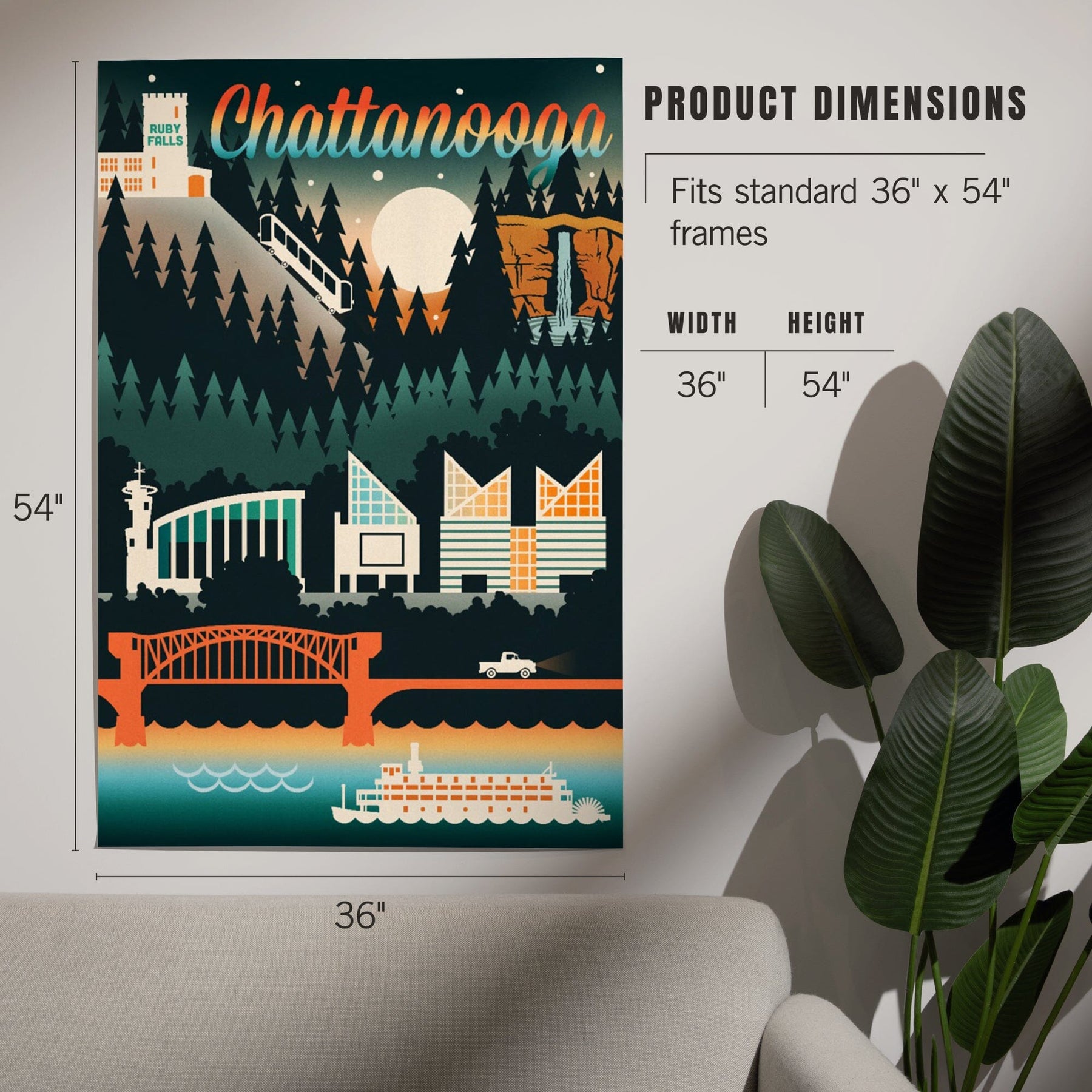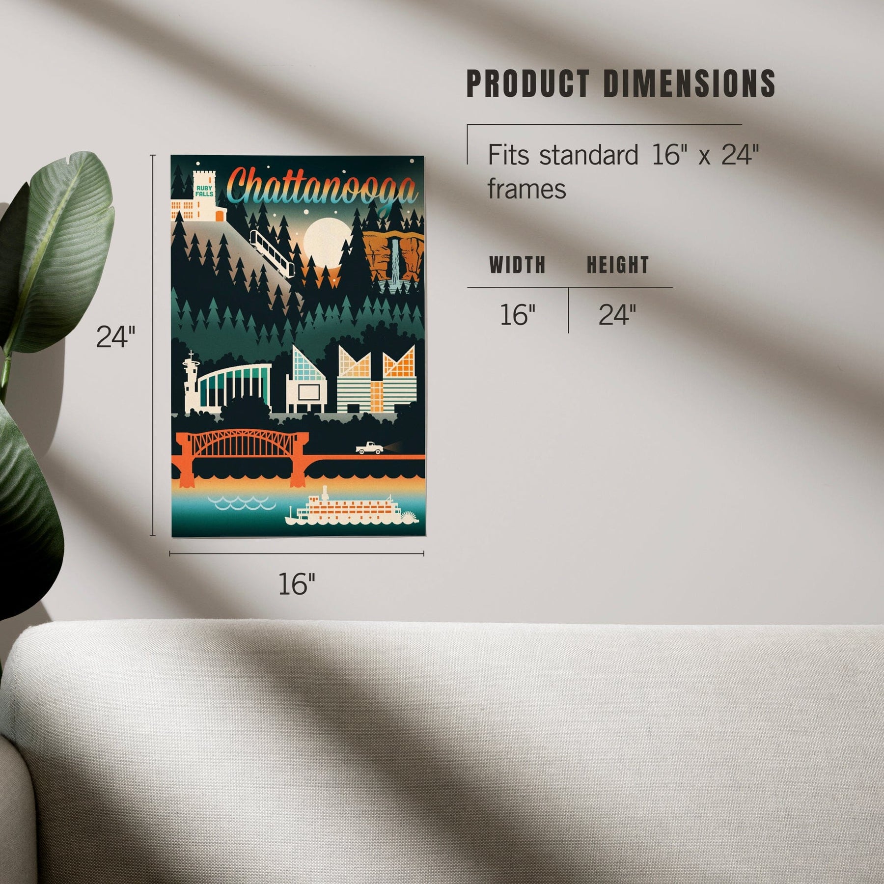 Chattanooga, Tennessee, Retro Skyline Chromatic Series, Art & Giclee Prints - Lantern Press