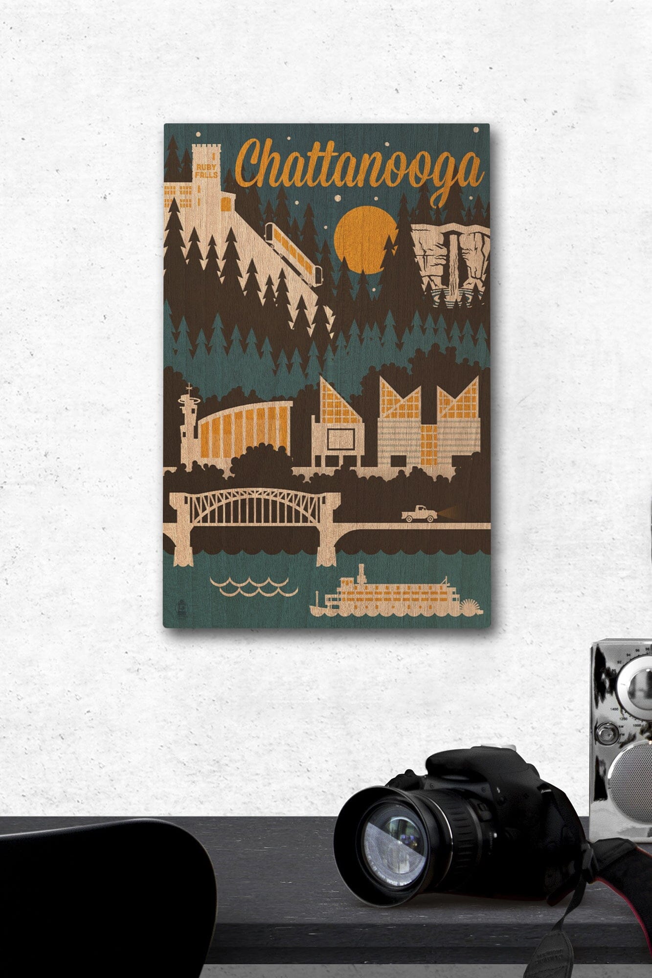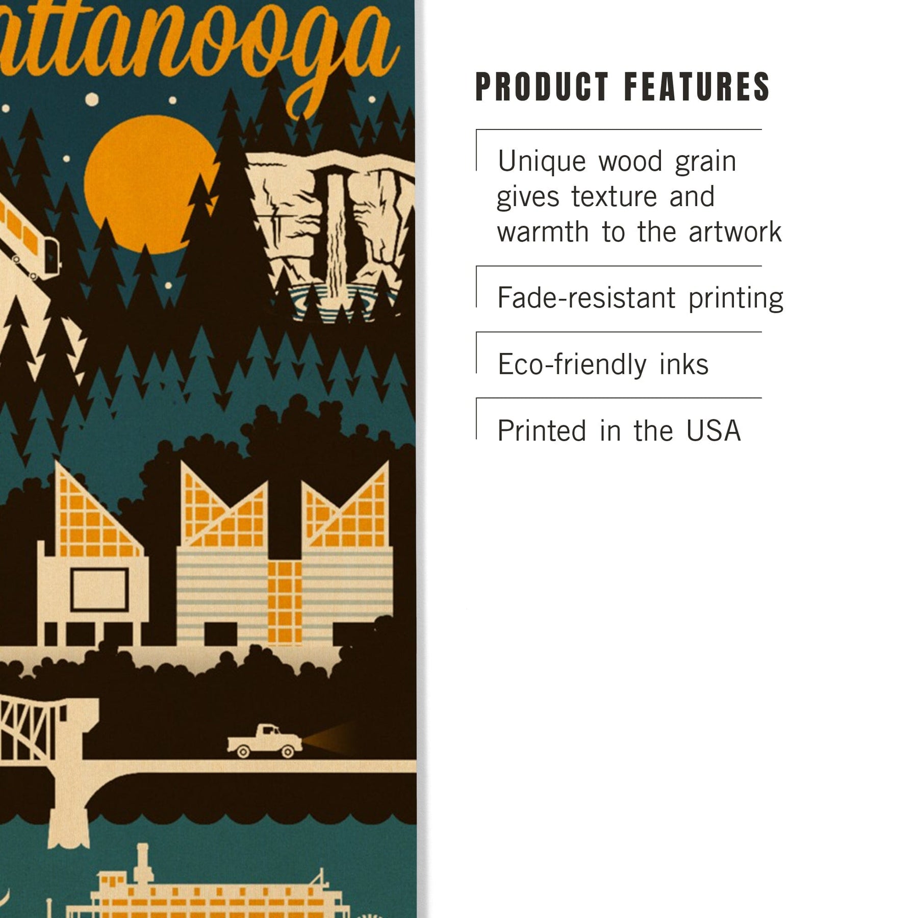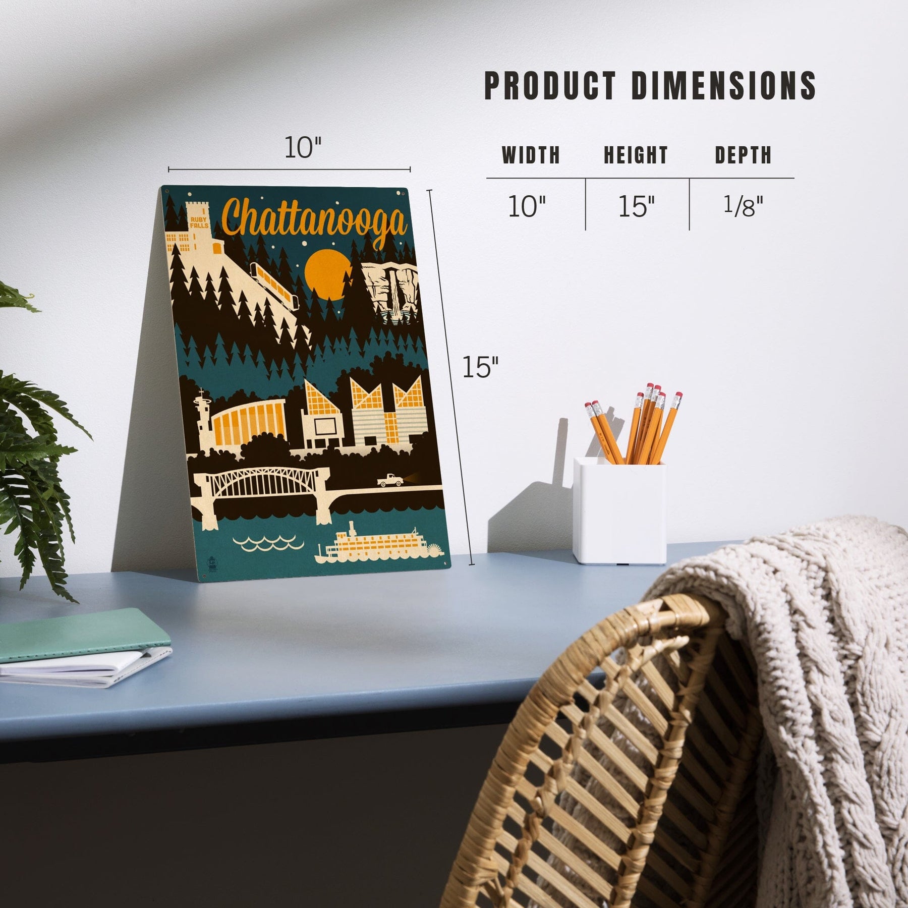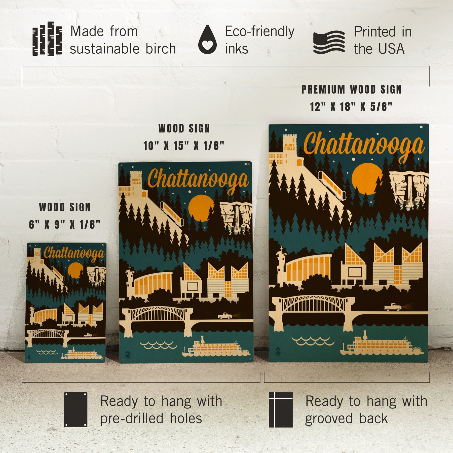 Chattanooga, Tennessee, Retro Skyline, Lantern Press Artwork, Wood Signs and Postcards