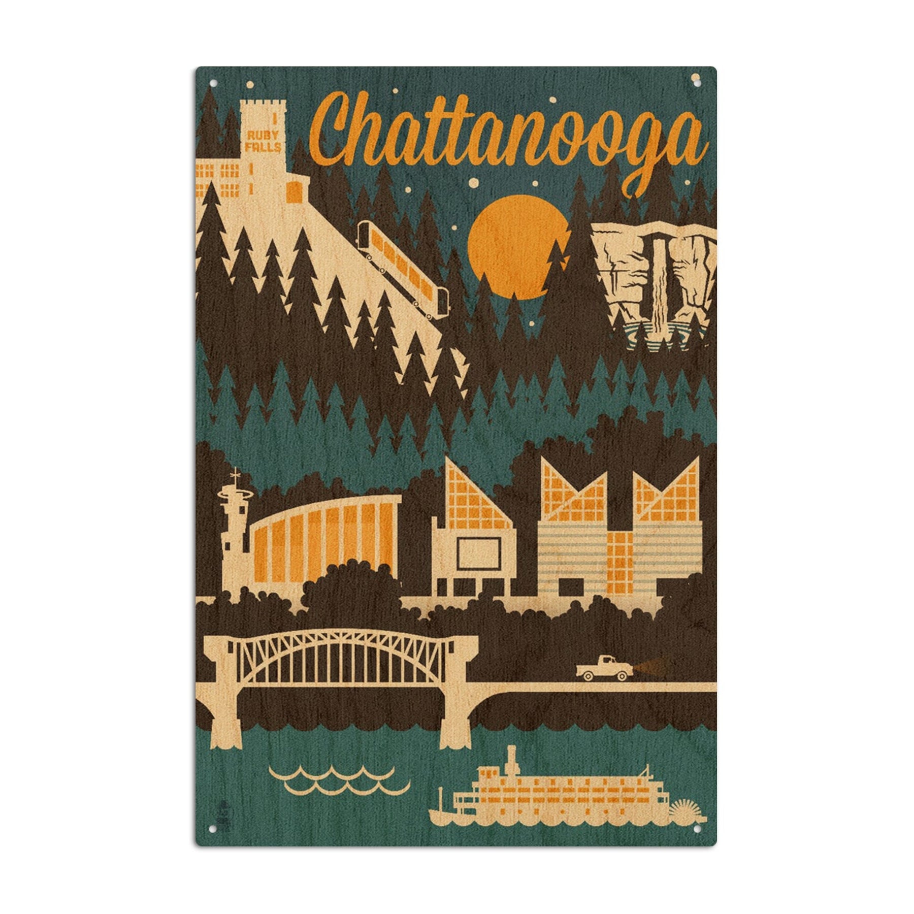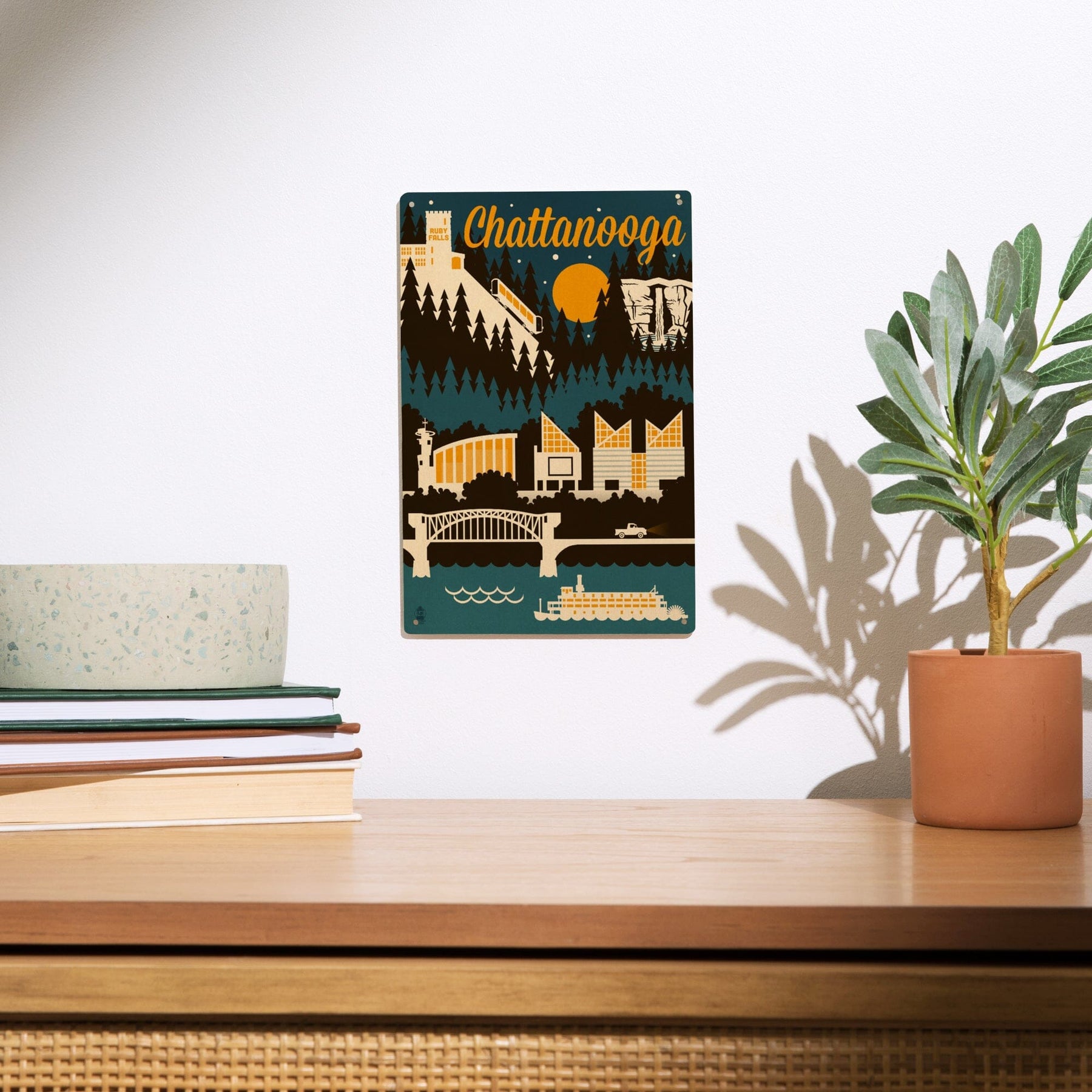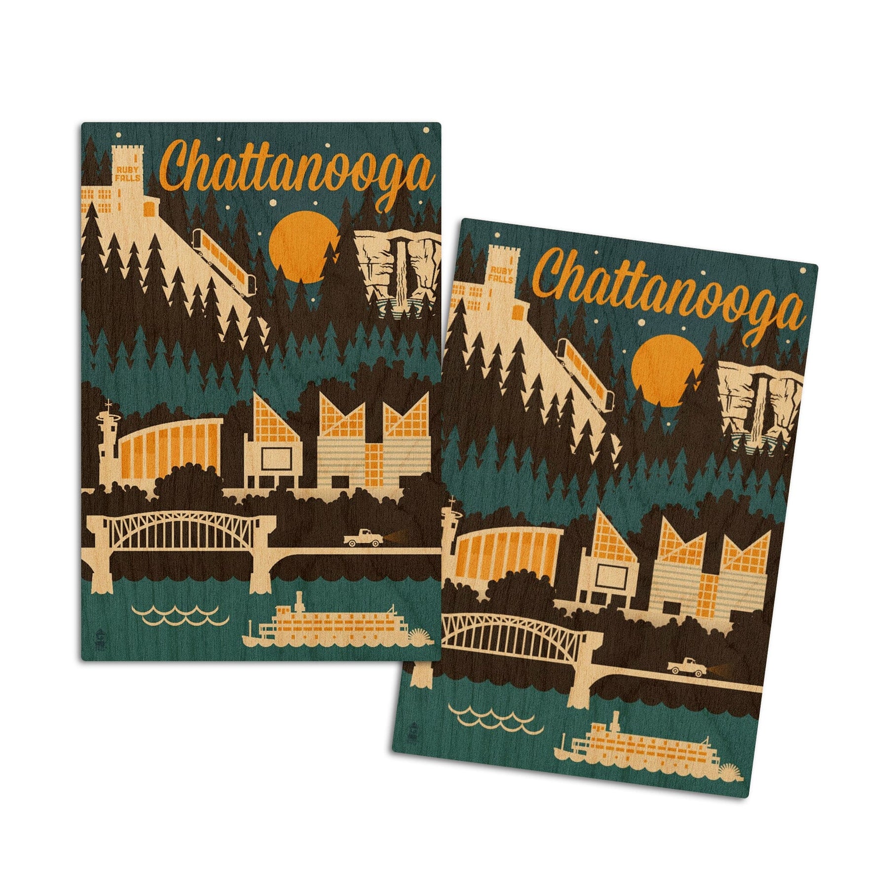 Chattanooga, Tennessee, Retro Skyline, Lantern Press Artwork, Wood Signs and Postcards - Lantern Press