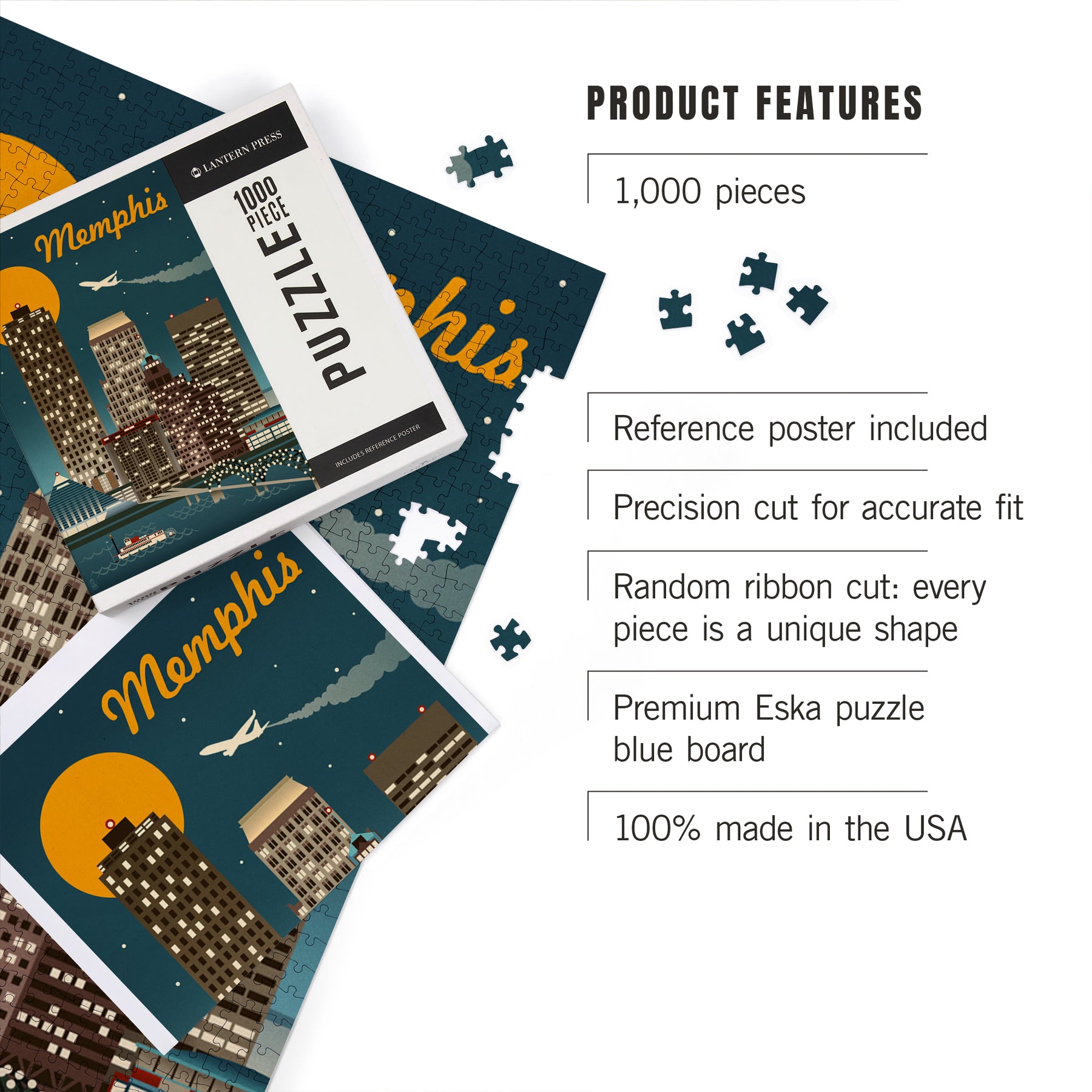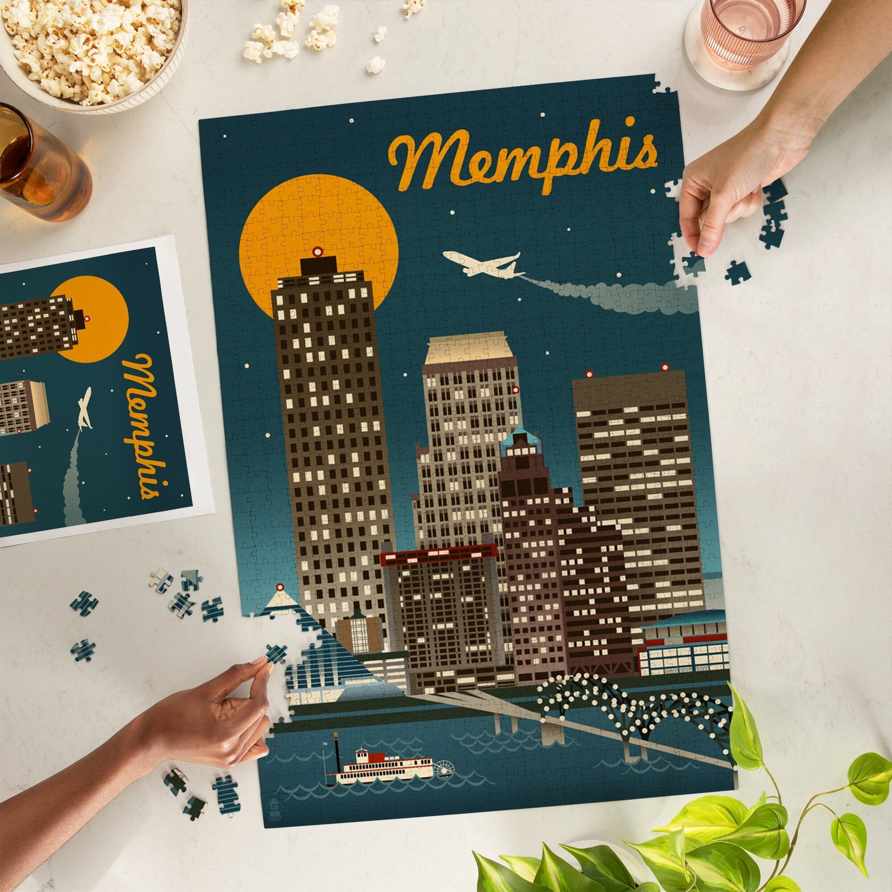 Memphis, Tennessee, Retro Skyline, Jigsaw Puzzle Puzzle Lantern Press