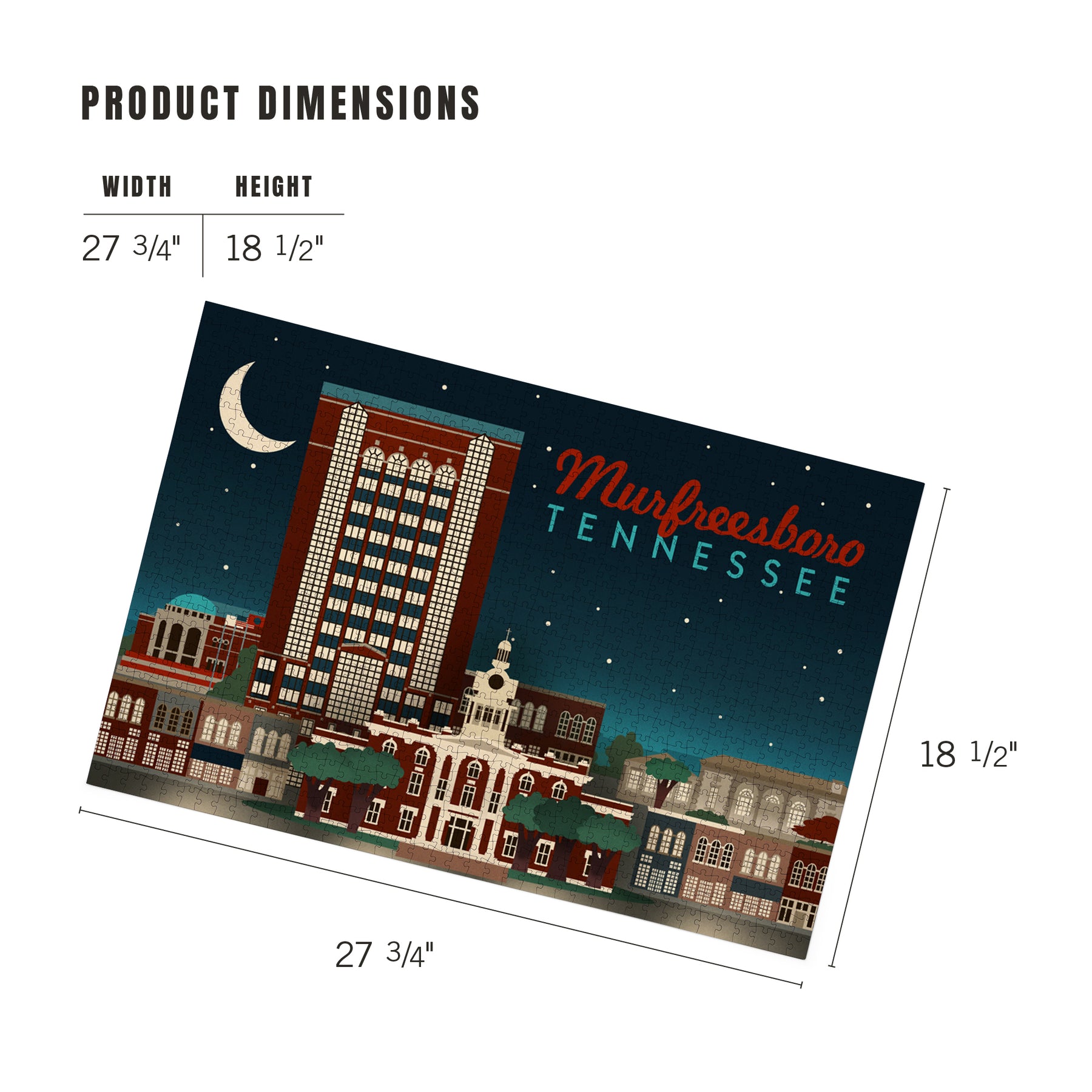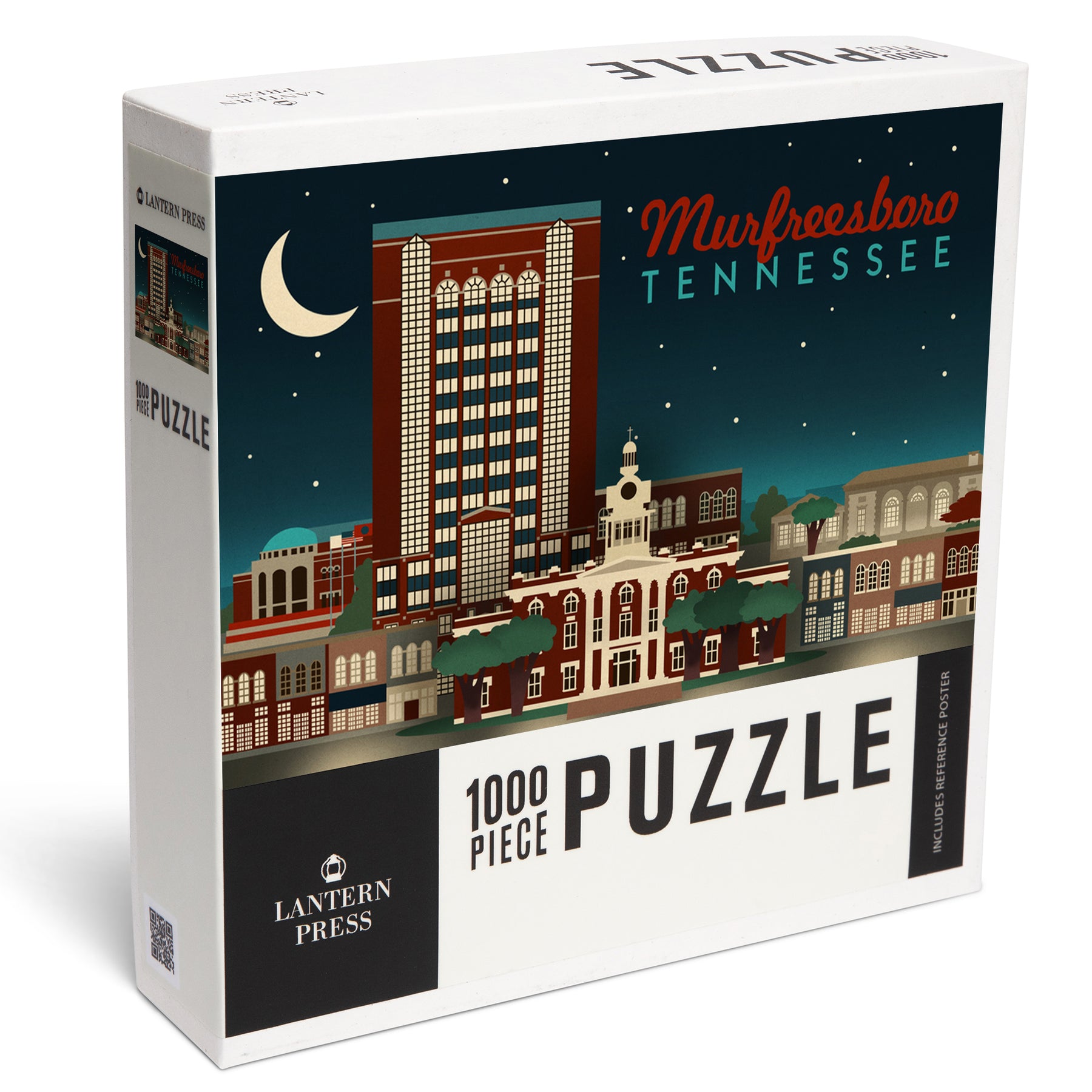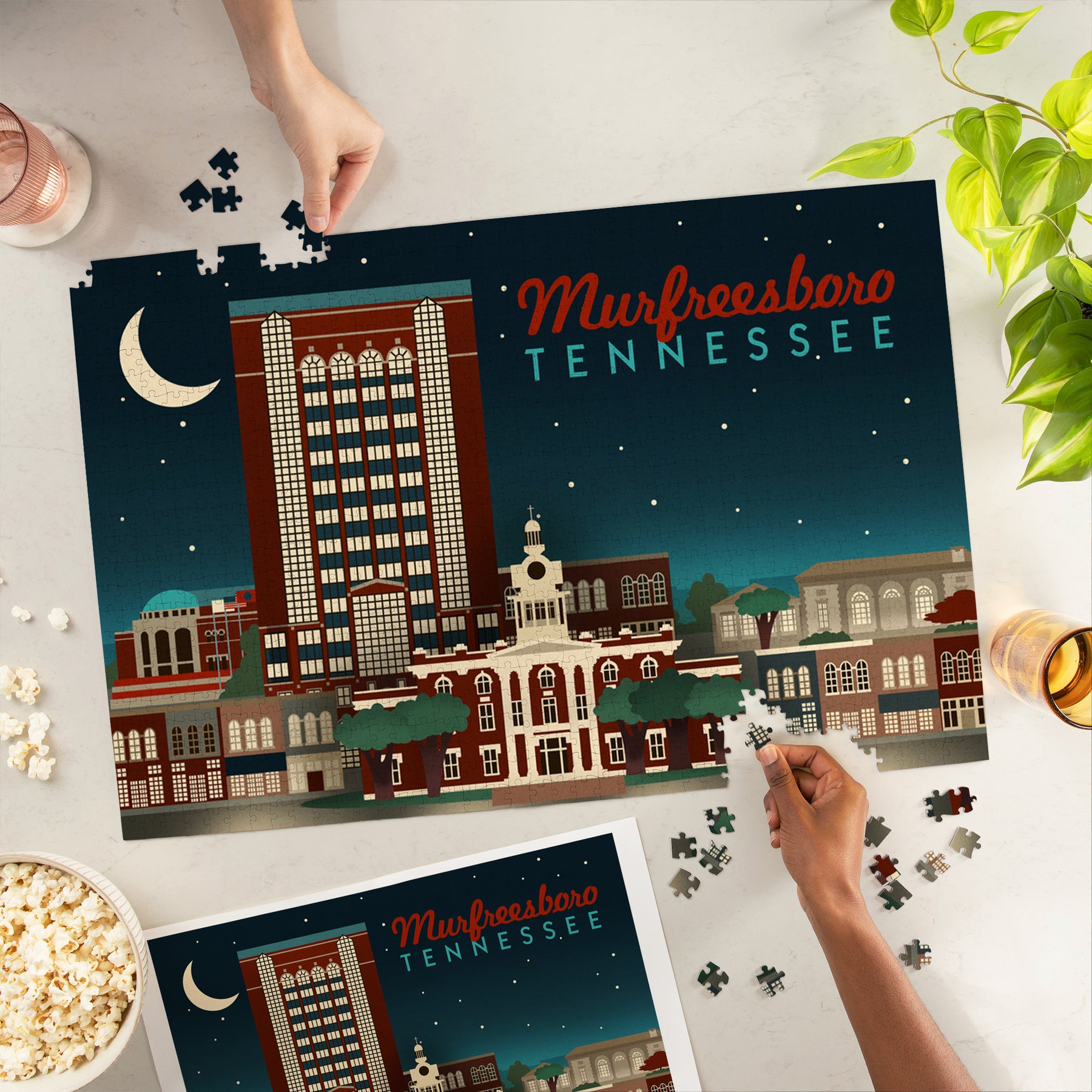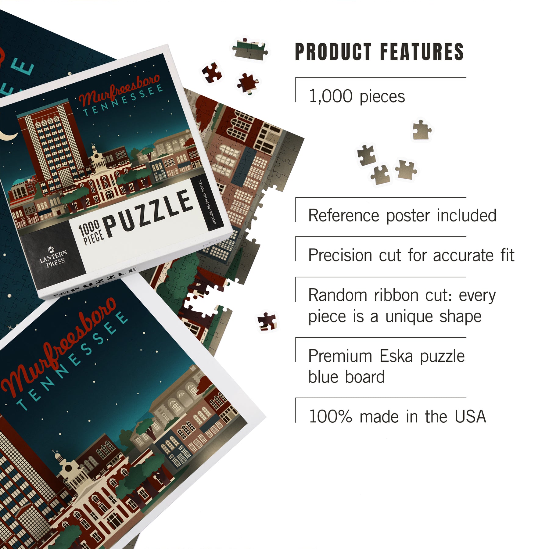 Murfreesboro, Tennessee, Retro Style Skyline, Jigsaw Puzzle Puzzle Lantern Press