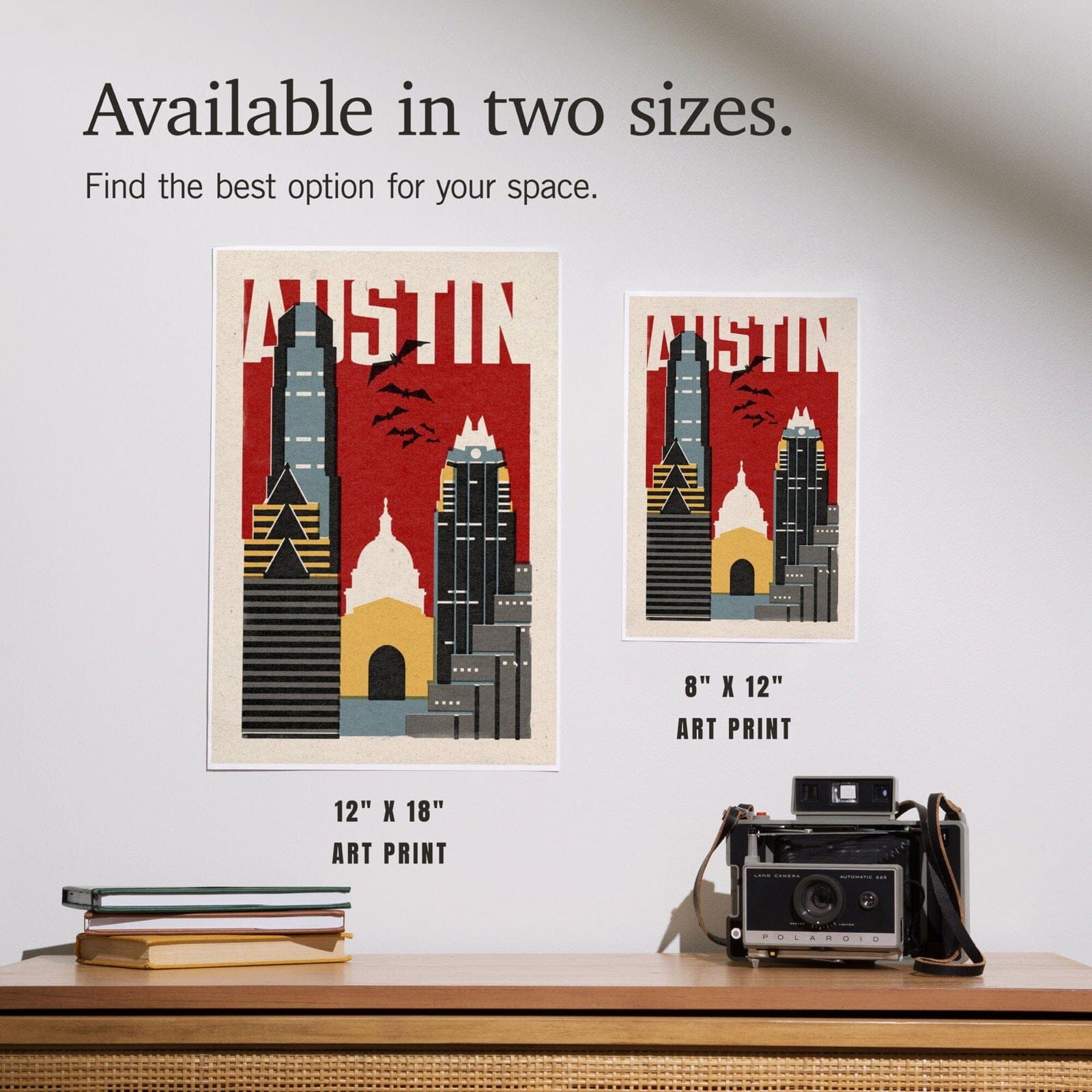 Austin, Texas, Woodblock, Art & Giclee Prints
