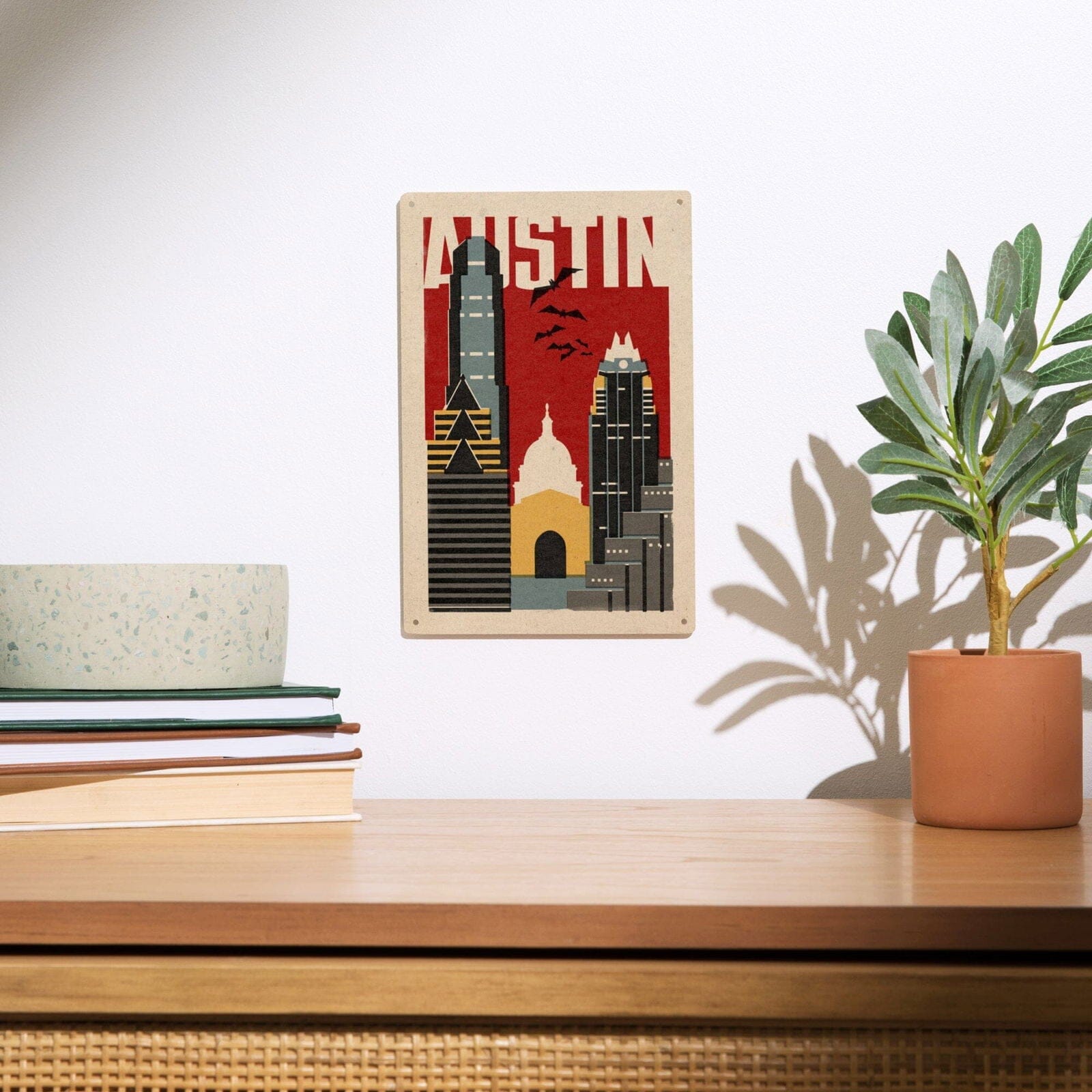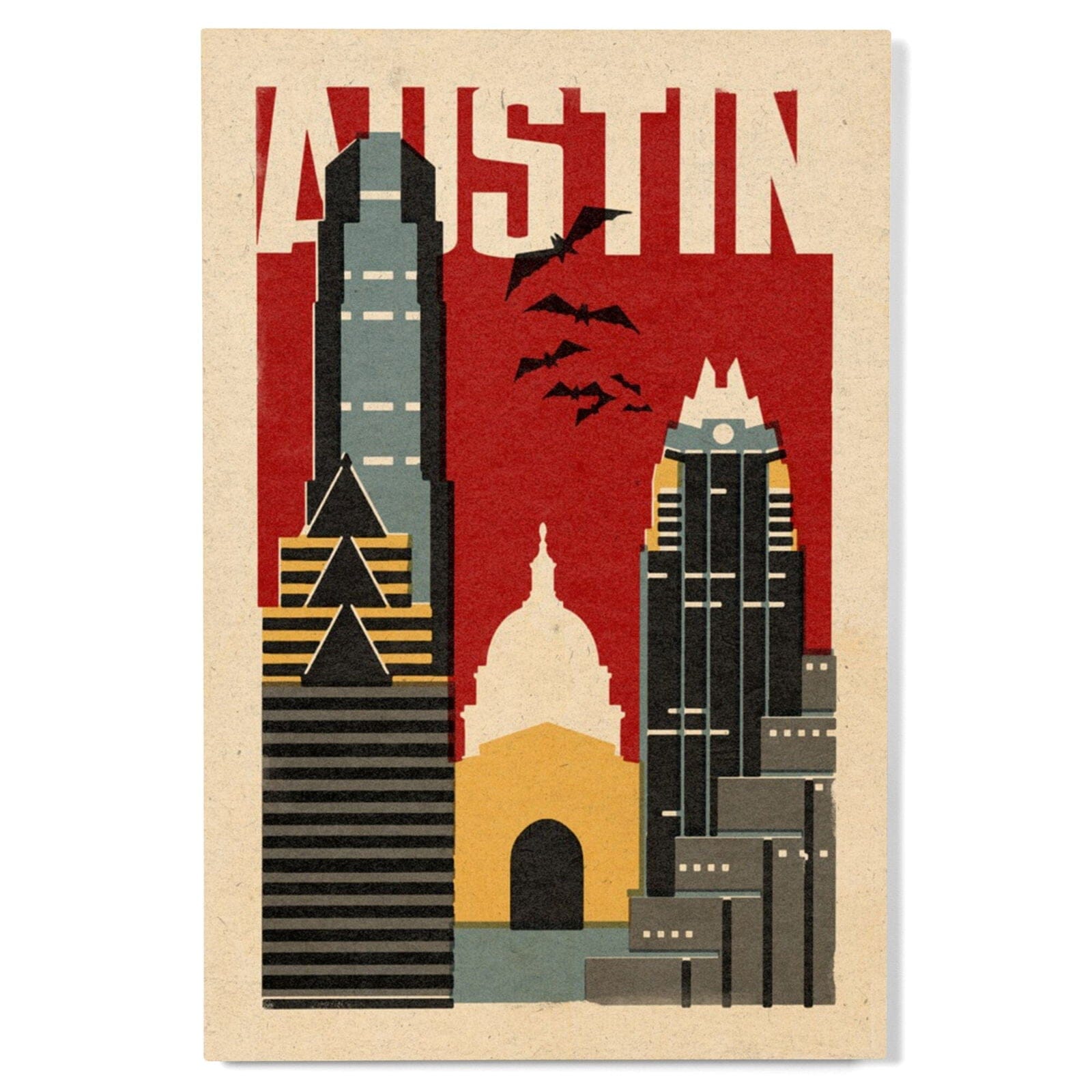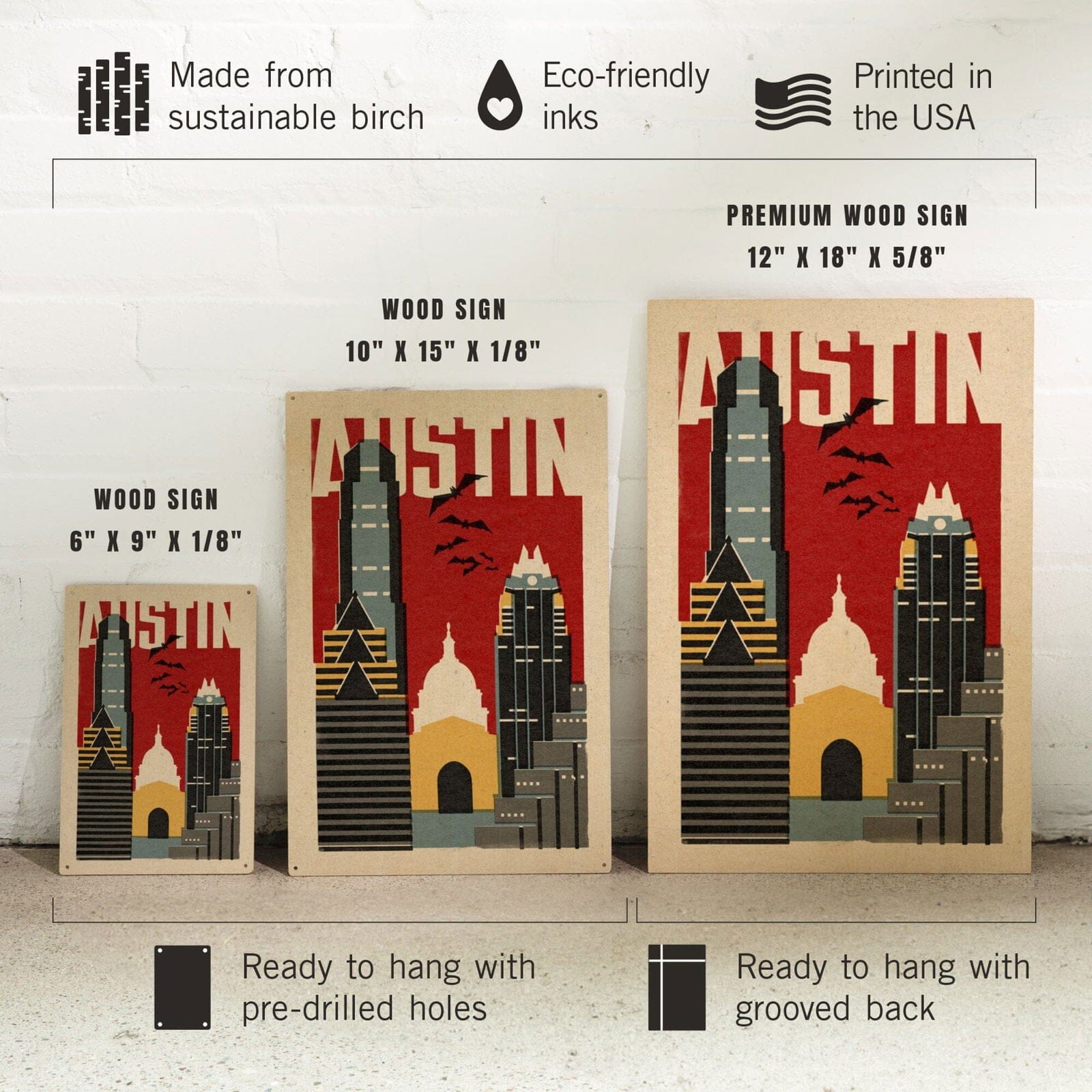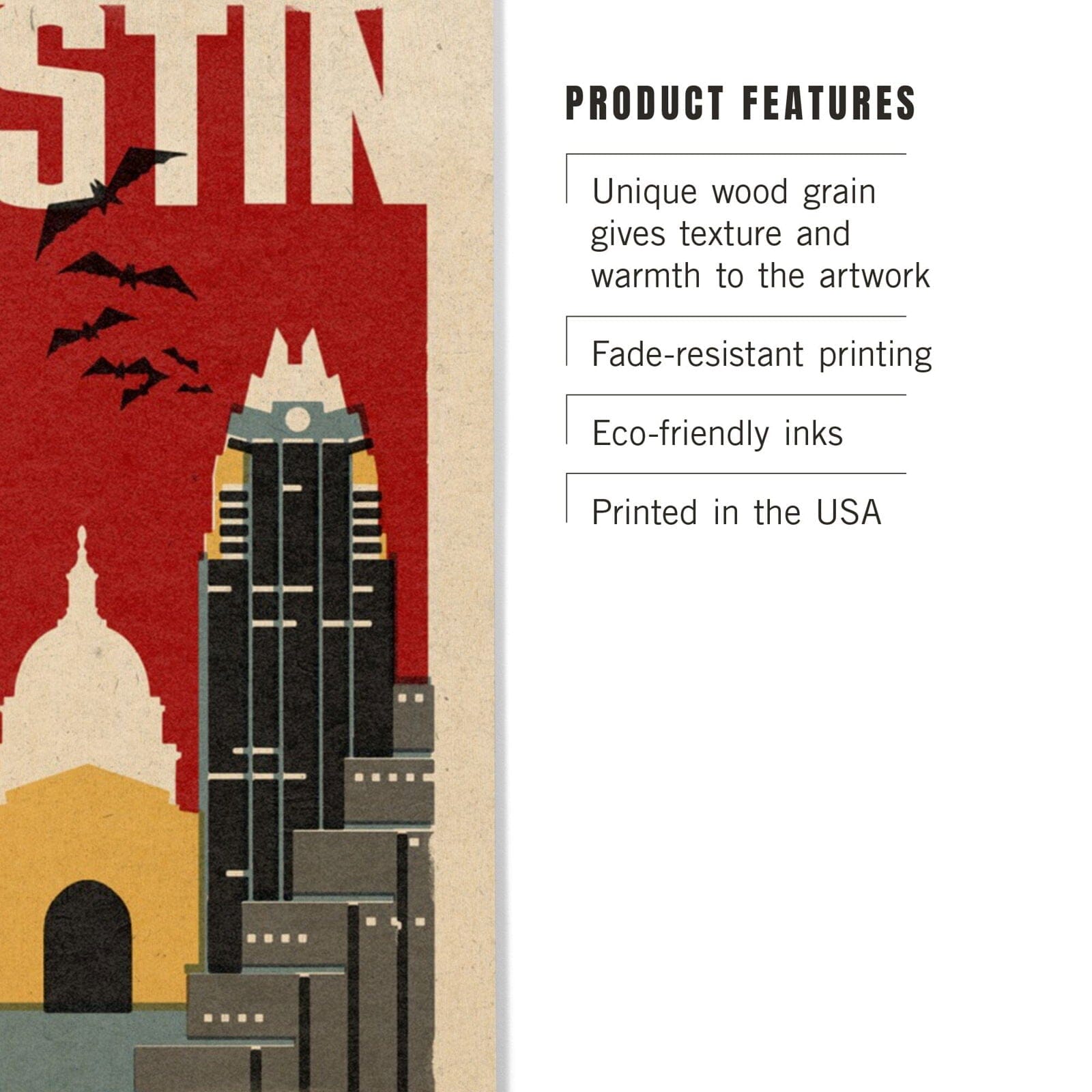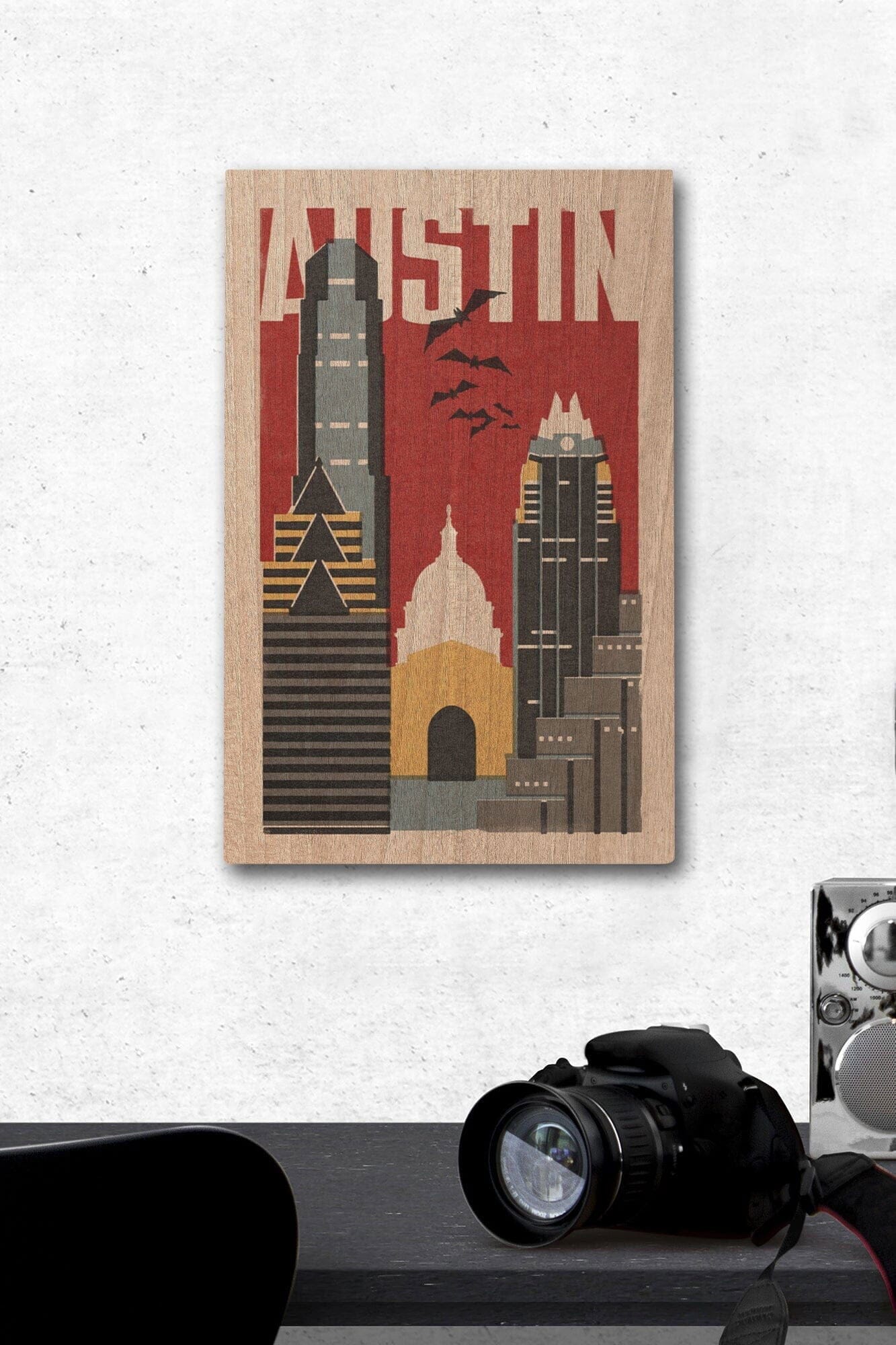 Austin, Texas, Woodblock, Lantern Press Artwork, Wood Signs and Postcards