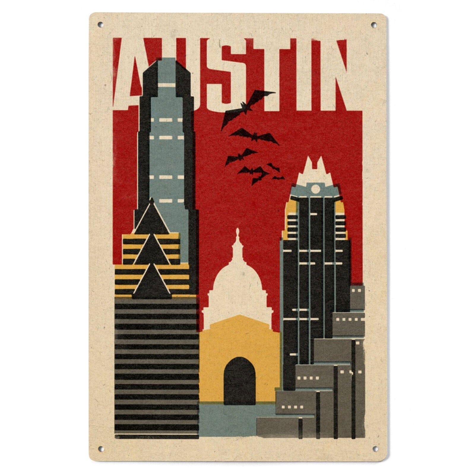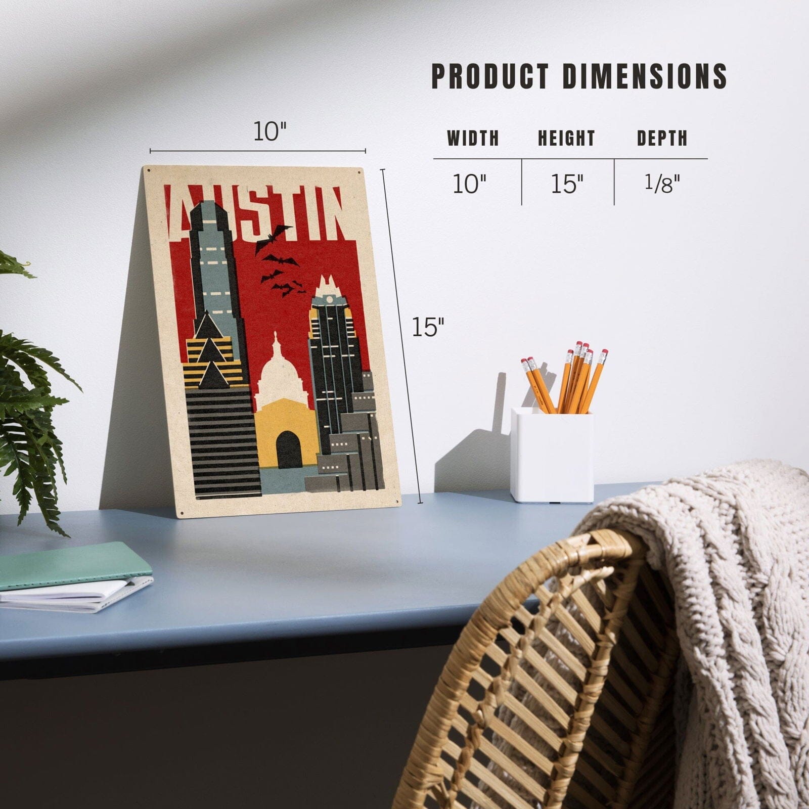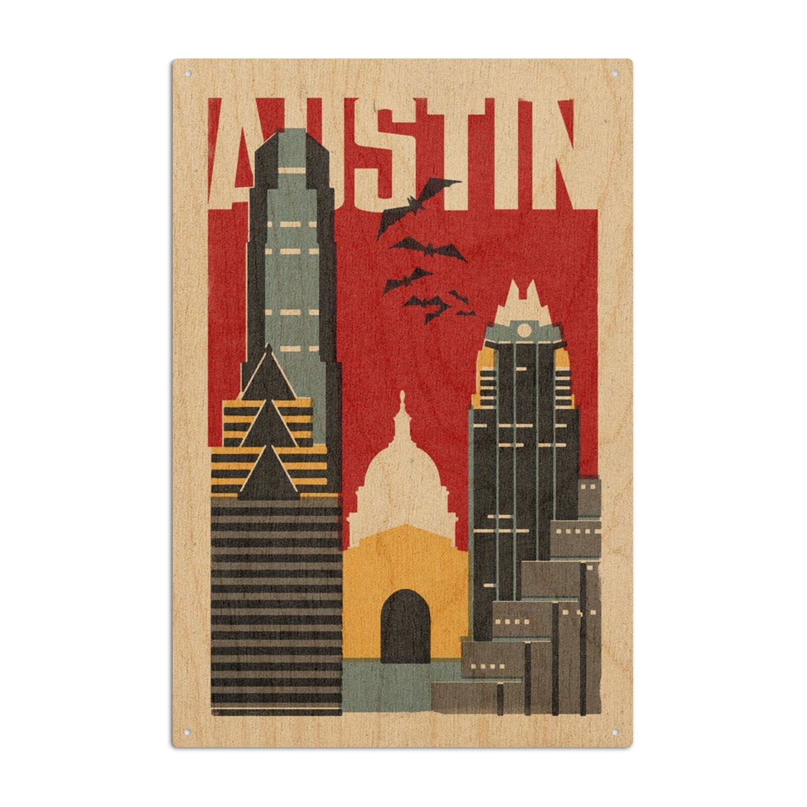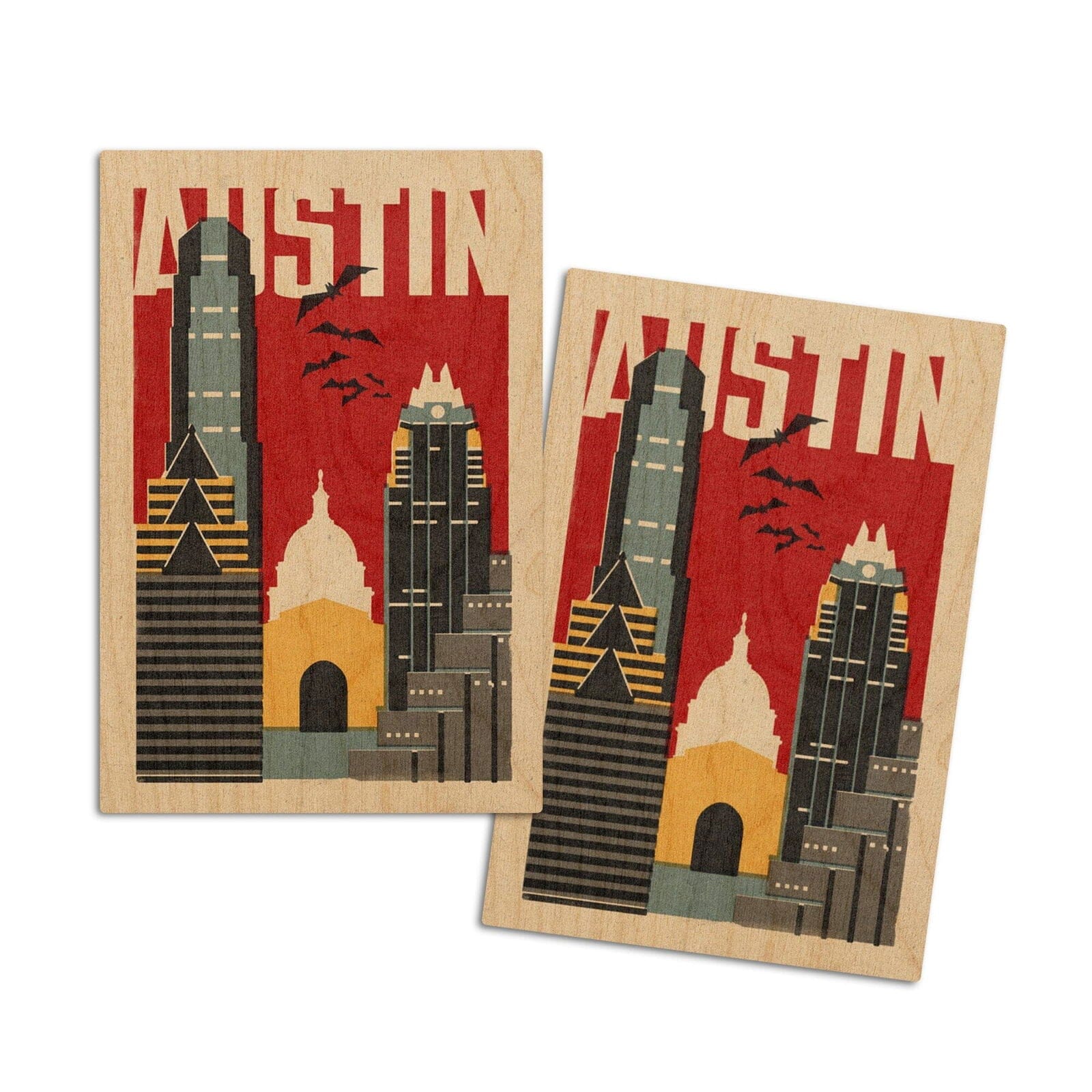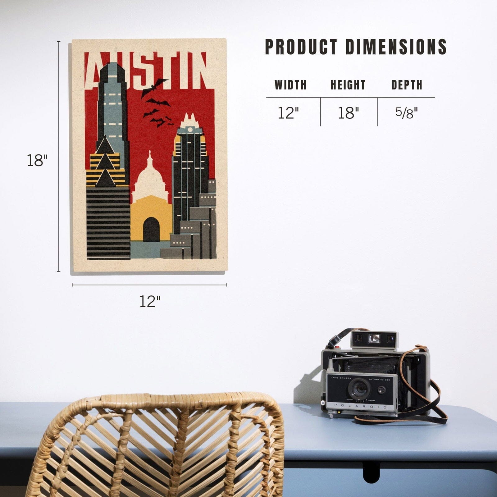 Austin, Texas, Woodblock, Lantern Press Artwork, Wood Signs and Postcards
