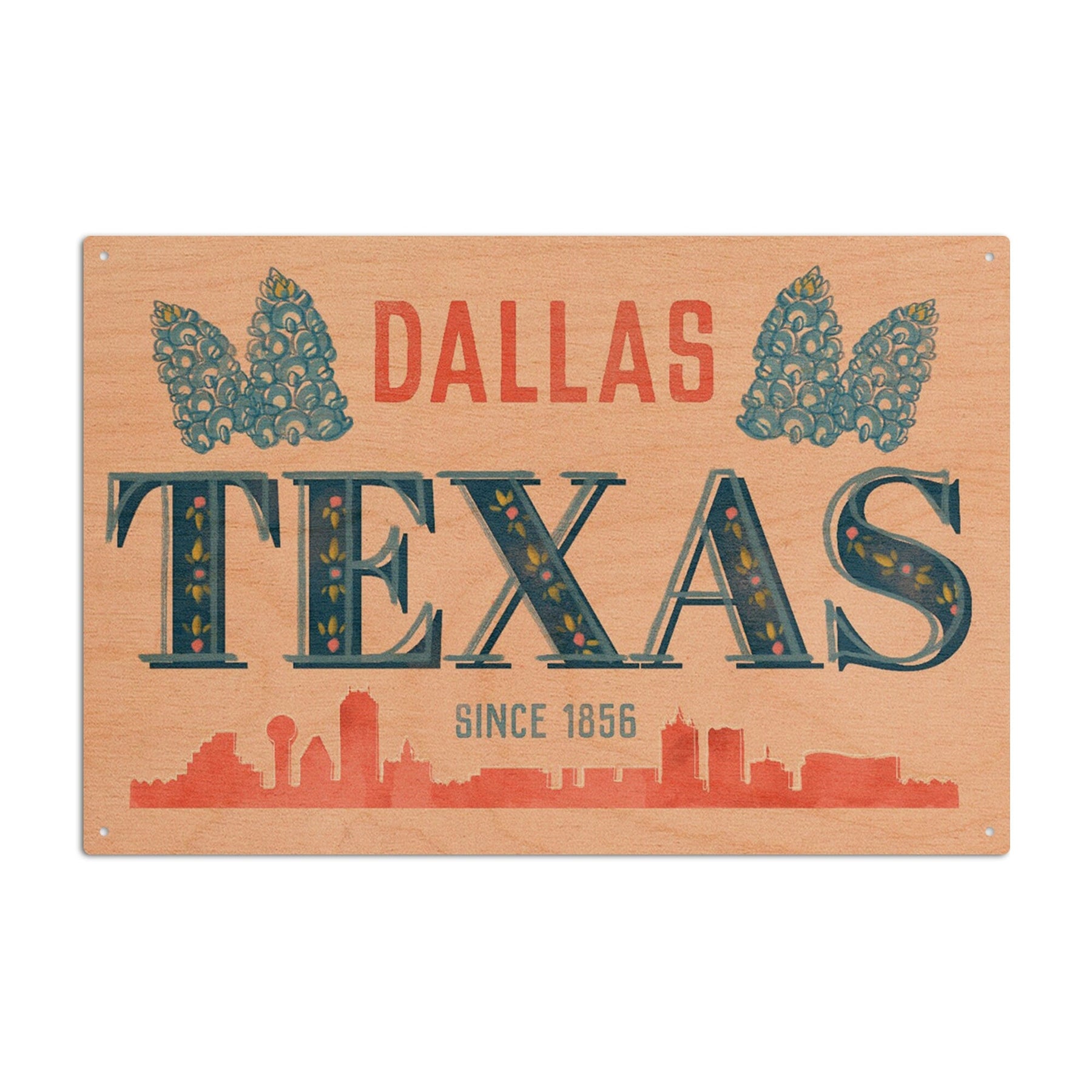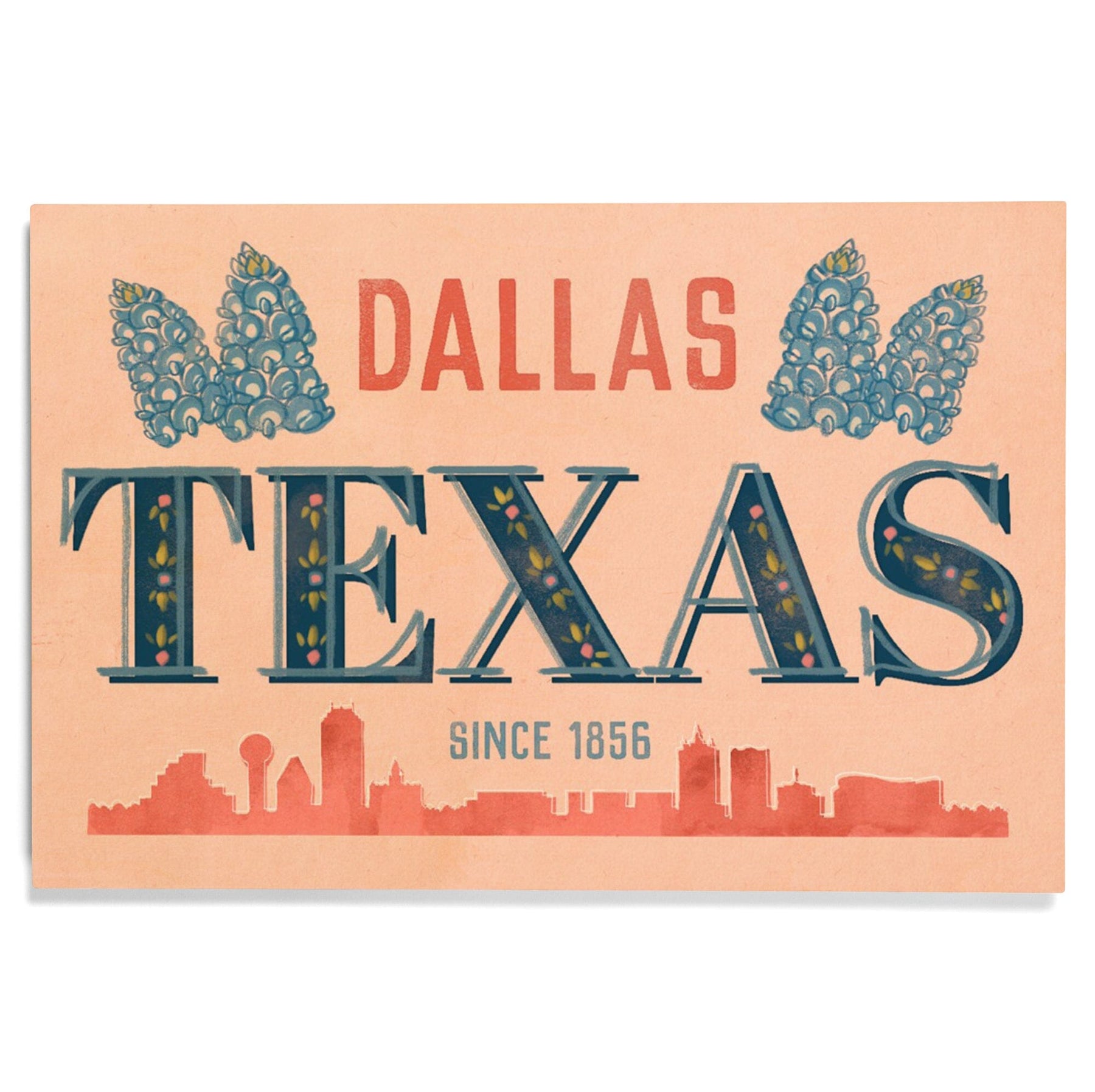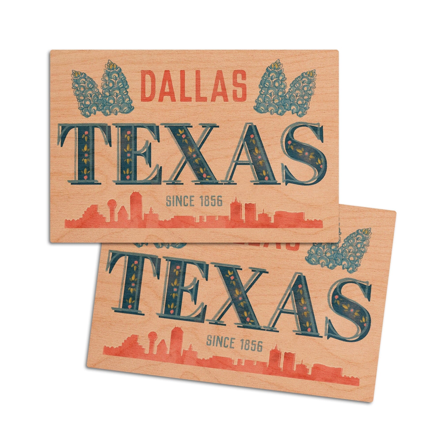 Dallas, Texas, Whimsy City Collection, Skyline and State Flowers, Wood Signs and Postcards
