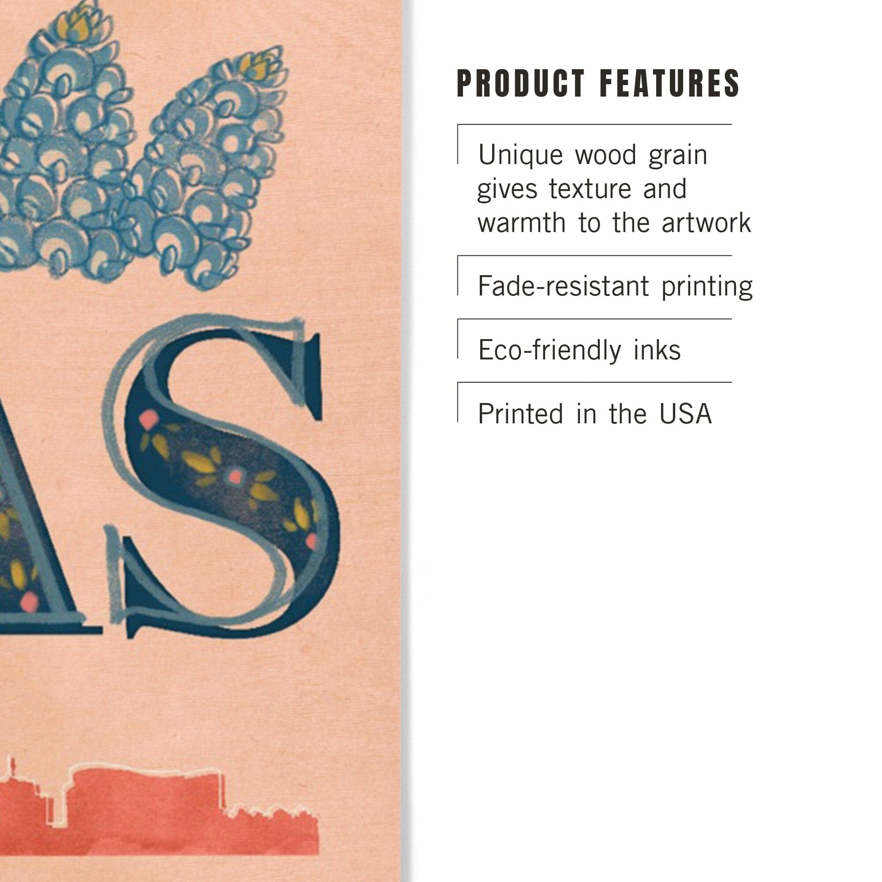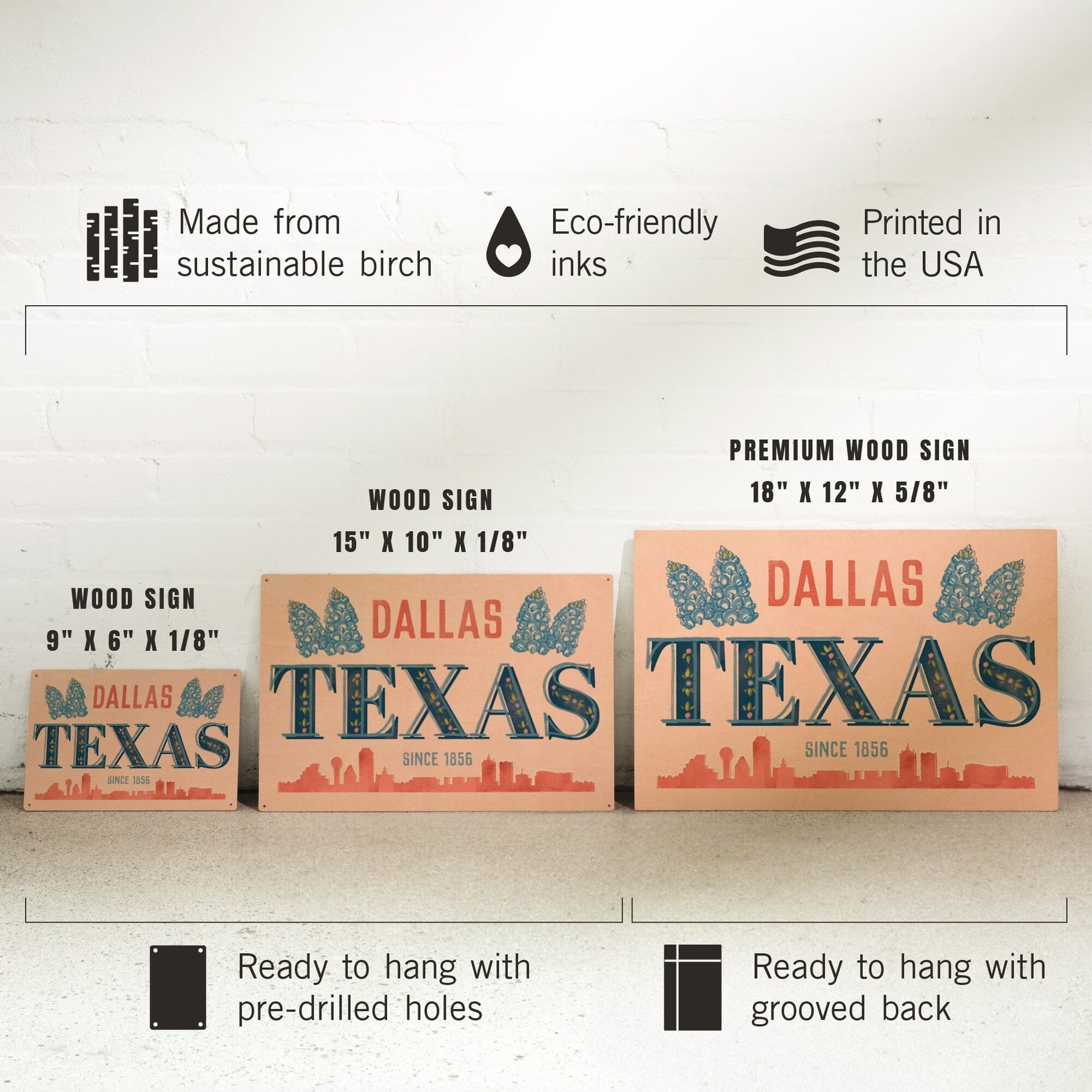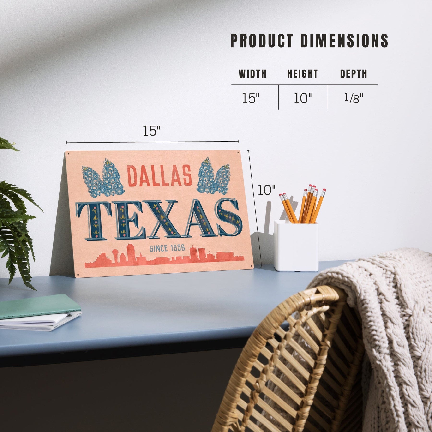 Dallas, Texas, Whimsy City Collection, Skyline and State Flowers, Wood Signs and Postcards