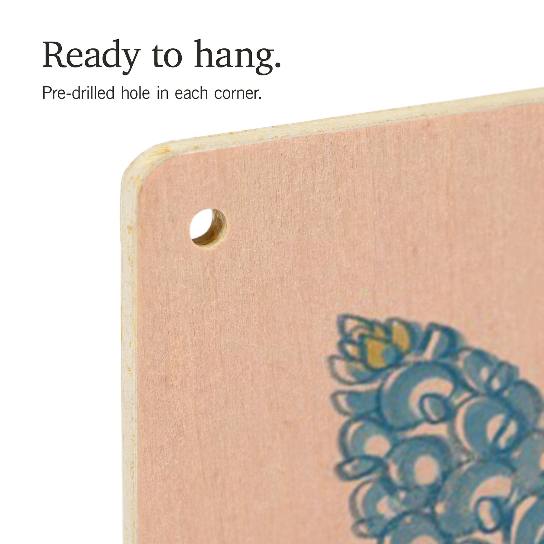 • Hole in each corner, ready to hang