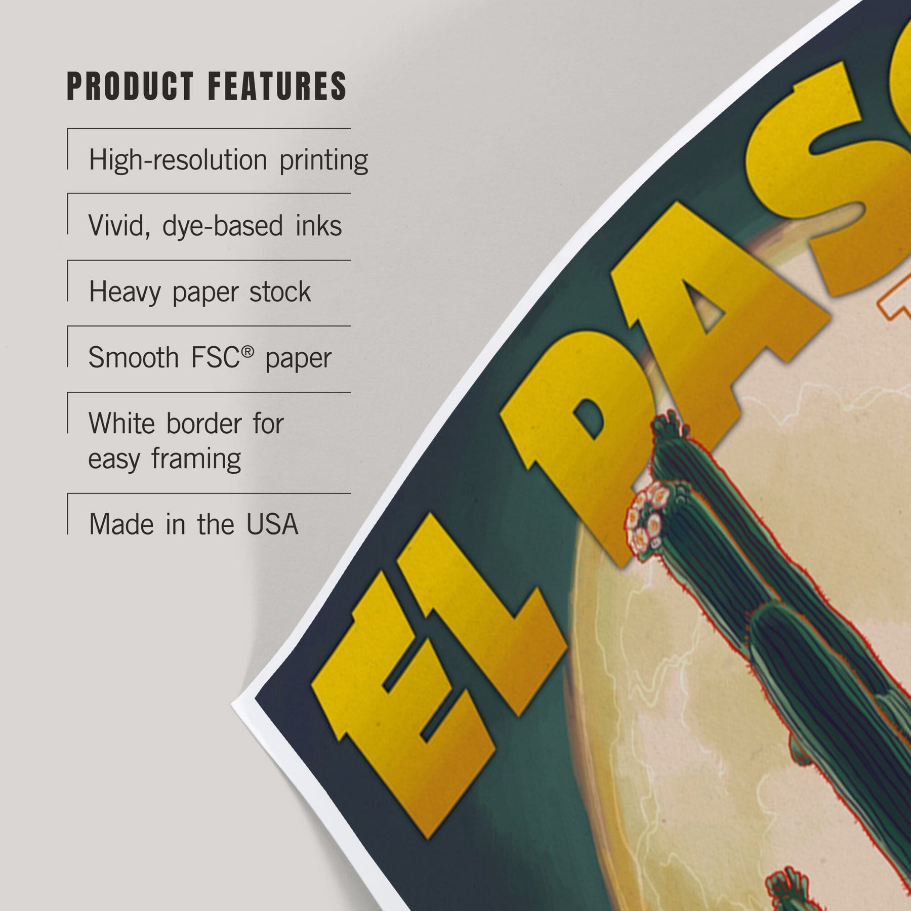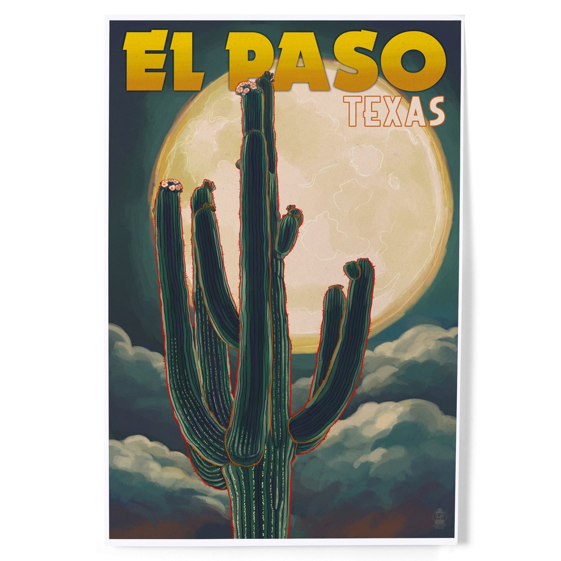 El Paso, Texas, Cactus and Full Moon, Art & Giclee Prints - Lantern Press
