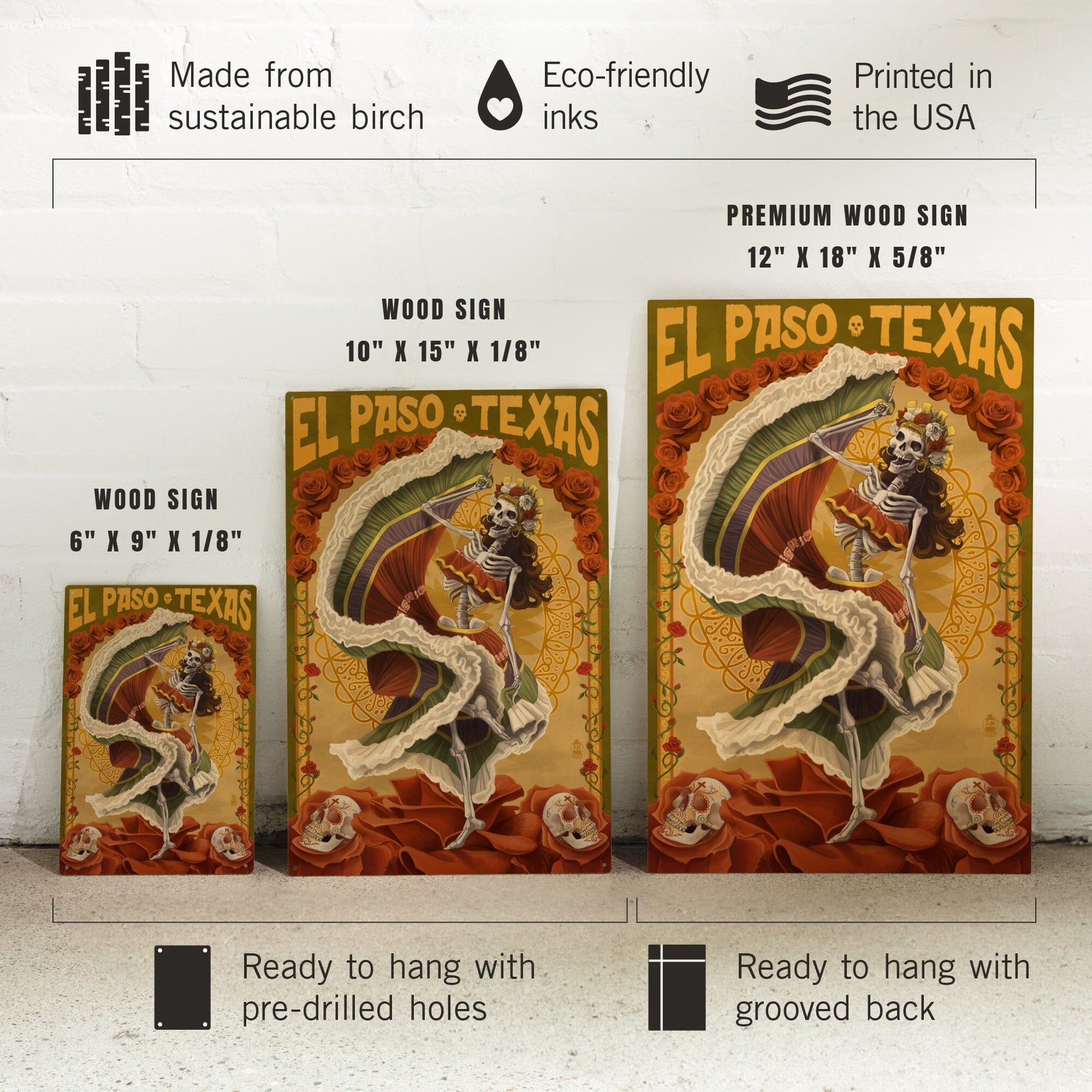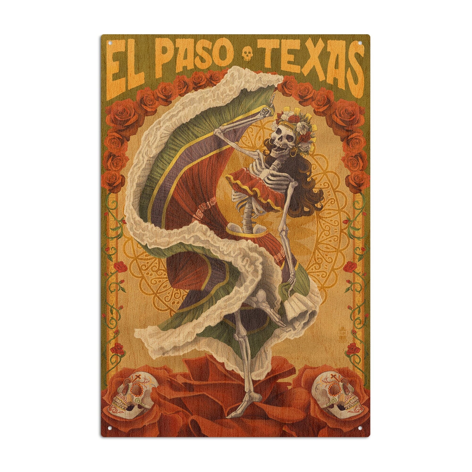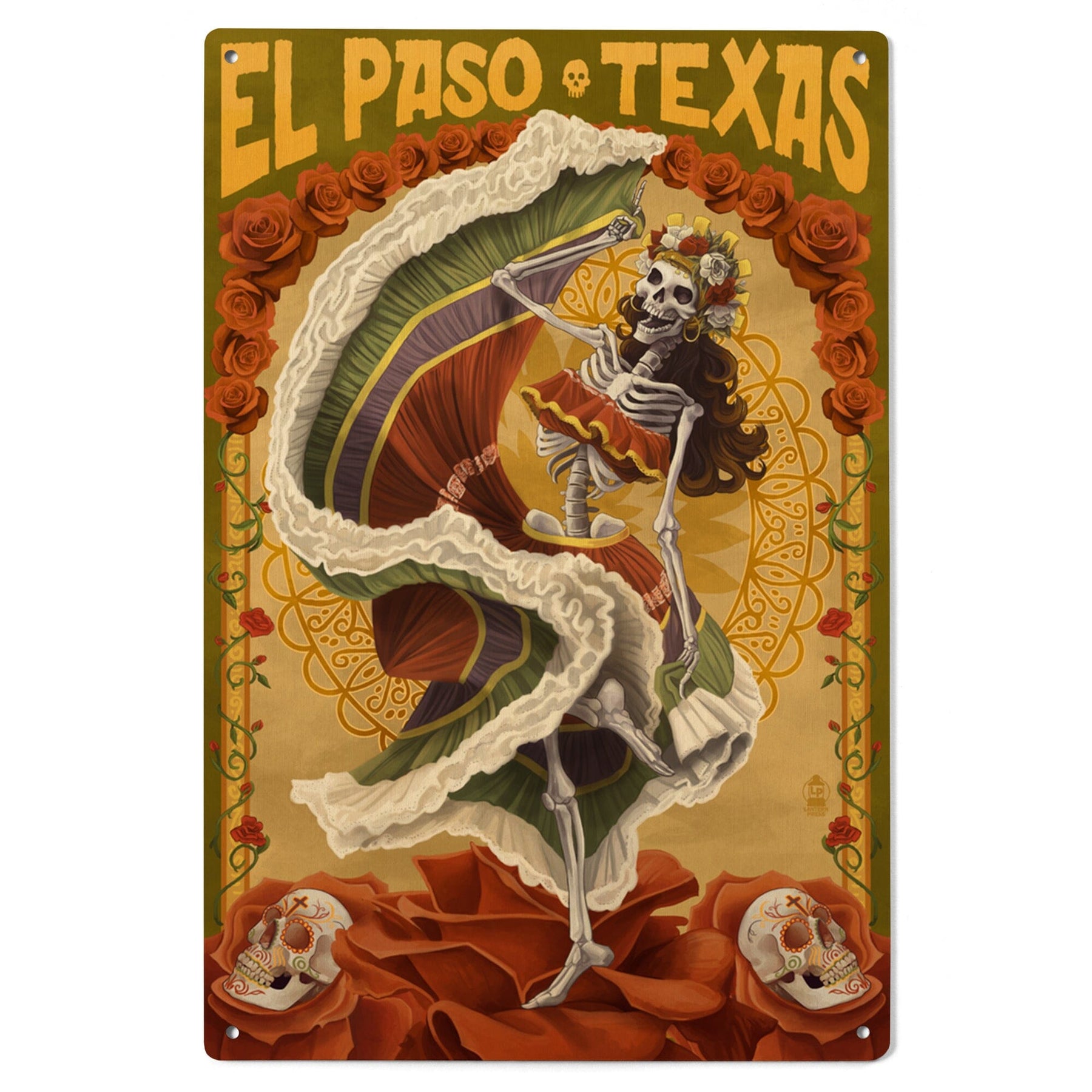 El Paso, Texas, Day of the Dead Dancer, Lantern Press Artwork, Wood Signs and Postcards
