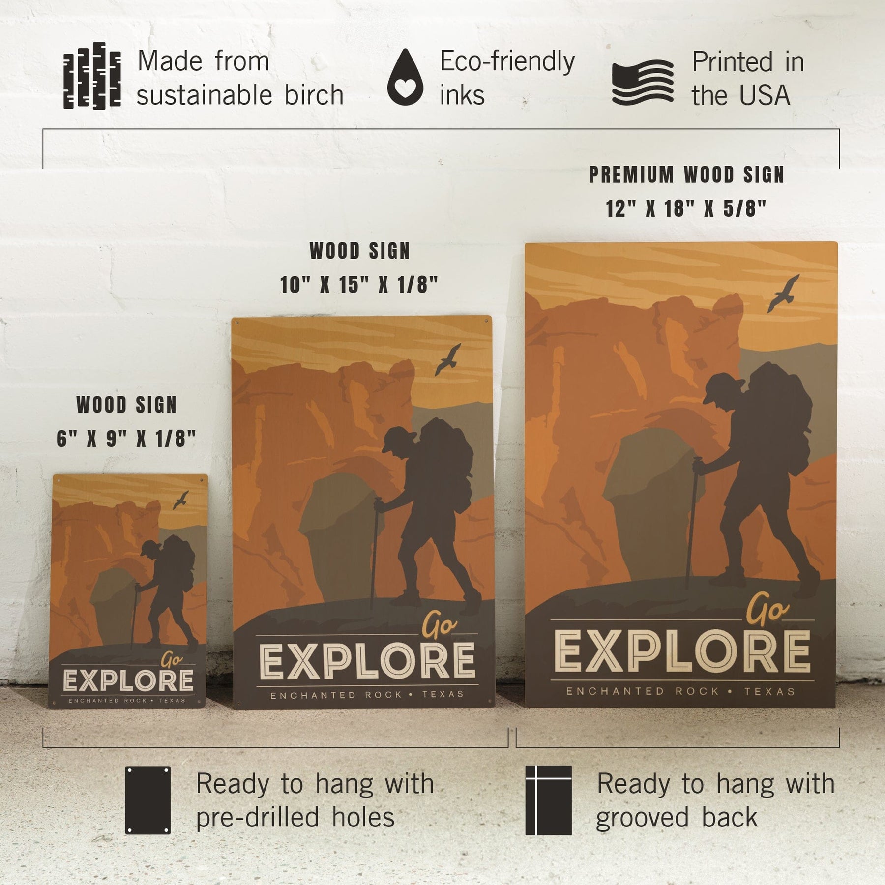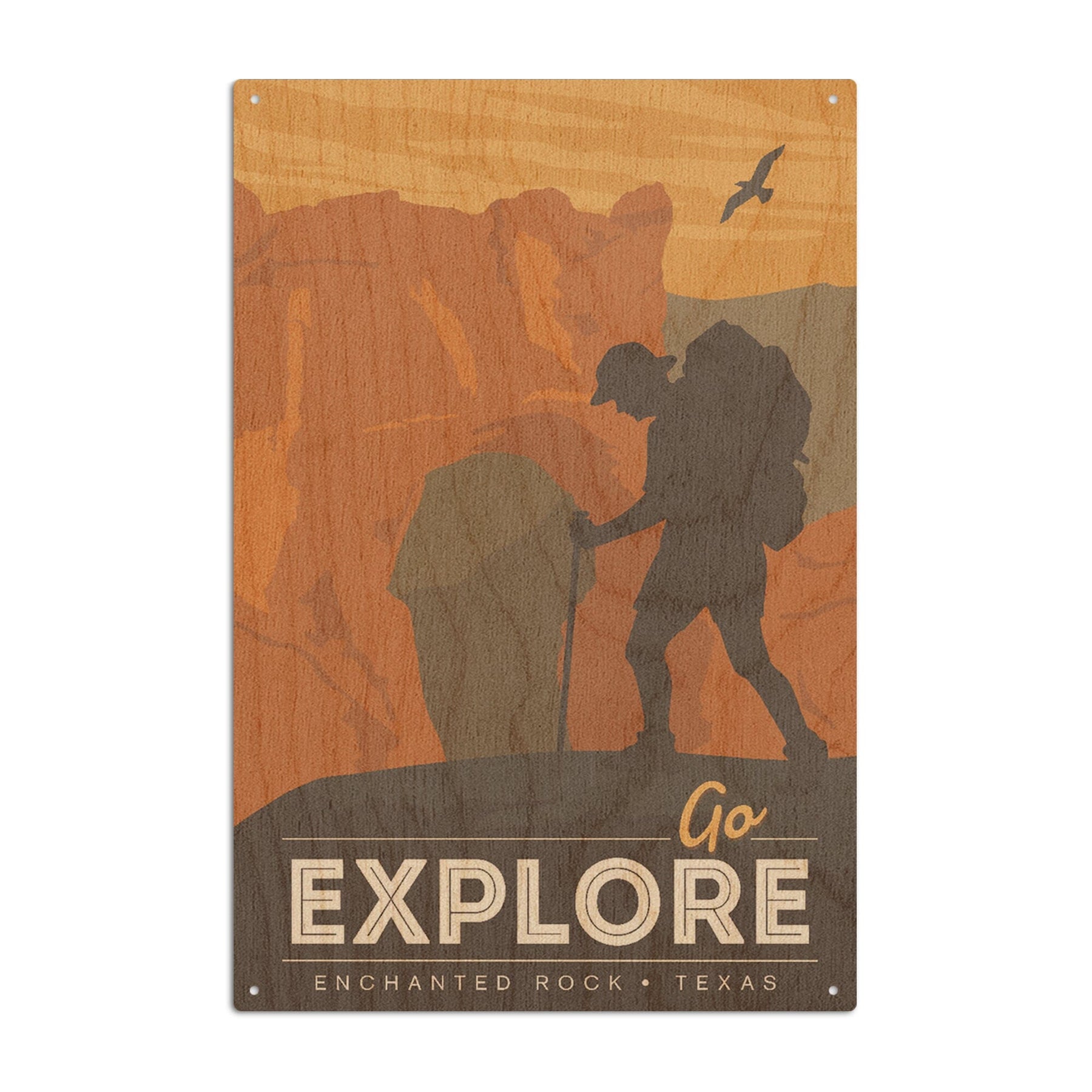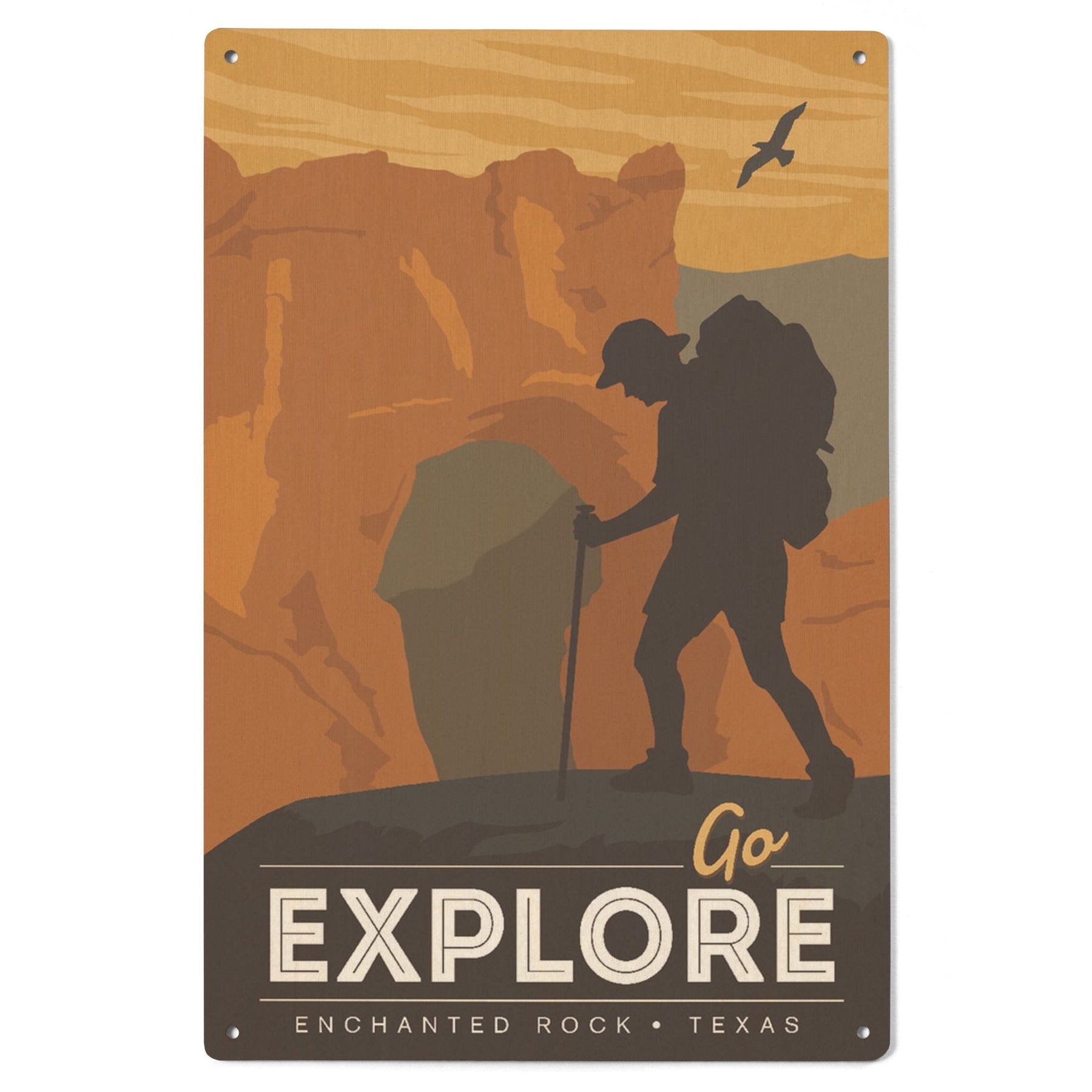 Enchanted Rock, Texas, Go Explore, Backpacker, Lantern Press Artwork, Wood Signs and Postcards