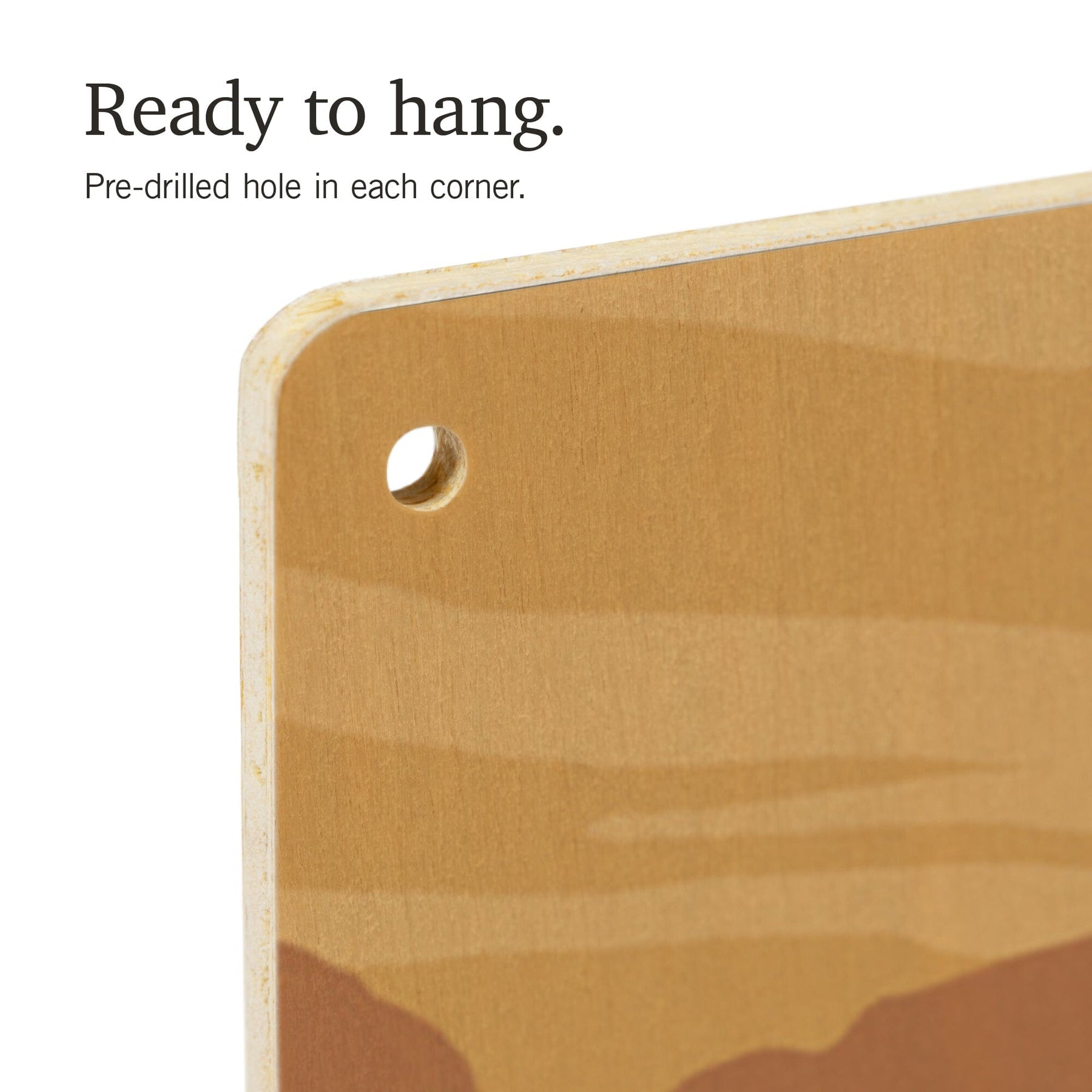 • Hole in each corner, ready to hang