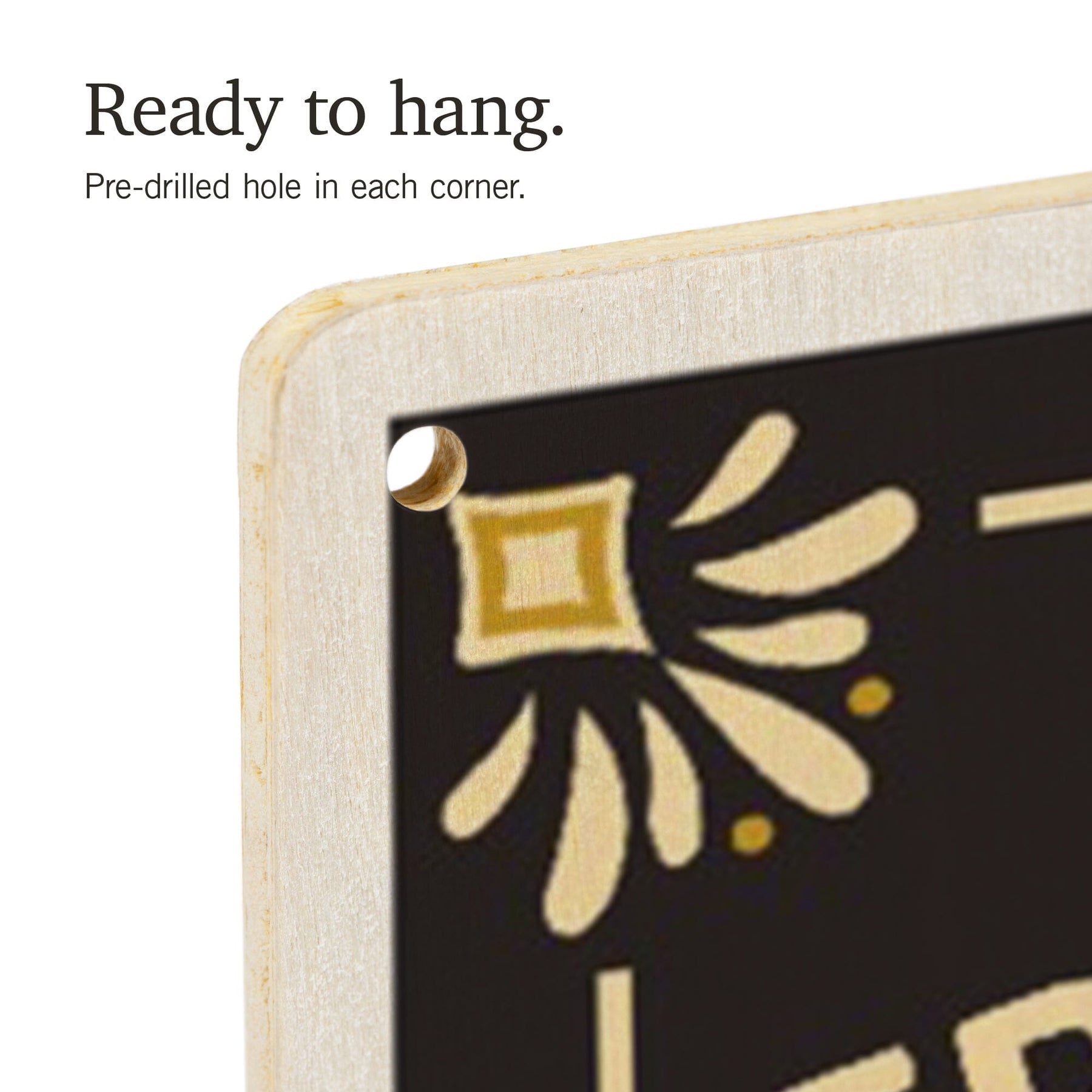 • Hole in each corner, ready to hang