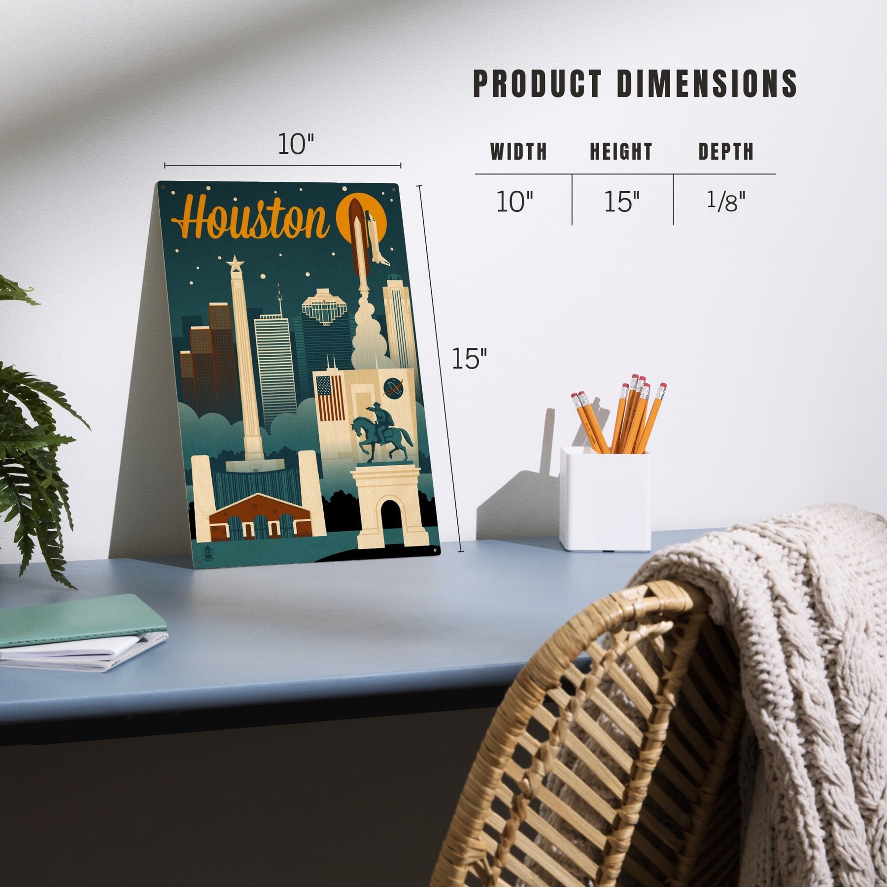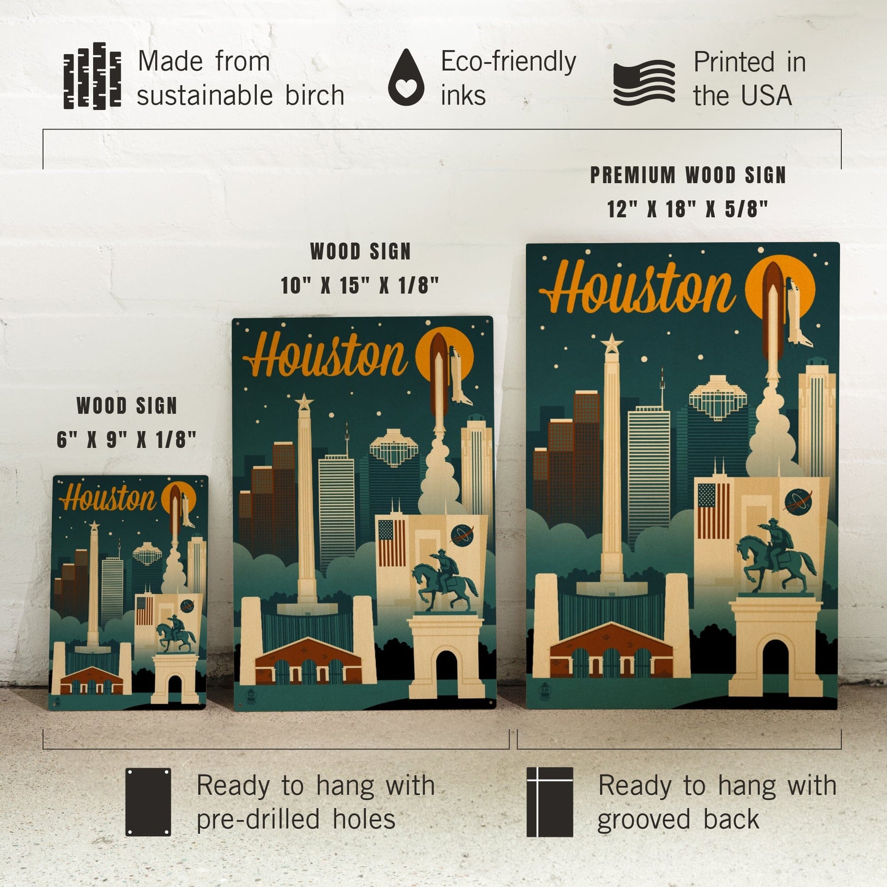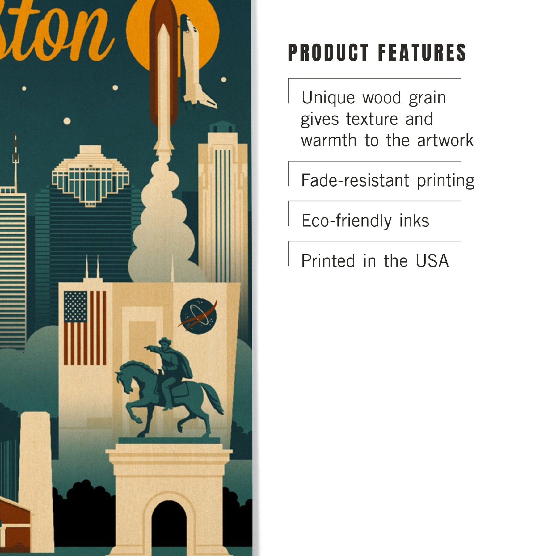 Houston, Texas, Retro Skyline, Lantern Press Artwork, Wood Signs and Postcards