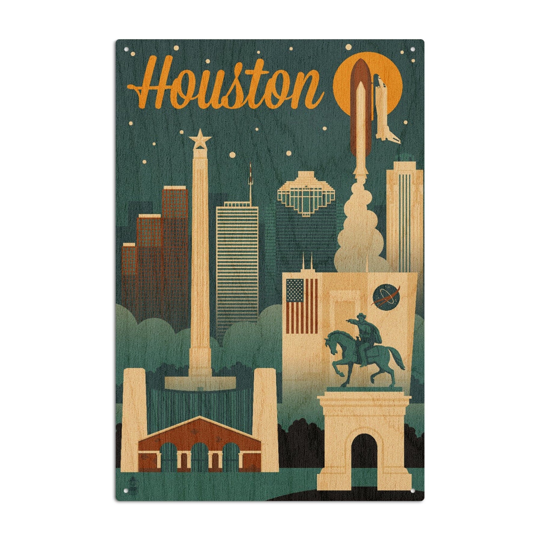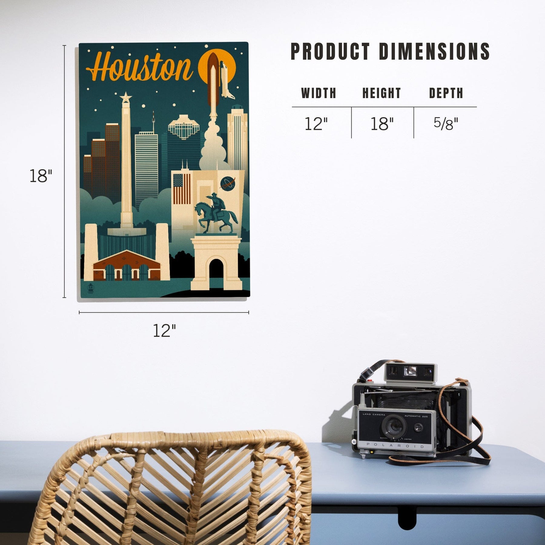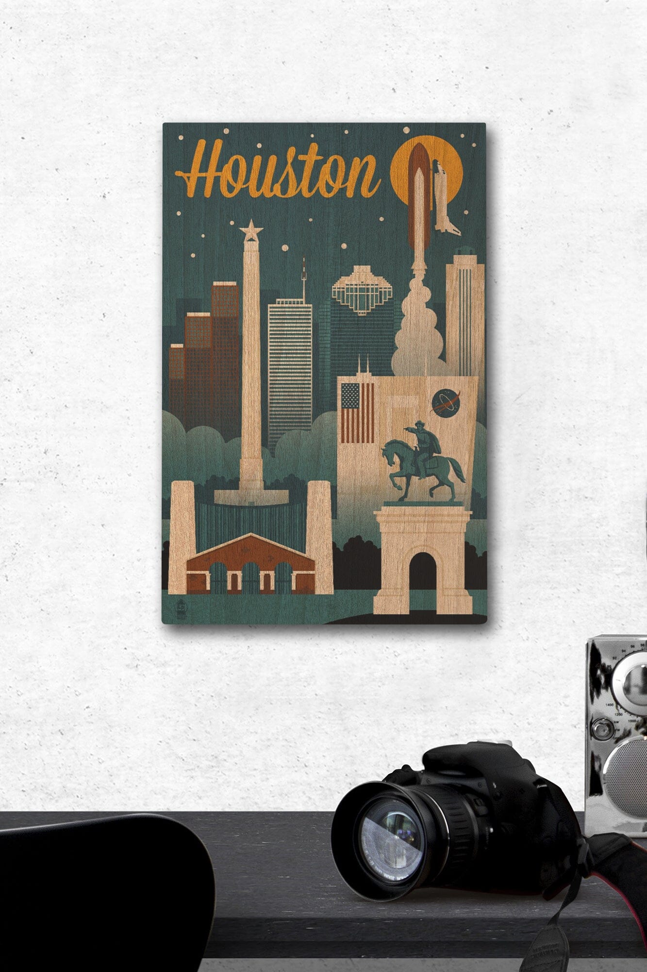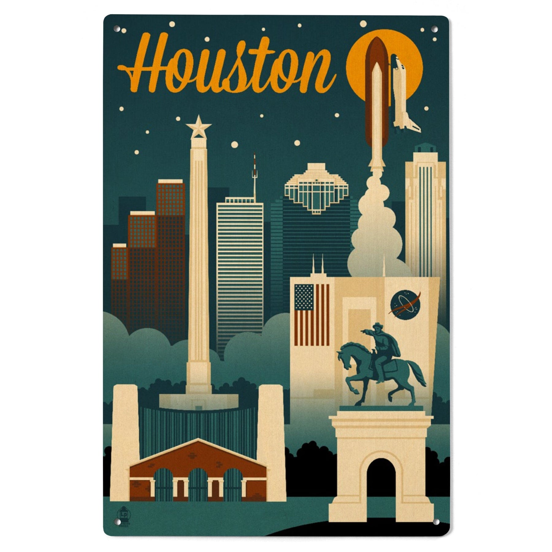 Houston, Texas, Retro Skyline, Lantern Press Artwork, Wood Signs and Postcards