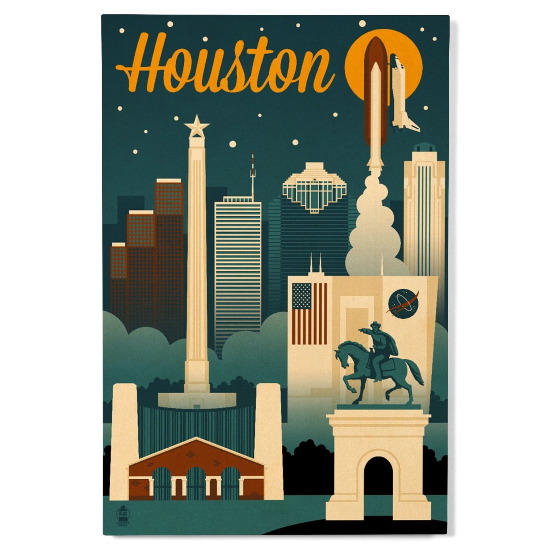 Houston, Texas, Retro Skyline, Lantern Press Artwork, Wood Signs and Postcards - Lantern Press