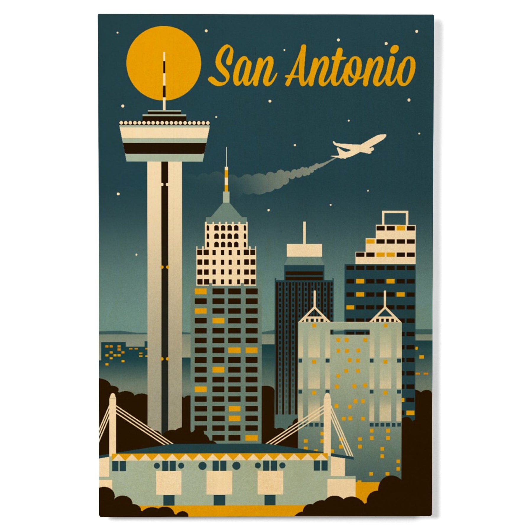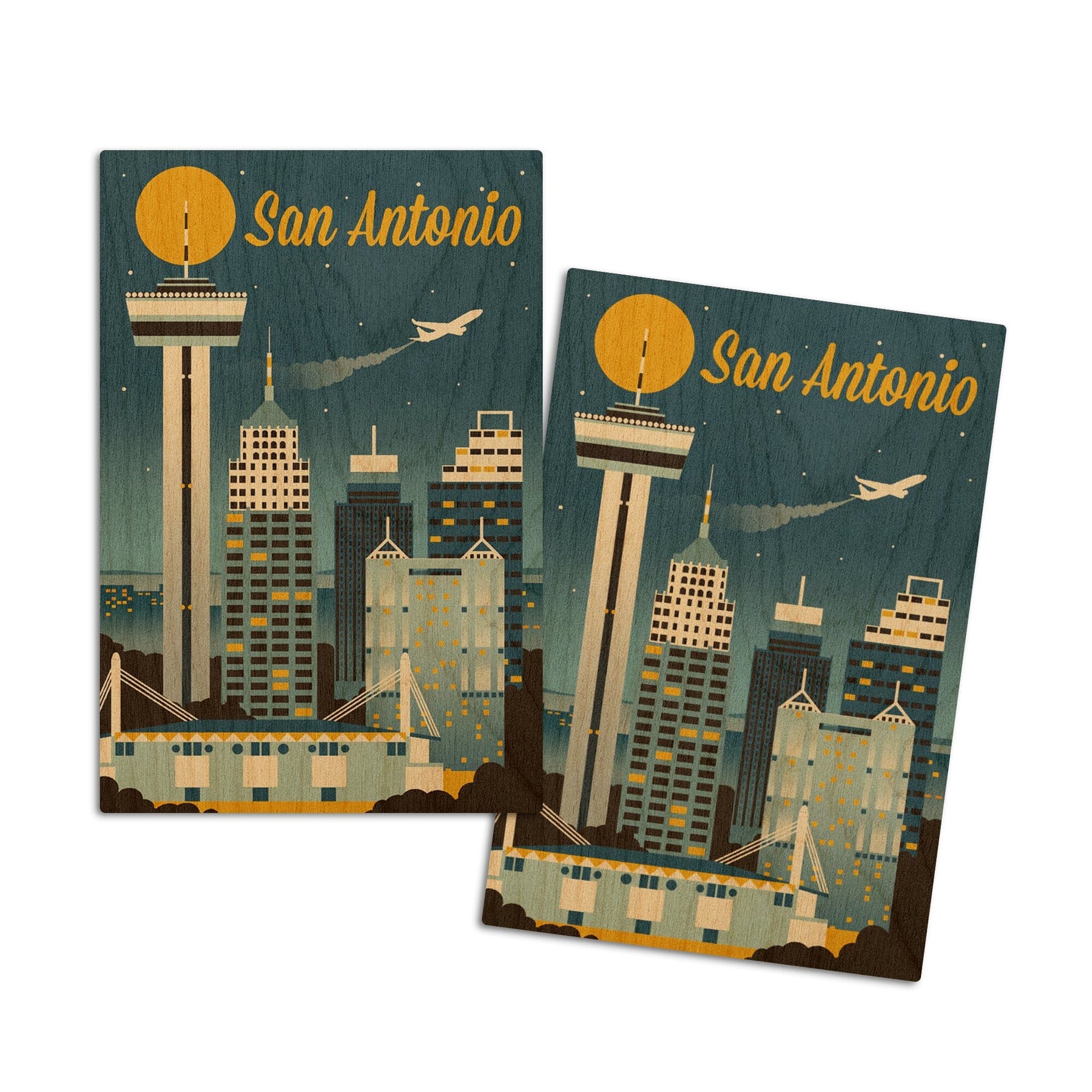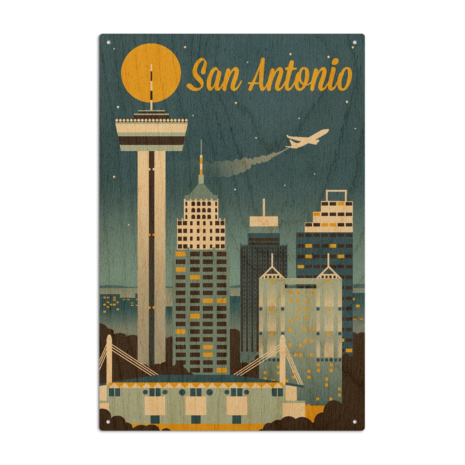 San Antonio, Texas, Retro Skyline Classic, Lantern Press Artwork, Wood Signs and Postcards Wood Lantern Press
