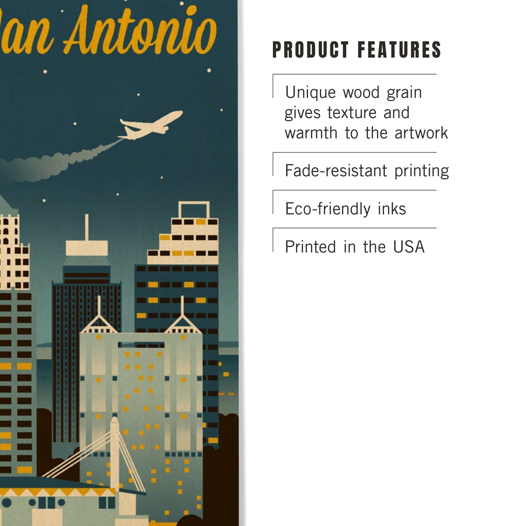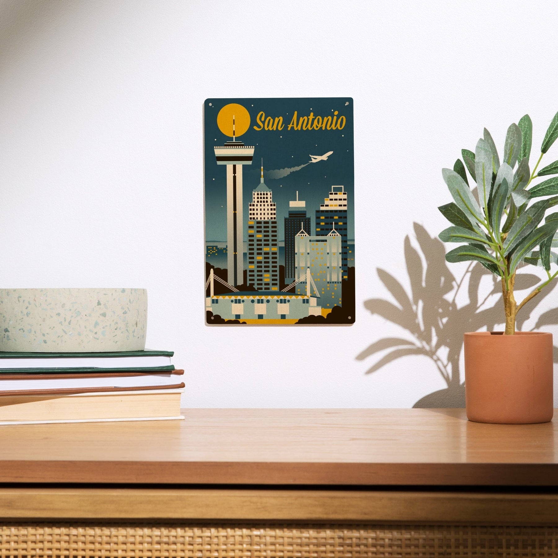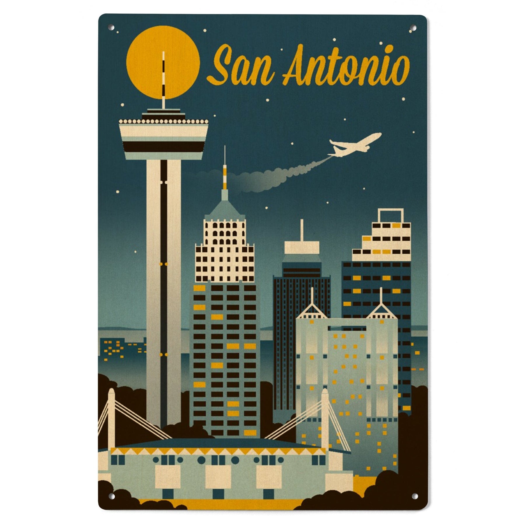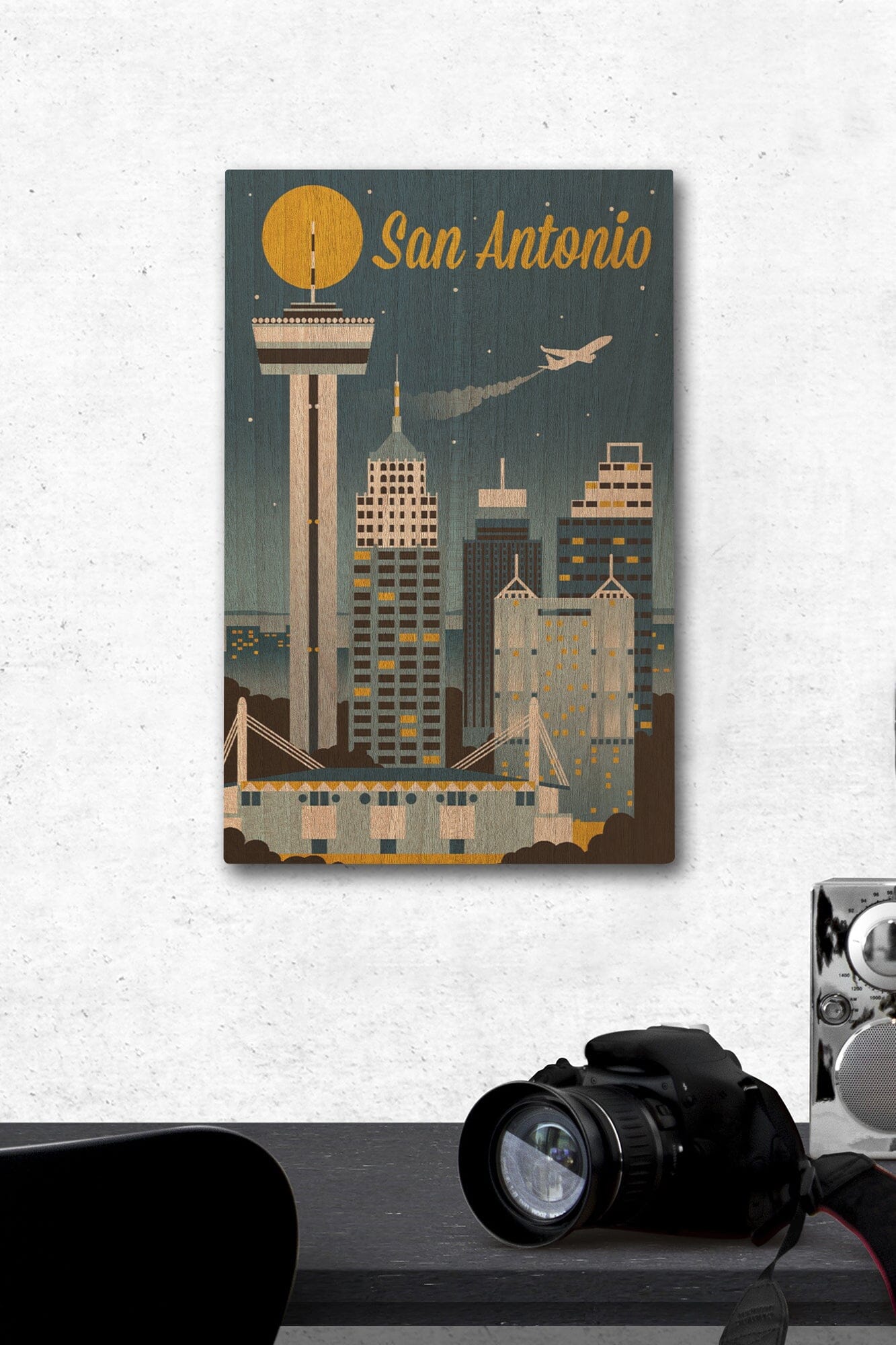 San Antonio, Texas, Retro Skyline Classic, Lantern Press Artwork, Wood Signs and Postcards Wood Lantern Press