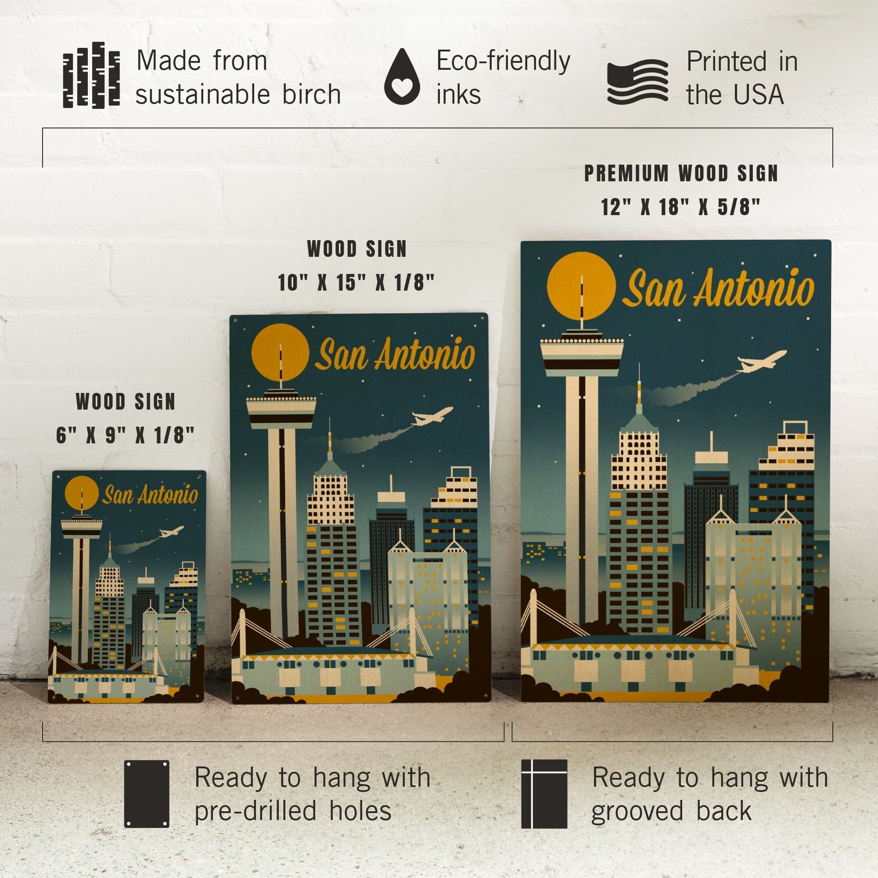San Antonio, Texas, Retro Skyline Classic, Lantern Press Artwork, Wood Signs and Postcards