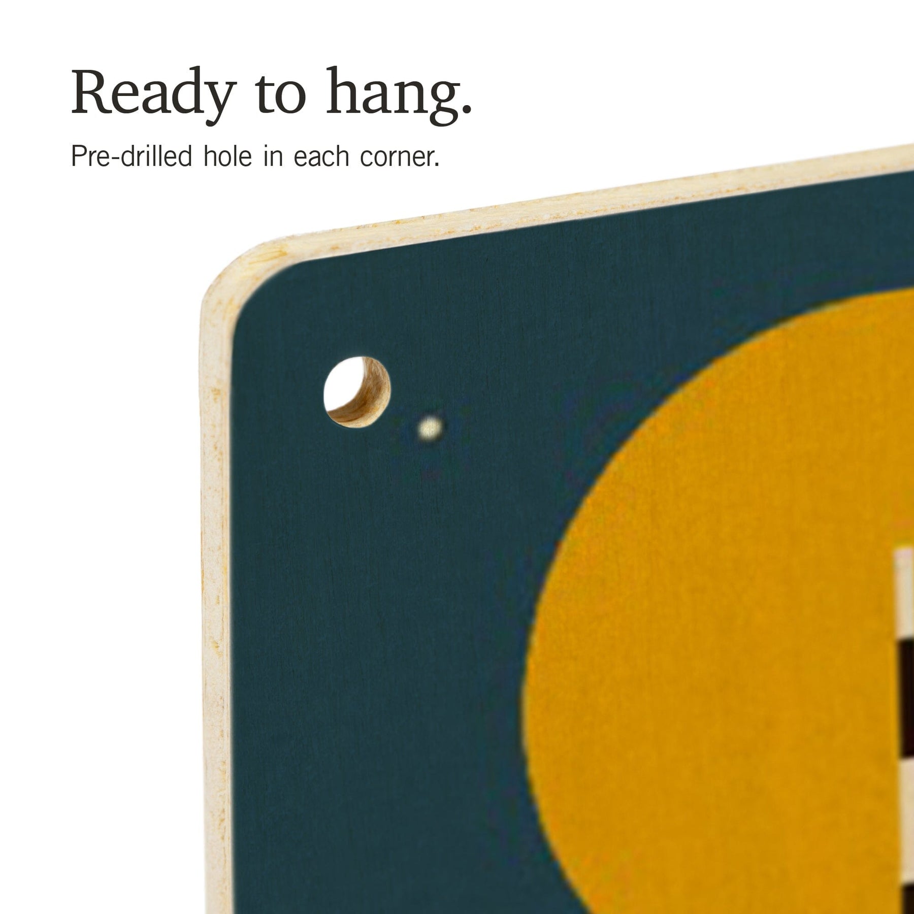 • Hole in each corner, ready to hang