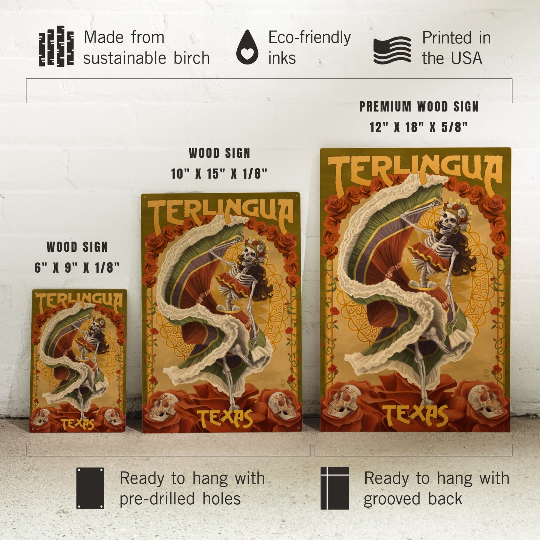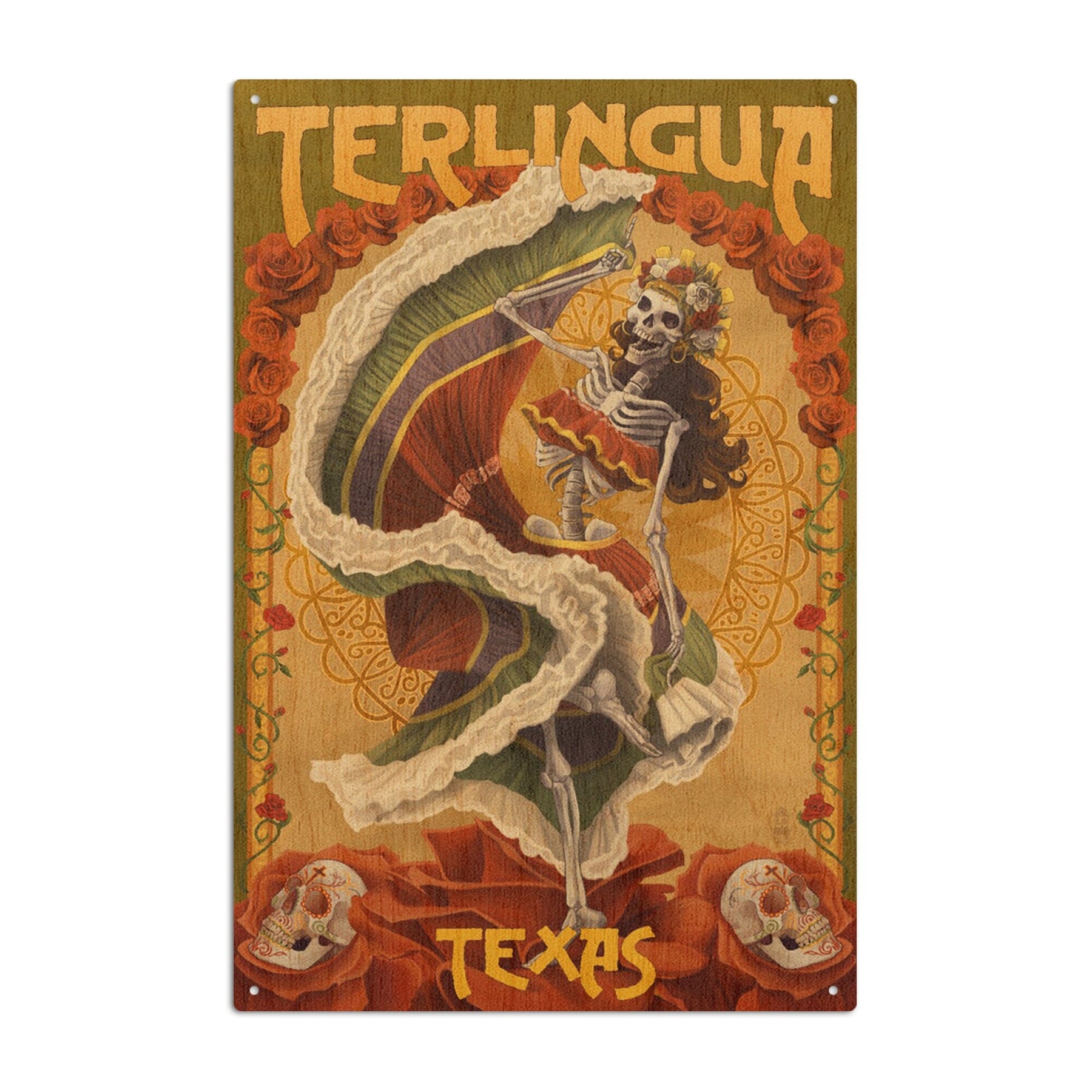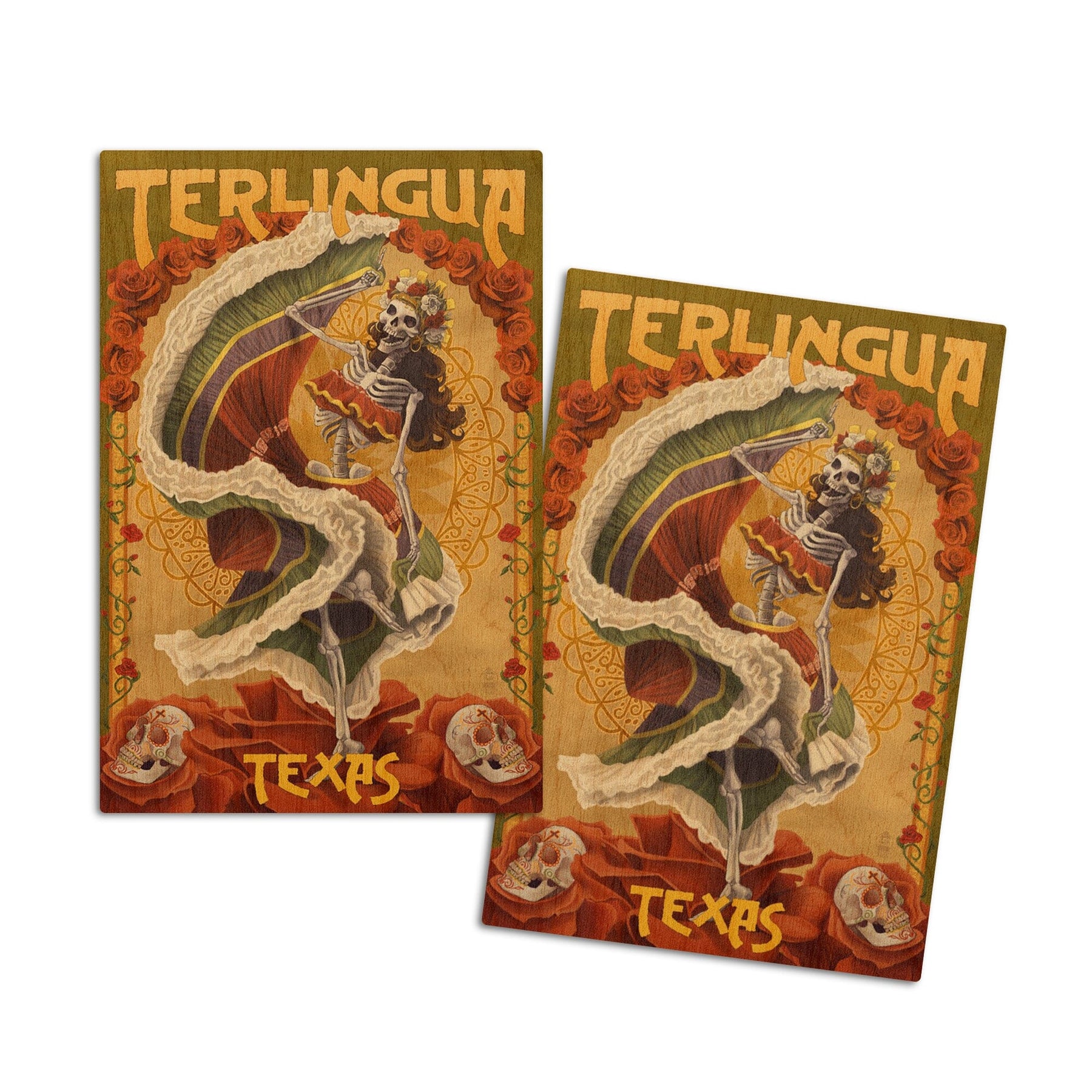 Terlingua, Texas, Day of the Dead Skeleton Dancing, Lantern Press Artwork, Wood Signs and Postcards Wood Lantern Press