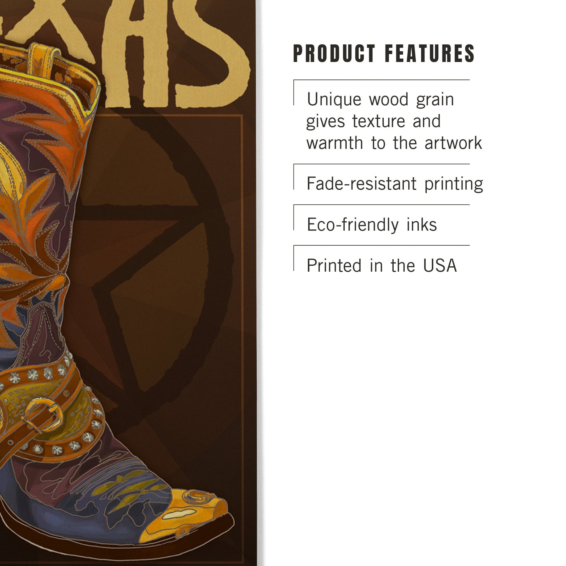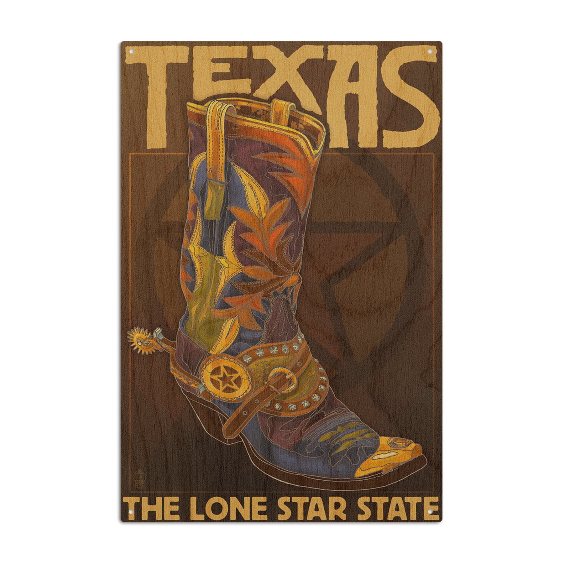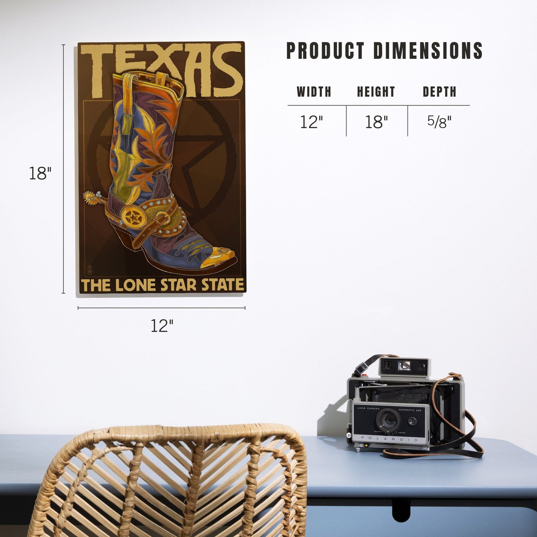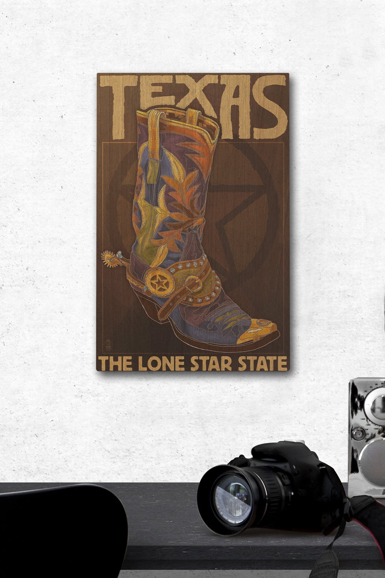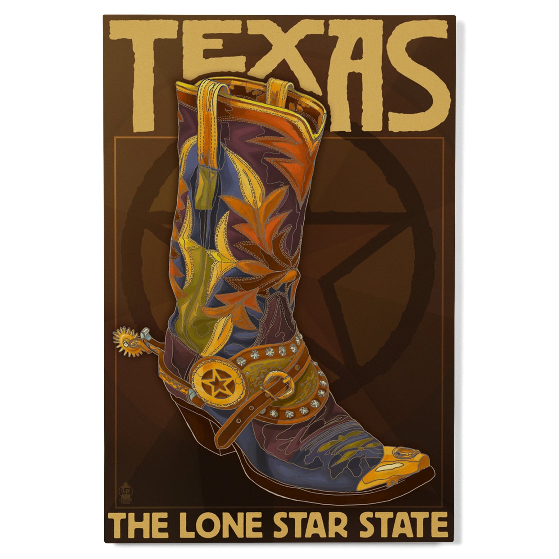 Texas, Boot & Star, Lantern Press Artwork, Wood Signs and Postcards Wood Lantern Press