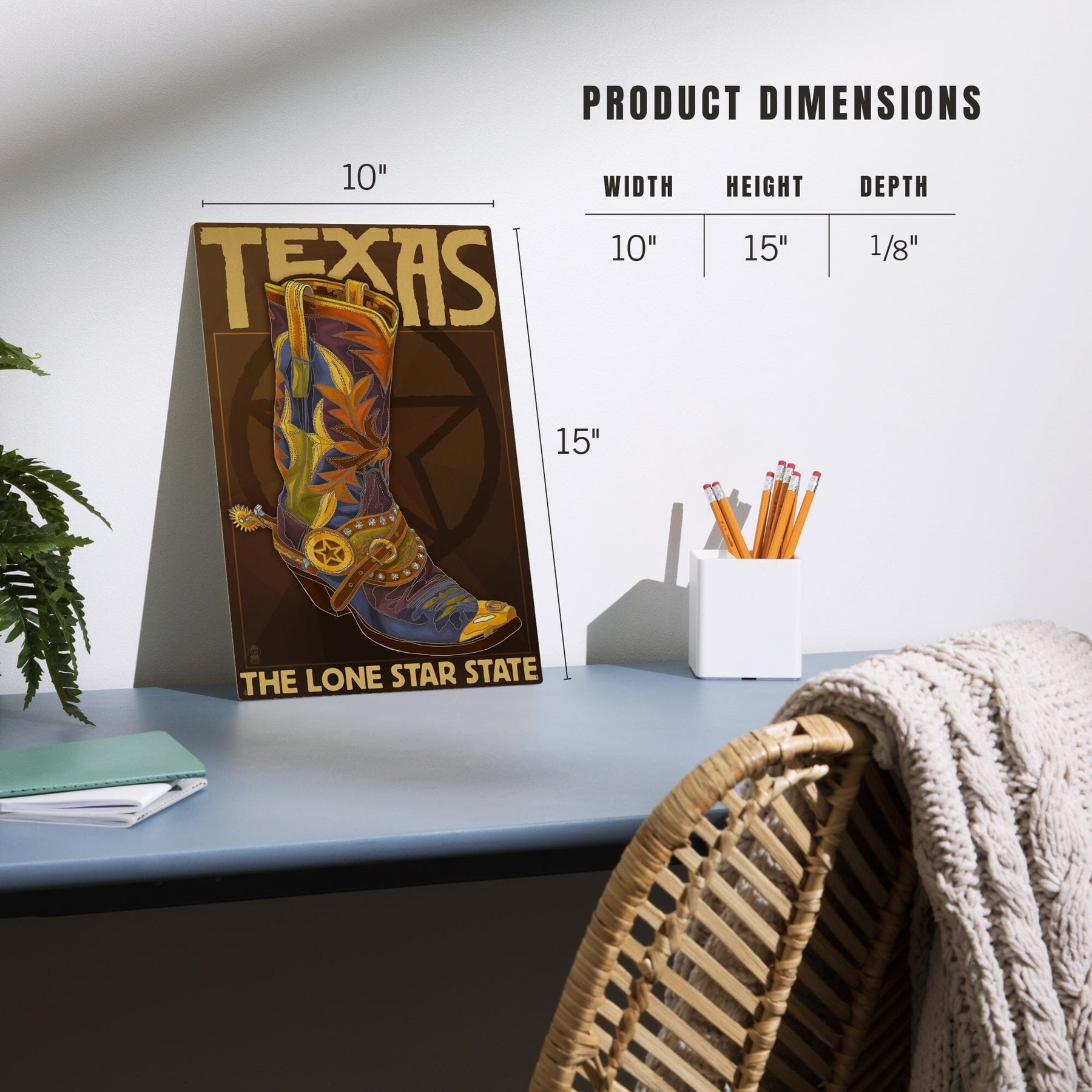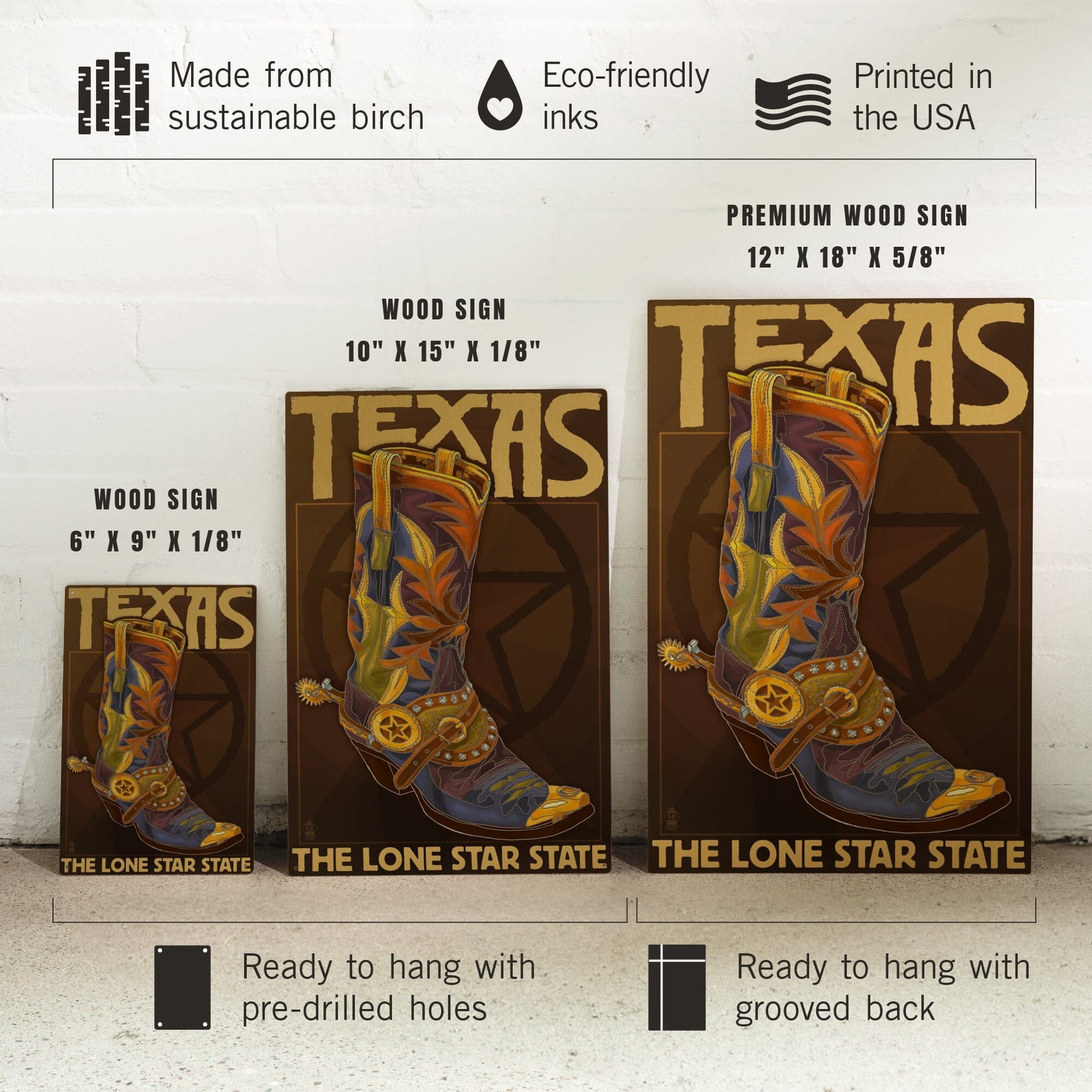 Texas, Boot & Star, Lantern Press Artwork, Wood Signs and Postcards
