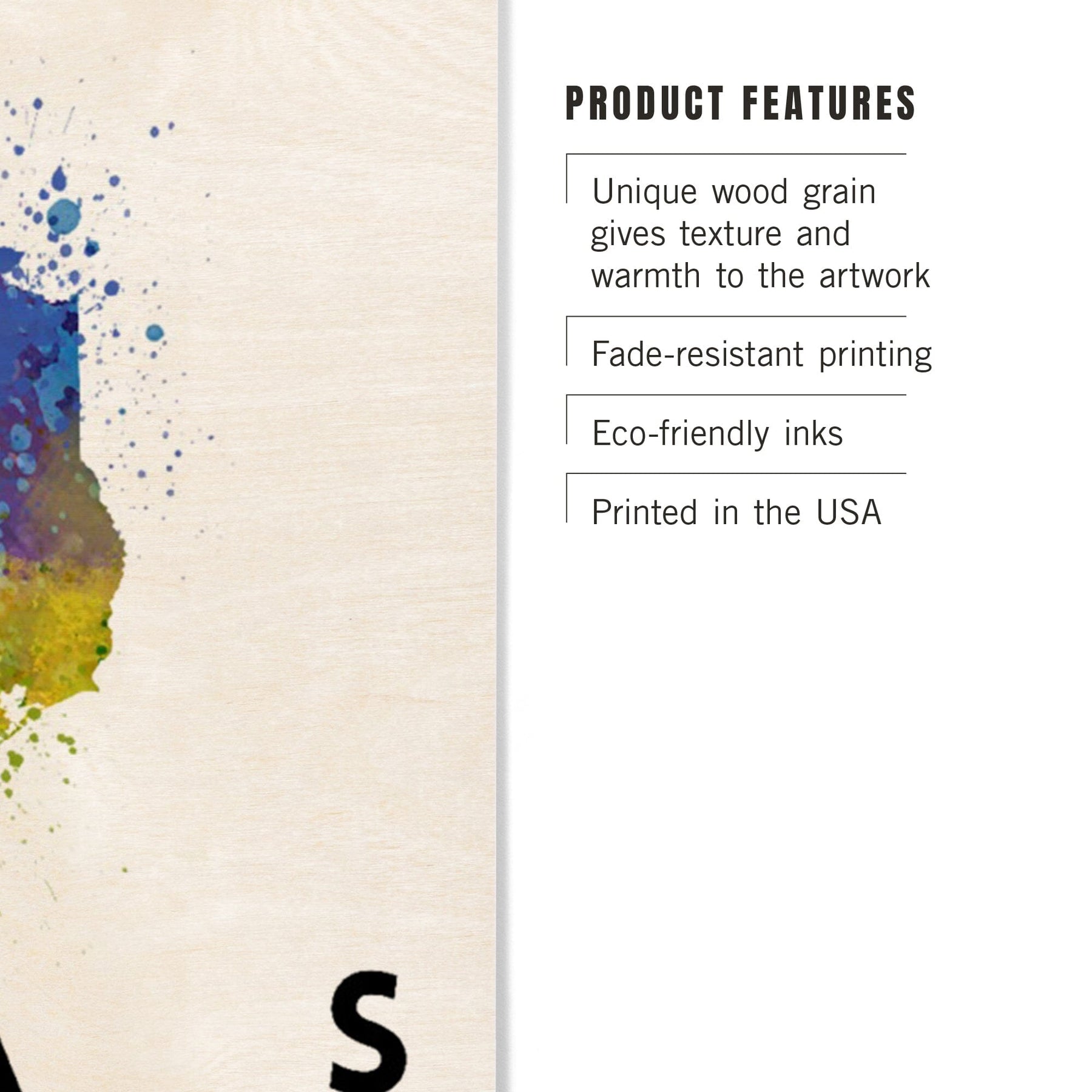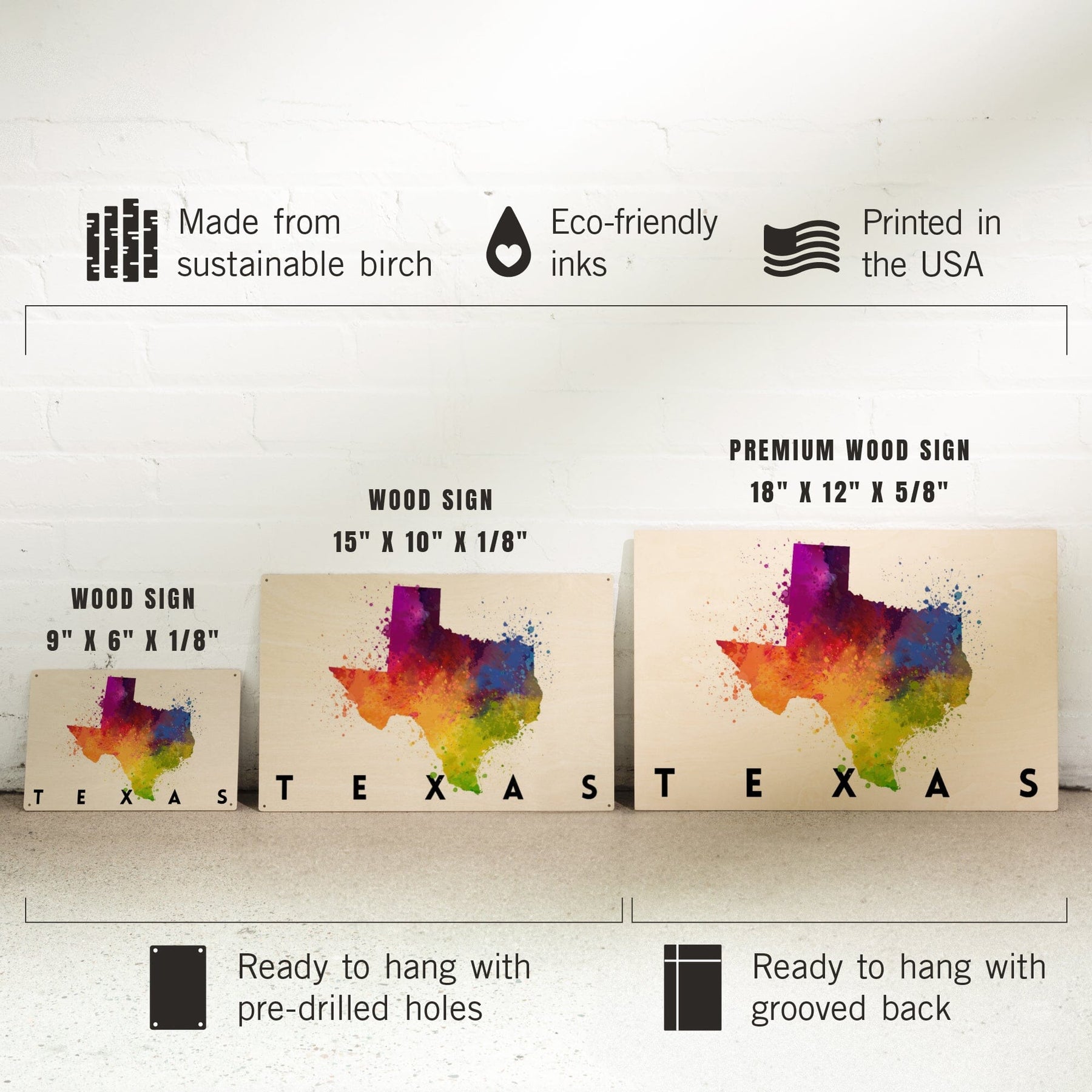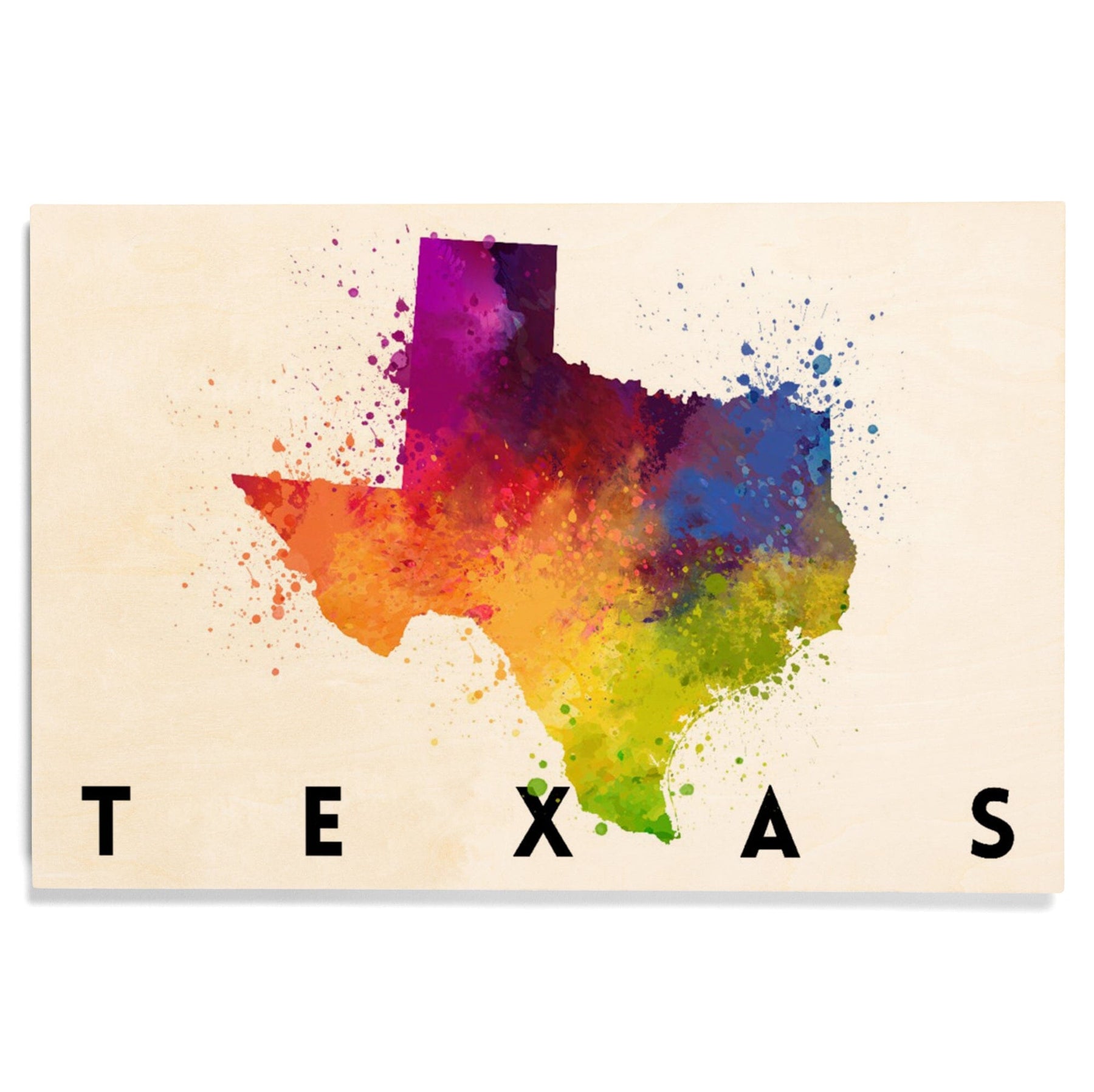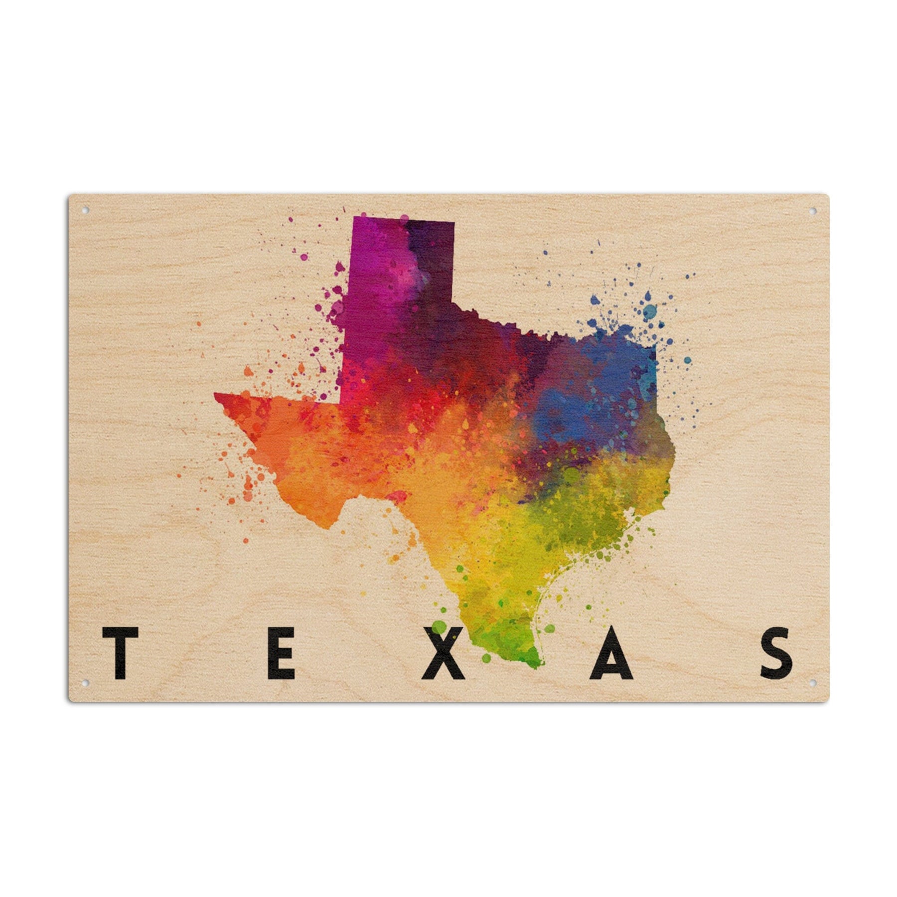 Texas, State Abstract Watercolor, Lantern Press Artwork, Wood Signs and Postcards Wood Lantern Press