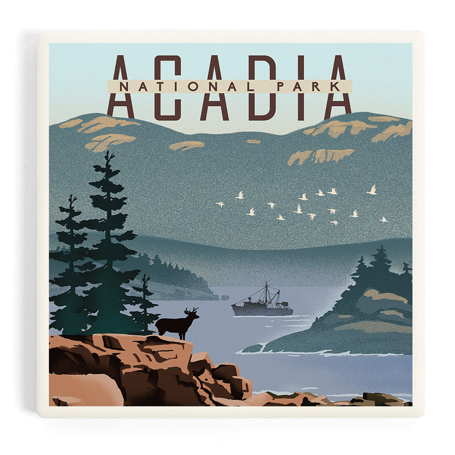 Acadia National Park, Maine, Lithograph, Coasters Coasters Lantern Press