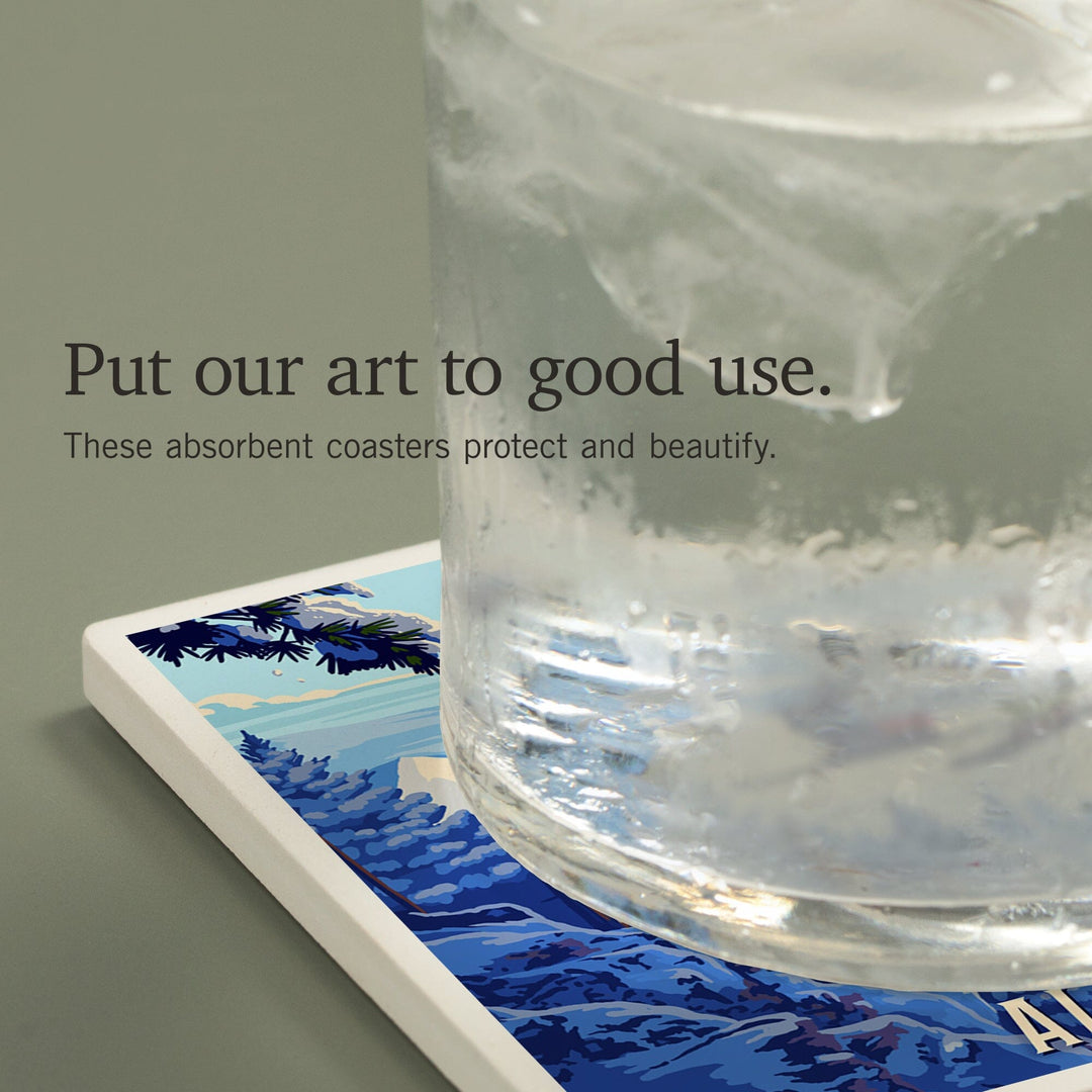 Alaska, Ski Lift Above The Trees, Coasters Coasters Lantern Press