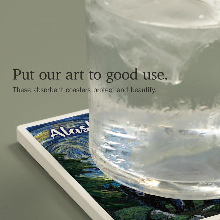 Alaska, Starry Night, Bear and Cub, Coasters Coasters Lantern Press