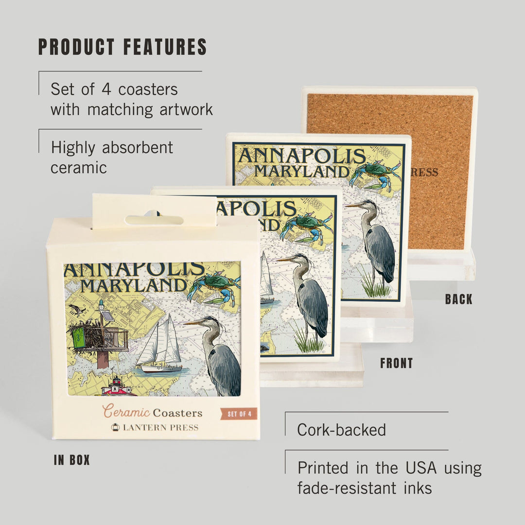 Annapolis, Maryland, Nautical Chart, Coasters Coasters Lantern Press