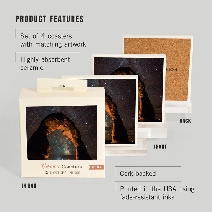 Arches National Park, Utah, Delicate Arch and Milky Way, Coasters Coasters Lantern Press