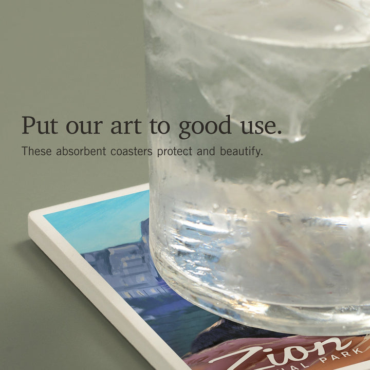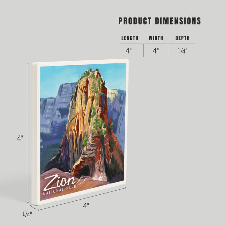 Zion National Park, Utah, Angels Landing, Oil Painting, Coasters Coasters Lantern Press