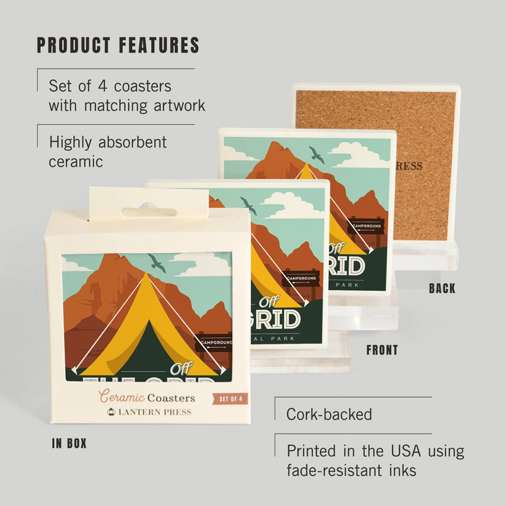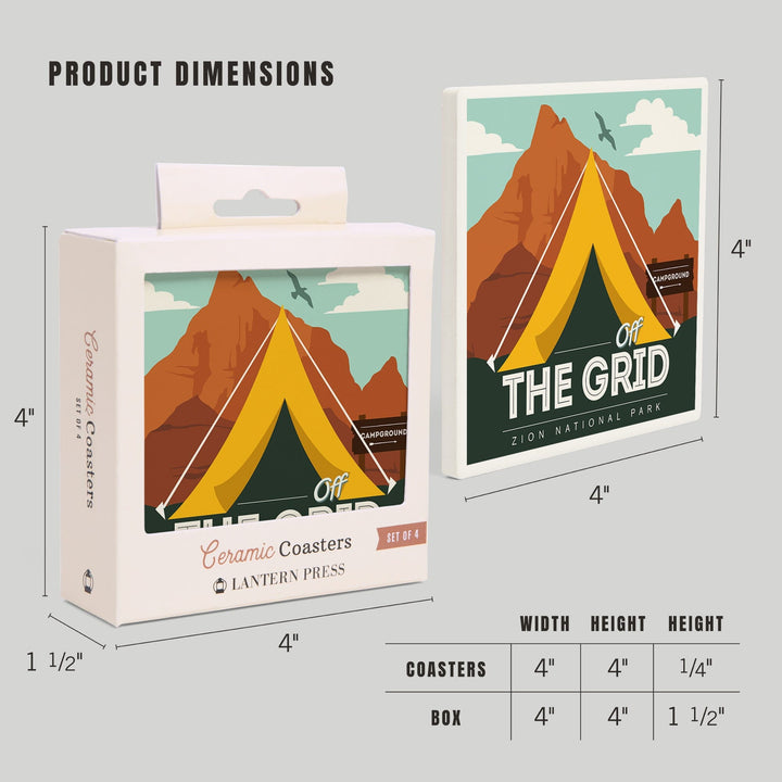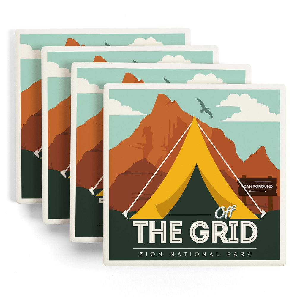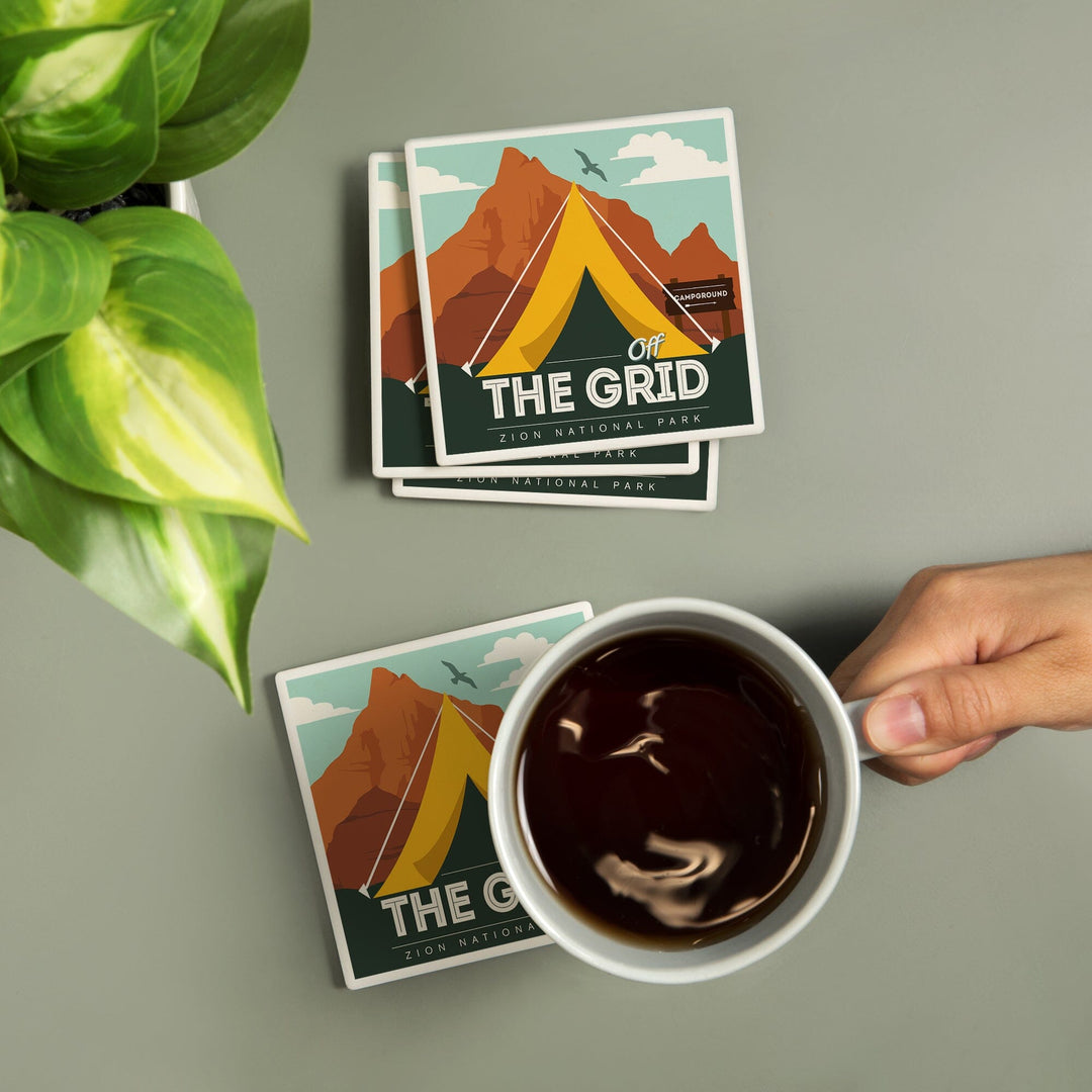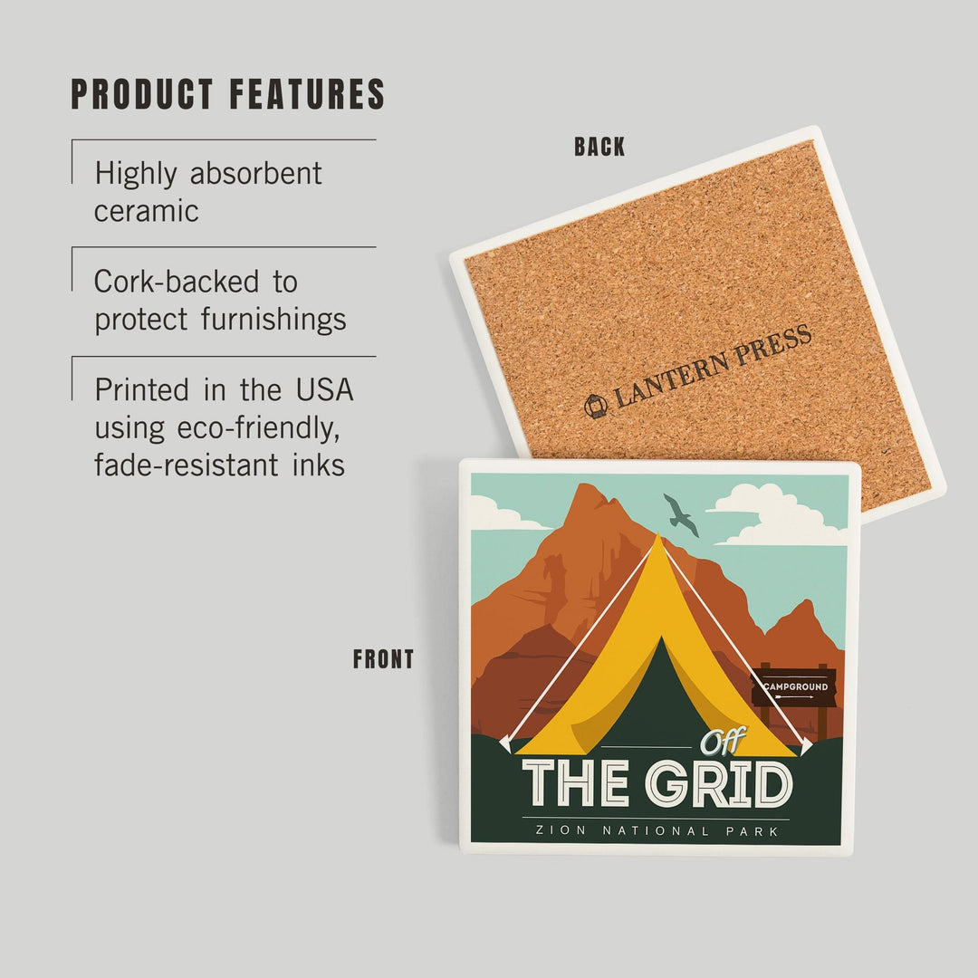 Zion National Park, Utah, Off the Grid, Tent, Coasters Coasters Lantern Press