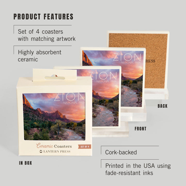Zion National Park, Utah, The Watchman, Coasters Coasters Lantern Press